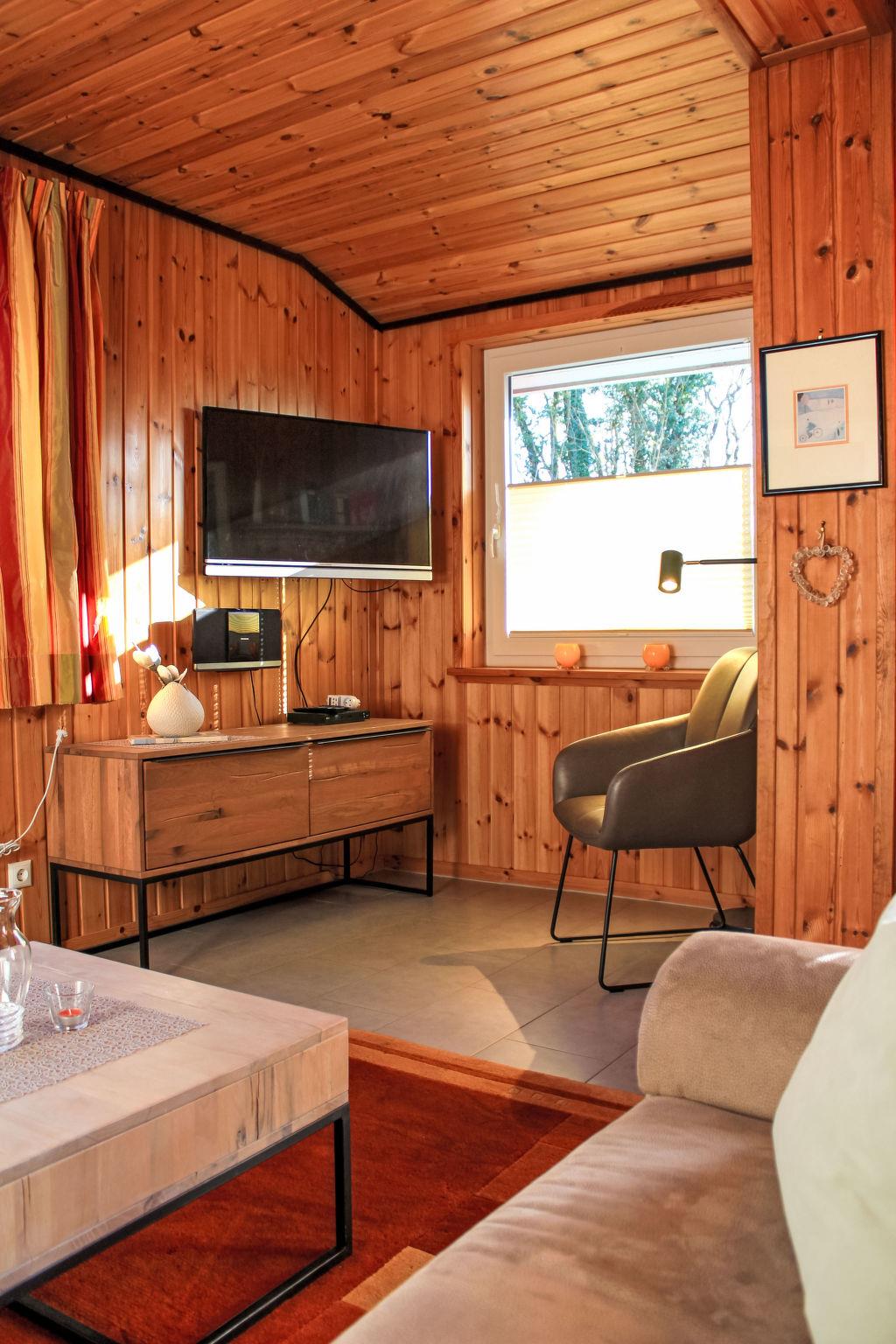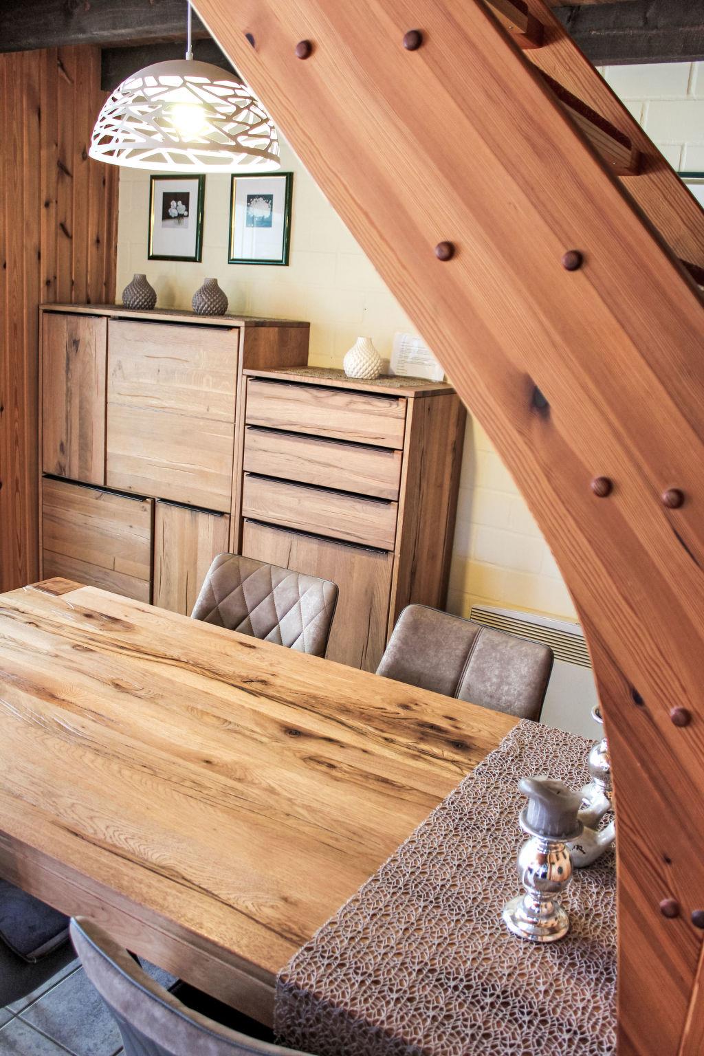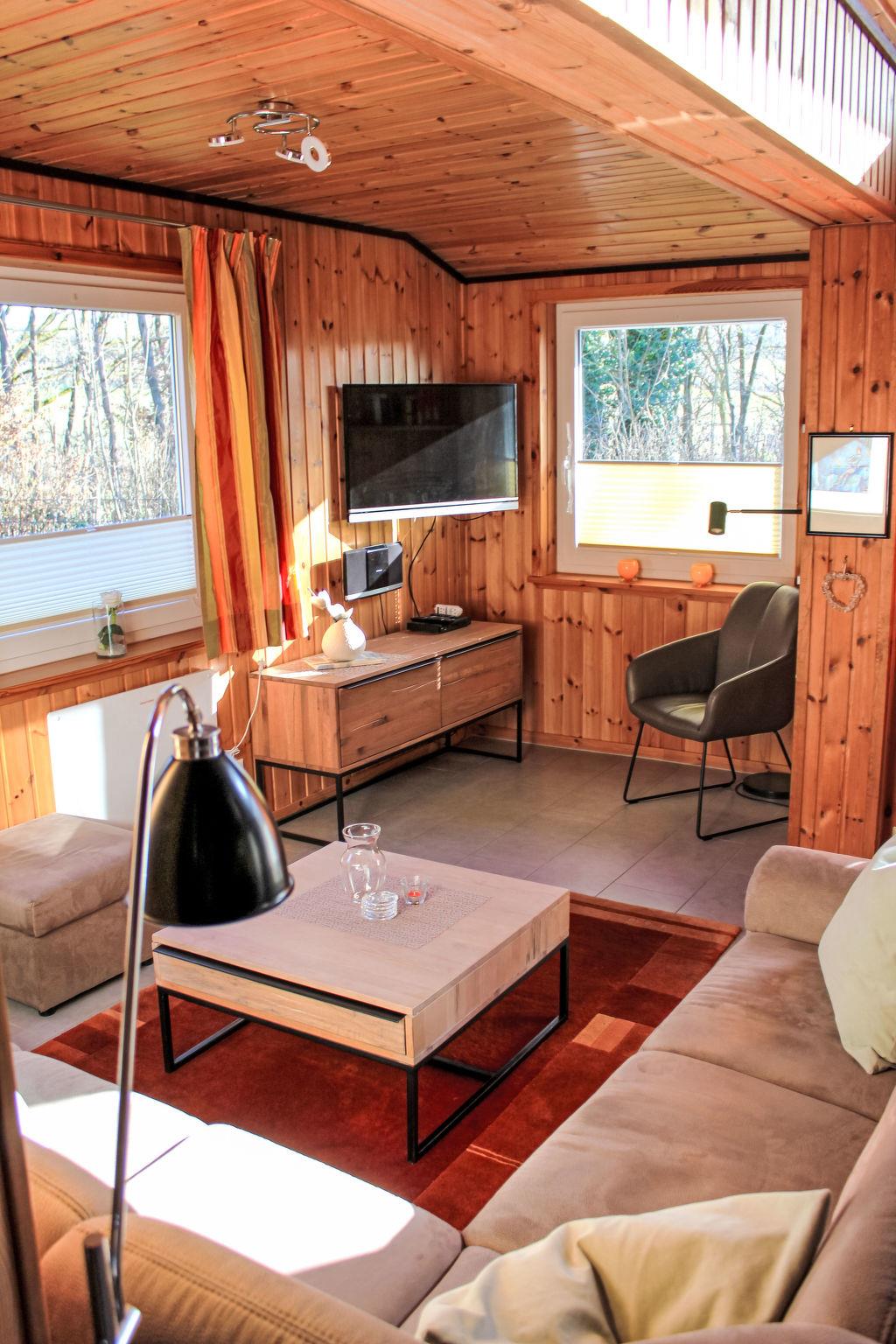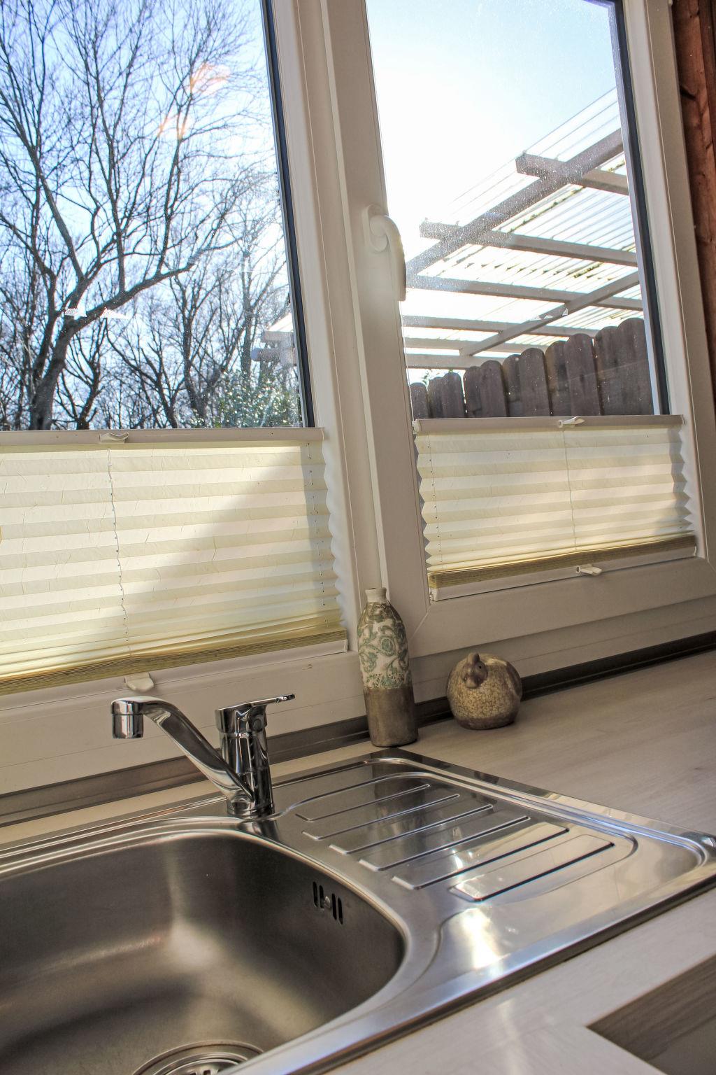4-room semi-detached house 80 m2. Cosy furnishings: living room with 1 double sofabed (2 x 90 cm, length 200 cm), TV. 1 room with 1 french bed (2 x 90 cm, length 200 cm). Kitchenette (oven, dishwasher, 4 ceramic glass hob hotplates, toaster, kettle, microwave, freezer) with dining table. Shower/WC, sep. WC, Sauna. Electric heating, wood heating, floor heating. Upper floor: 1 room with 1 bed (90 cm, length 200 cm). 1 room with 1 double bed (2 x 100 cm, length 200 cm). Terrace 20 m2. Terrace furniture. Beautiful view of the mountains. Facilities: baby cot, hair dryer. Internet (WiFi, free). Please note: non-smoking house. 1 pet/ dog allowed. Smoke alarm.