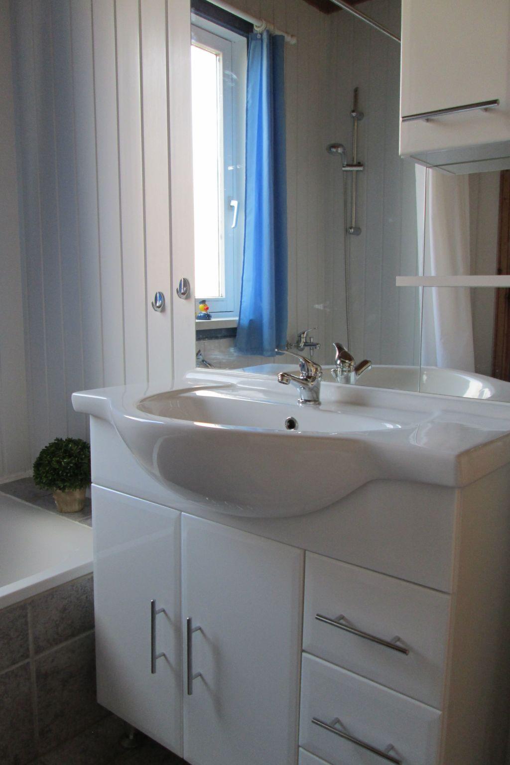 Inside the house, you will find an attractively designed interior that will make your stay comfortable and enjoyable. The living and dining area invites you to linger with a cosy sofa, a flat-screen TV with DVD player, a music system and a wood-burning stove. A dining table offers plenty of space for shared meals. The fully equipped kitchen has an oven, electric hob, fridge and many other kitchen utensils to make holiday cooking easy. The house also has three quiet bedrooms with new mattresses and attractive laminate flooring as well as a modern bathroom with a bathtub and a sauna for maximum relaxation.