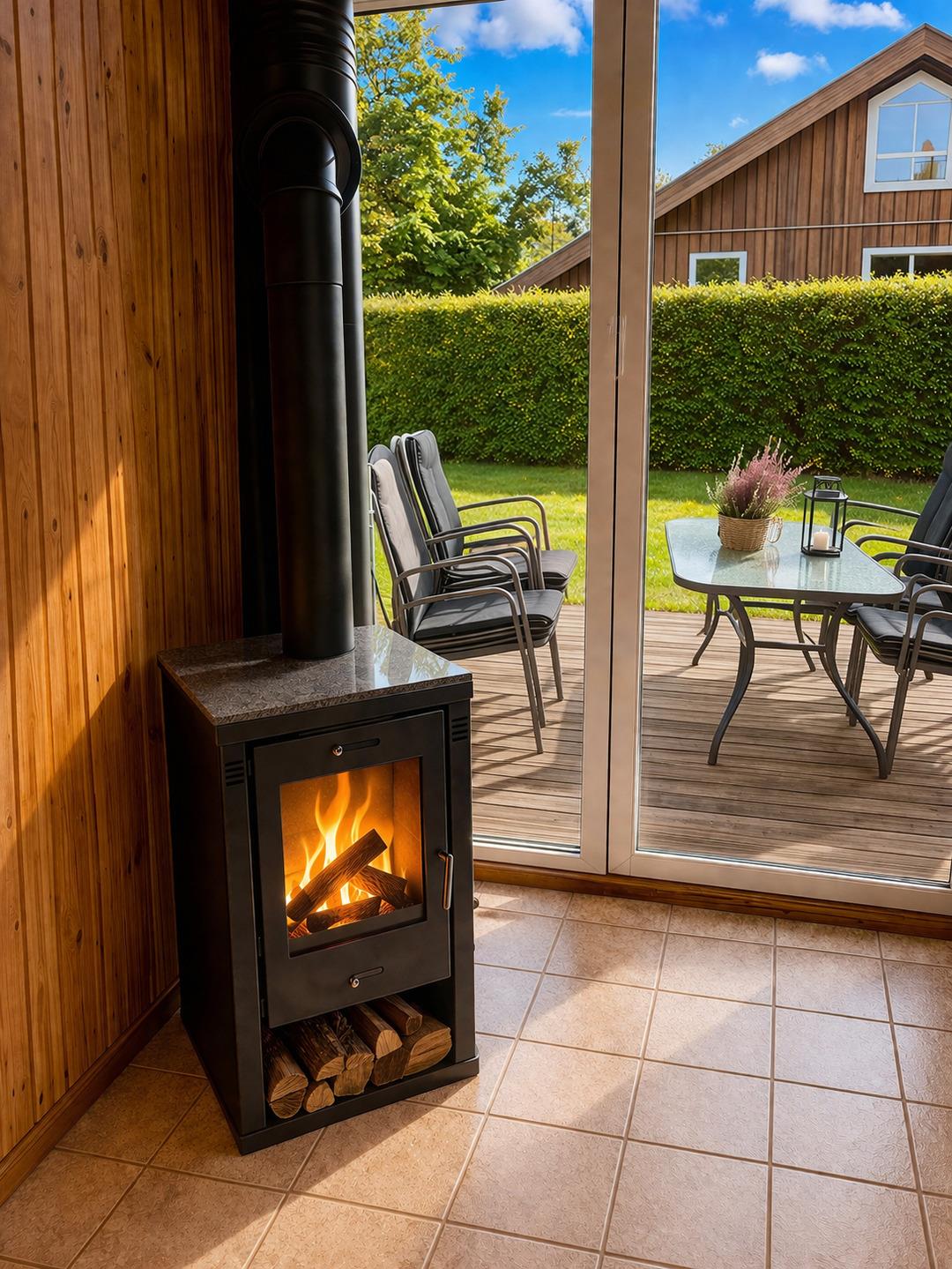 Der Kaminofen beheizt das gesamte Haus. Brennholz und Anzünder sind bereits als Grundausstattung vorhanden. Zusätzlich sorgen Elektro-Heizungen und Elektro-Fußbodenheizungen in allen Räumen für angenehme Wärme – ideal zu jeder Jahreszeit.