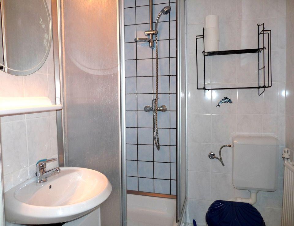 Das 55 m² Ferienhaus (Anbau am Wohnhaus des Vermieters) betreten Sie über den Flur mit Garderobe. Von hier aus gelangen Sie in den Wohnbereich mit einer Couch, zwei Sesseln, einem Tisch, einer Schrankwand, einem TV und einem Radio. In der offenen Küche finden Sie 2 Elektroherdplatten, eine Mikrowelle, einen Minibackofen, eine Kaffeemaschine, einen Toaster, einen Wasserkocher und einen Kühlschrank mit Tiefkühlfach. Das erste Schlafzimmer (Durchgangszimmer zum zweiten Schlafzimmer) ist mit zwei Polsterbetten und einem Kleiderschrank eingerichtet. Mit zwei Polsterbetten und zwei Regalen ist das zweite Schlafzimmer möbliert worden. Das Bad ist mit einer Dusche, einem Waschbecken und dem WC ausgestattet. Zur Wohnung gehören zwei Terrassen mit Gartenmöbeln. Die Terrasse direkt an der Wohnung ist überdacht und bietet Ihnen auch die Möglichkeit bei schlechterem Wetter draußen zu sitzen. Ein Grill ist vorhanden. Auf der Wiese im Garten finden Ihre Kinder Spielmöglichkeiten. Ein Parkplatz für Ihren PKW steht Ihnen in Objektnähe zur Verfügung.