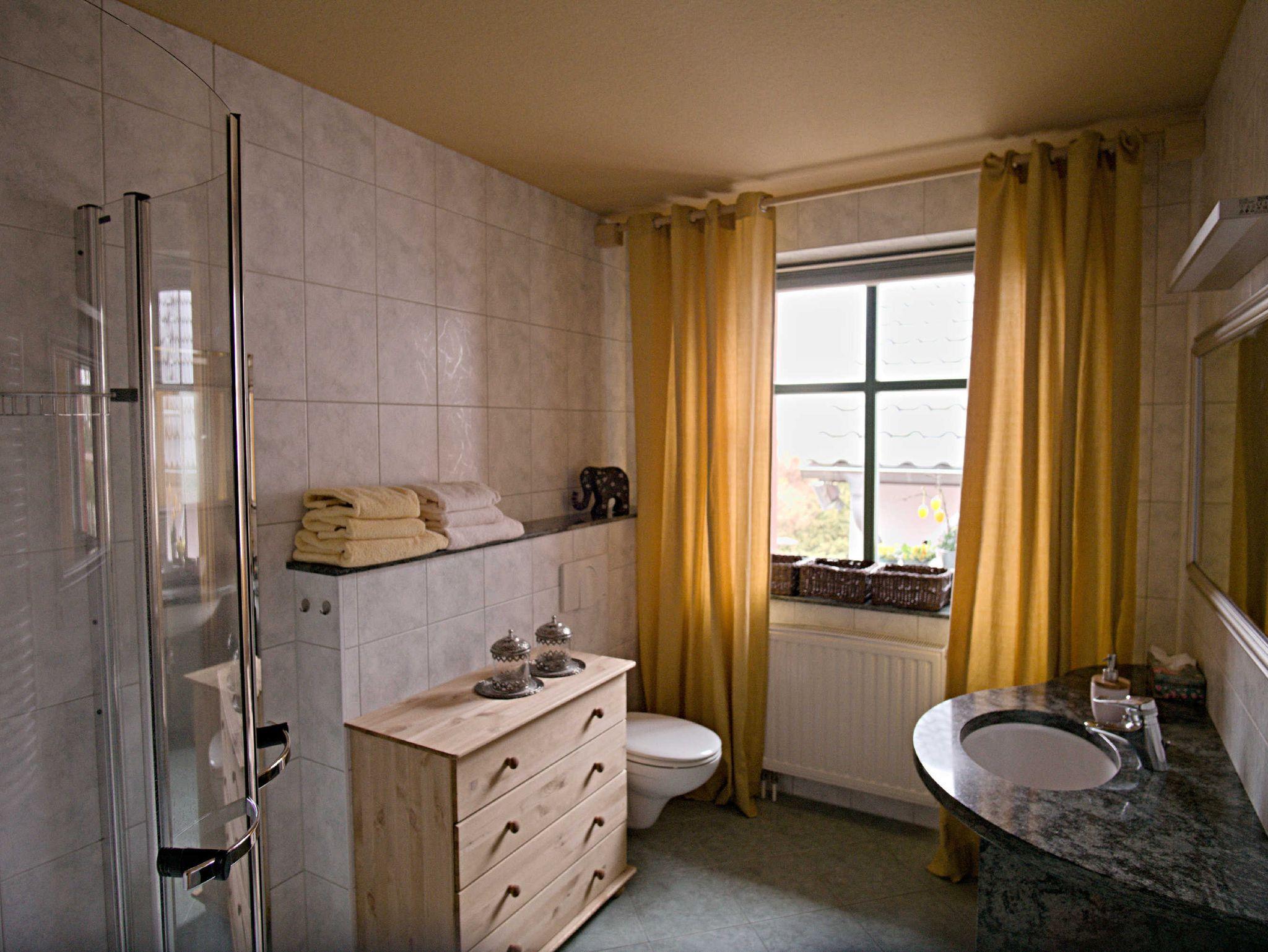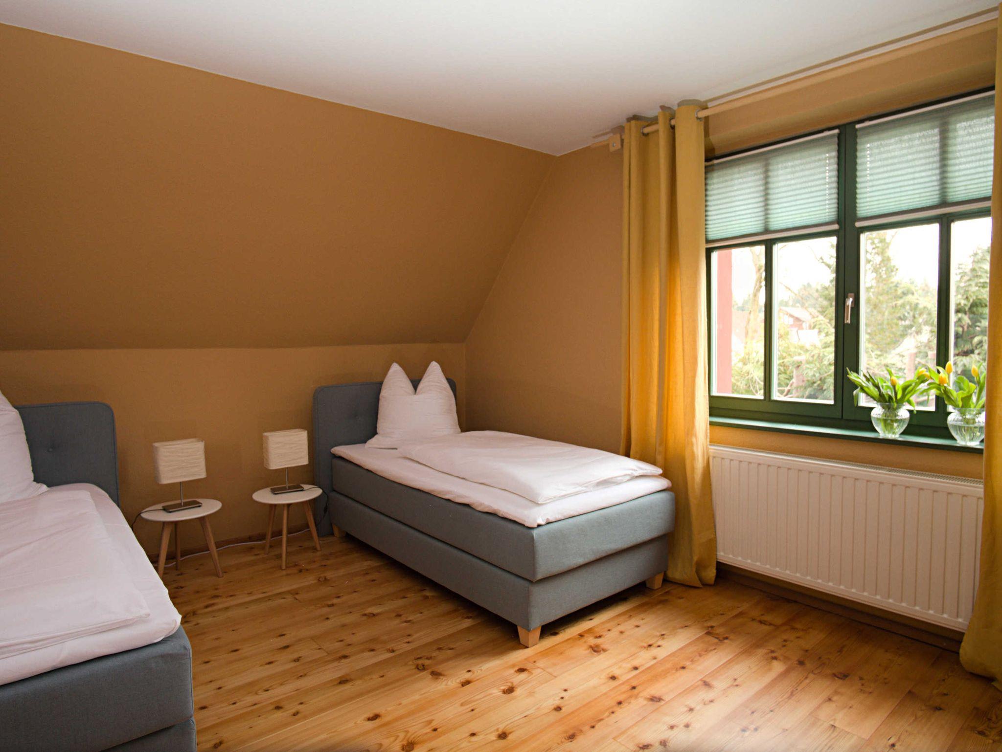 Zwei Schlafzimmer und eine Abstellkammer für die Koffer sind im Dachgeschoss für die Gäste nutzbar. Ein Schlafzimmer ist mit einem Doppelbett, das andere mit zwei Einzelbetten ausgestattet.