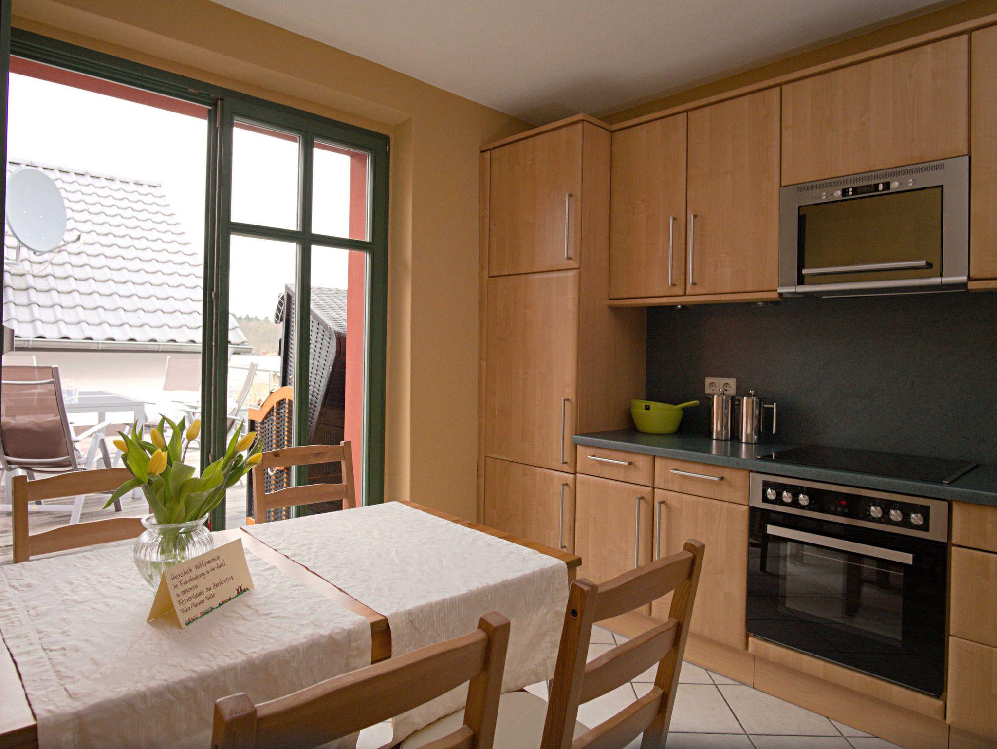 Von der Küche aus kann die Dachterrasse begangen werden. Diese gibt den Blick zum See frei. Ein Strandkorb sorgt dafür, dass maritimes Flair aufkommt. Hier steht für Sie ein Elektrogrill bereit.