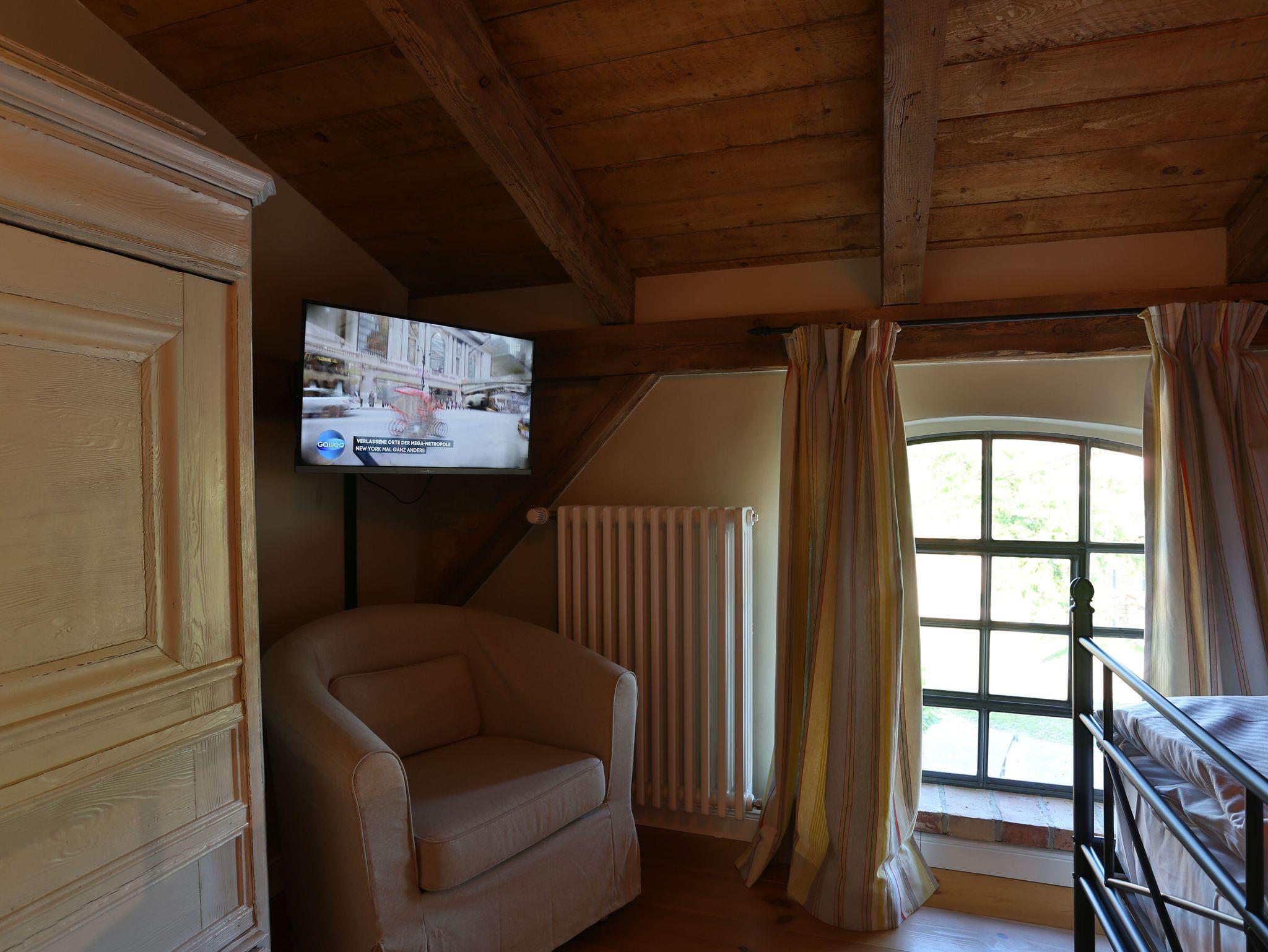 Unser einladendes Standard Doppelzimmer befindet sich im 1. Obergeschoss und ist über eine Treppe erreichbar. Die ca. 12 qm sind ausgestattet mit einem bequemen französisches Doppelbett und einem Flachbild TV. Das Bad beherbergt eine schöne Dusche und Fön. Alle Räume sind mit Echtholz-Dielen ausgelegt. Die Balken des Trägerwerks versprühen ein romantisches Landhausambiente. Im ganzen Areal empfangen Sie kostenloses WLAN. Unser Parkplatz ist ohne Gebühren nutzbar.