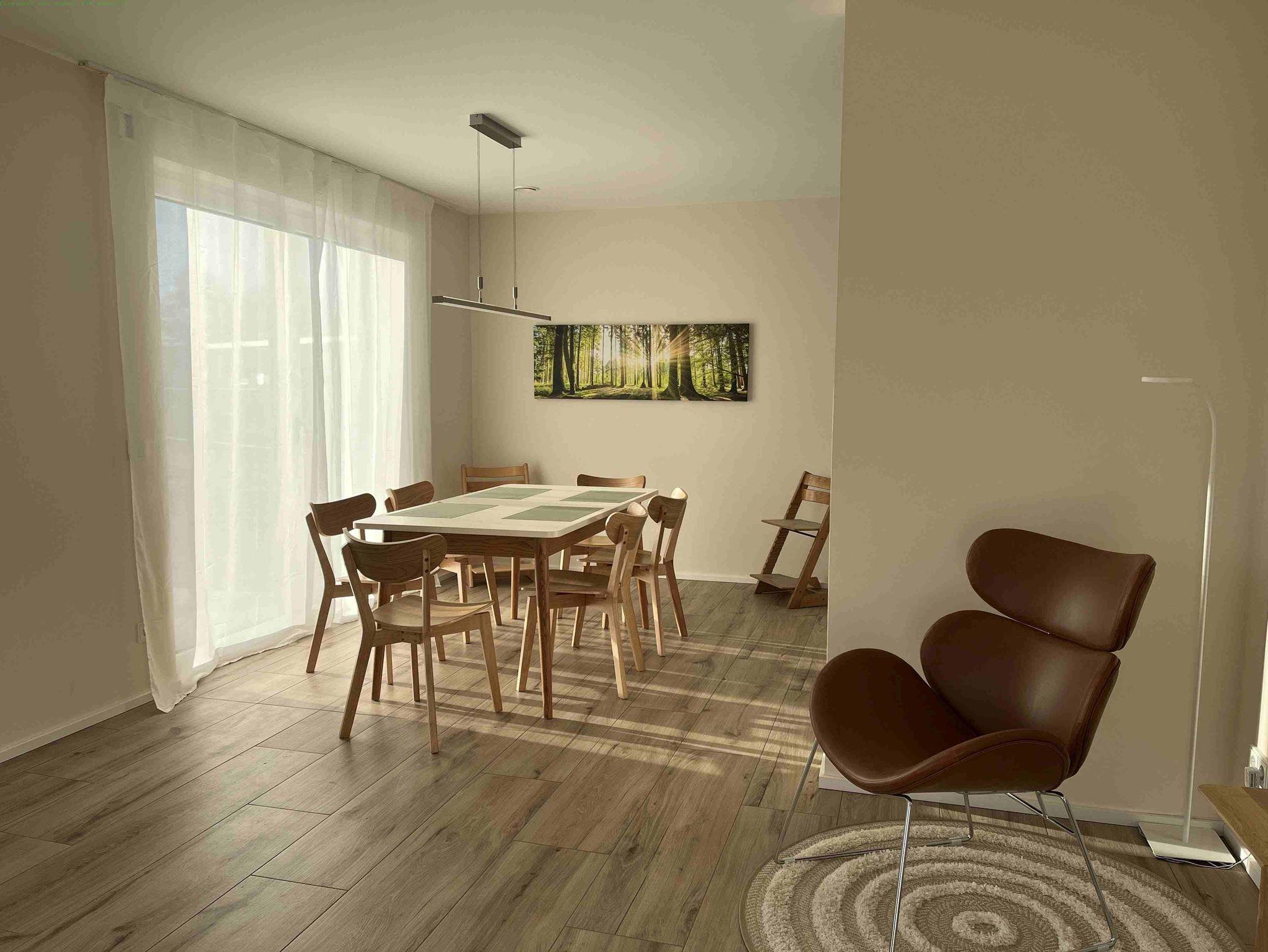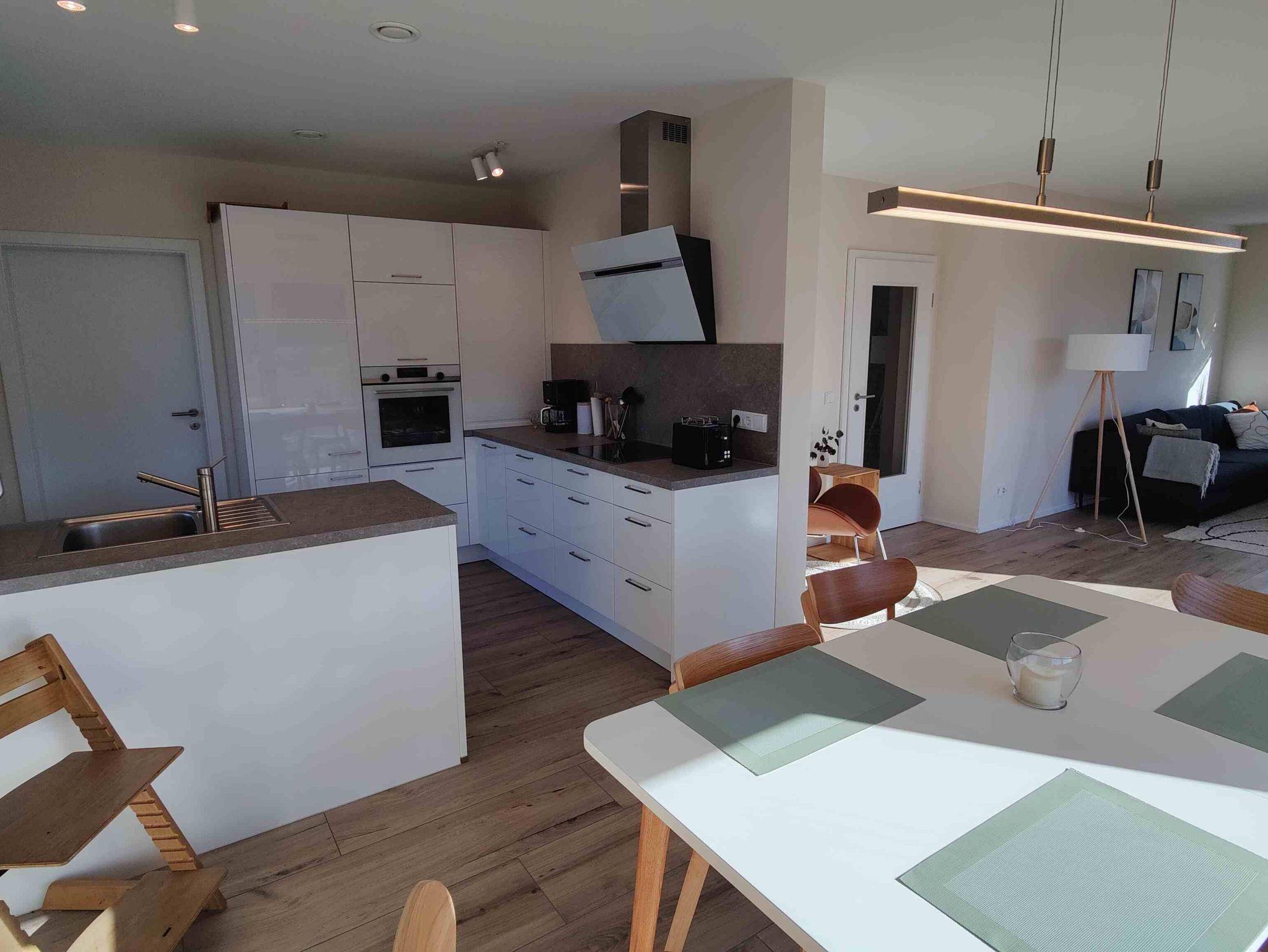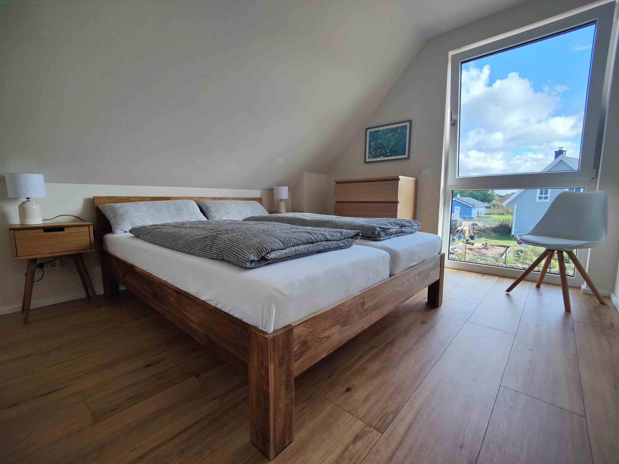 Das Ferienhaus ist für 8 Personen bestens ausgelegt. In der voll ausgestatteten, neuen Küche finden Sie einen modernen Induktionsherd mit Dunstabzug, einen großen Backofen, einen Kühlschrank mit Gefrierfach, eine Spülmaschine sowie Wasserkocher, Toaster und Kaffeemaschine. Geschirr, Besteck und Kochutensilien sind in guter Anzahl vorhanden. Im Hauswirtschaftsraum hinter der Küche befindet sich die Waschmaschine. Wohn- und Essbereich sind mit einem großen Esstisch ausgestattet, der ausgezogen werden kann und an dem dann 10 Personen bequem Platz finden können. Die große Coach und der sehr gemütliche Sessel im Wohnzimmer laden zum Verweilen ein, für Gespräche und auch zum gemeinsamen Musik- oder TV-Genuss. Im Erdgeschoss befindet sich neben einer geräumigen, hellen Diele mit Garderobe und großem Spiegel zudem noch ein Arbeitszimmer mit Schreibtisch, ergonomischem Schreibtischstuhl und einer Coach sowie ein Badezimmer mit Dusche und WC. Vier gemütlich eingerichtete Schlafzimmer, drei mit Doppelbetten sowie eines mit zwei Einzelbetten finden Sie im Obergeschoss. Für kleine Kinder können wir auf Wunsch ein Reisebett als Aufbettung zur Verfügung stellen. Zudem gibt es im Obergeschoss ein großzügiges Badezimmer mit Dusche und WC. Erdwärme gibt die Energie für die Fußbodenheizung, die ein sehr angenehmes Wohnklima erzeugt. Sie können die warmen Tage auf der großen Terrasse mit Südausrichtung genießen und den gesamten Garten des über 700 m2 großen Grundstücks nutzen. Fahrradtouristen können Ihre Fahrräder im Holzschuppen unterstellen und abschließen.