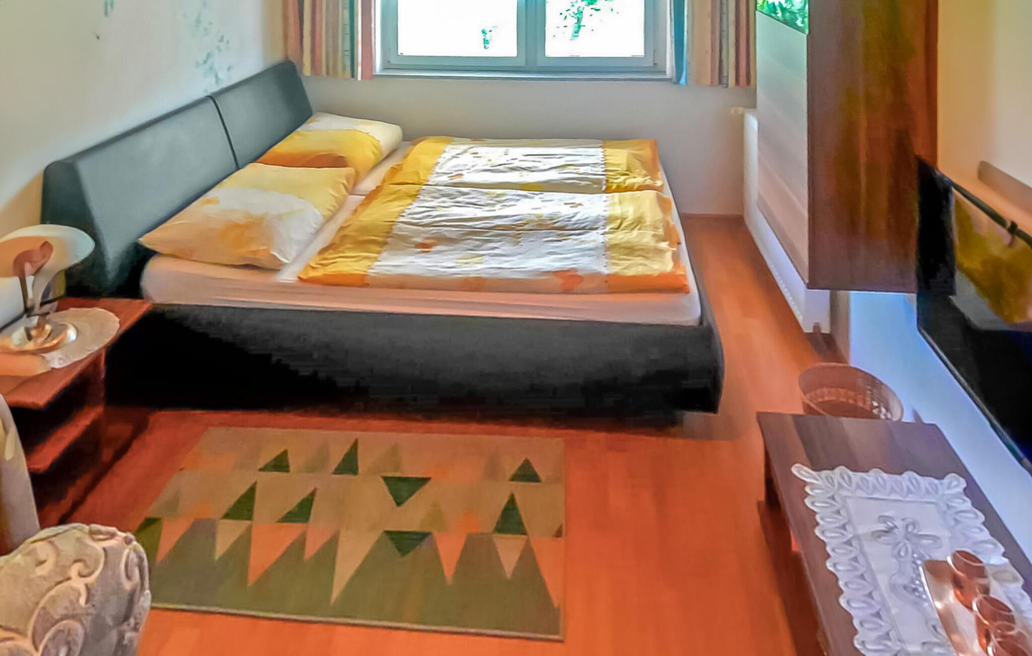 Ferieleilighet med kombinert stue/soverom (dobbeltseng, sittegruppe, satellitt-TV, radio), soverom (2 enkeltsenger), kjøkken (spiseplass, kjøkkenkrok), dusj/WC, oppvarming, insektsnett og møblert terrasse. Avhengig av tilgjengelighet har gjestene tilgang til et overbygd, oppvarmet basseng, badstue, uteservering, grill, parkeringsplasser og W-LAN.