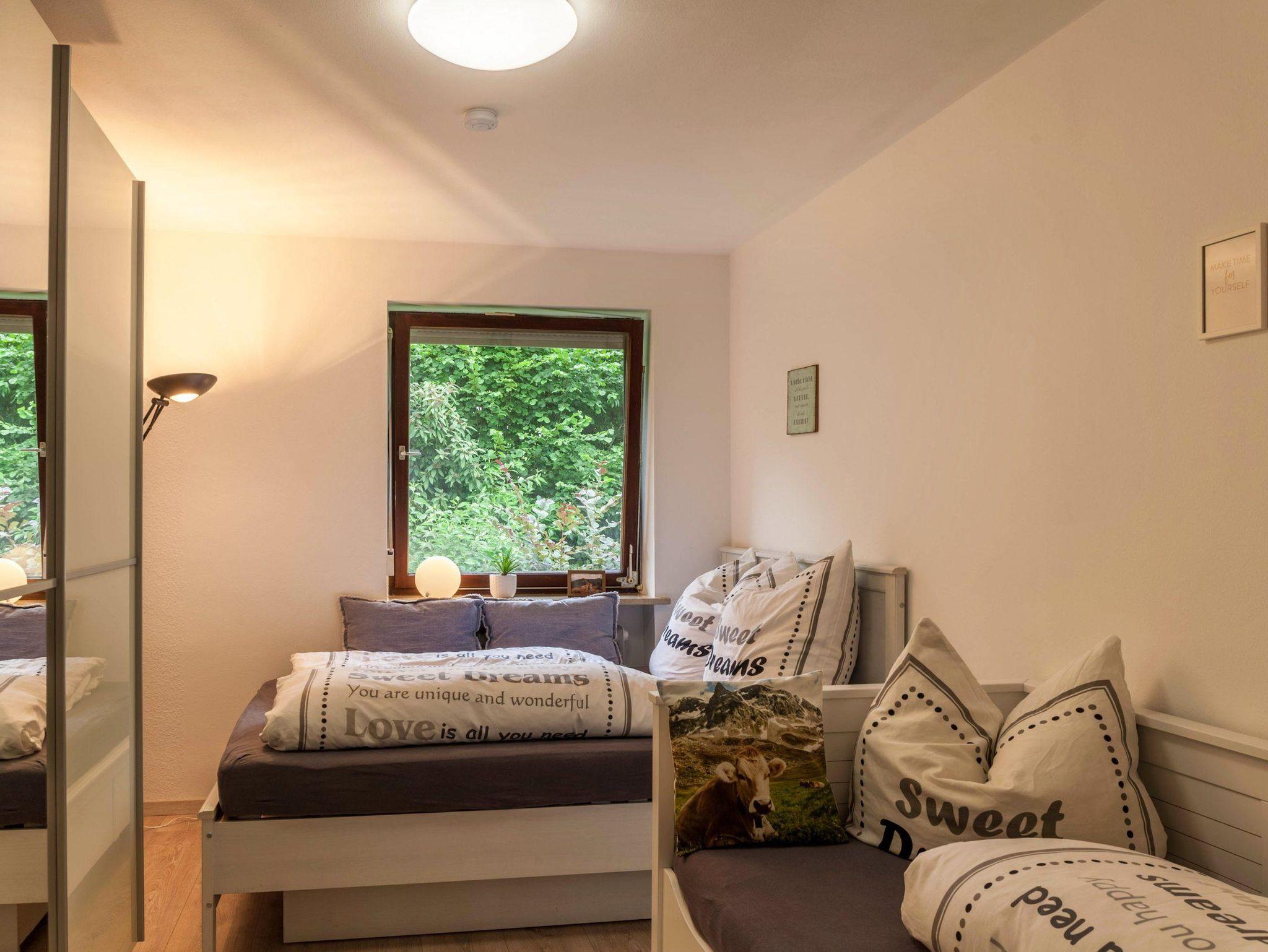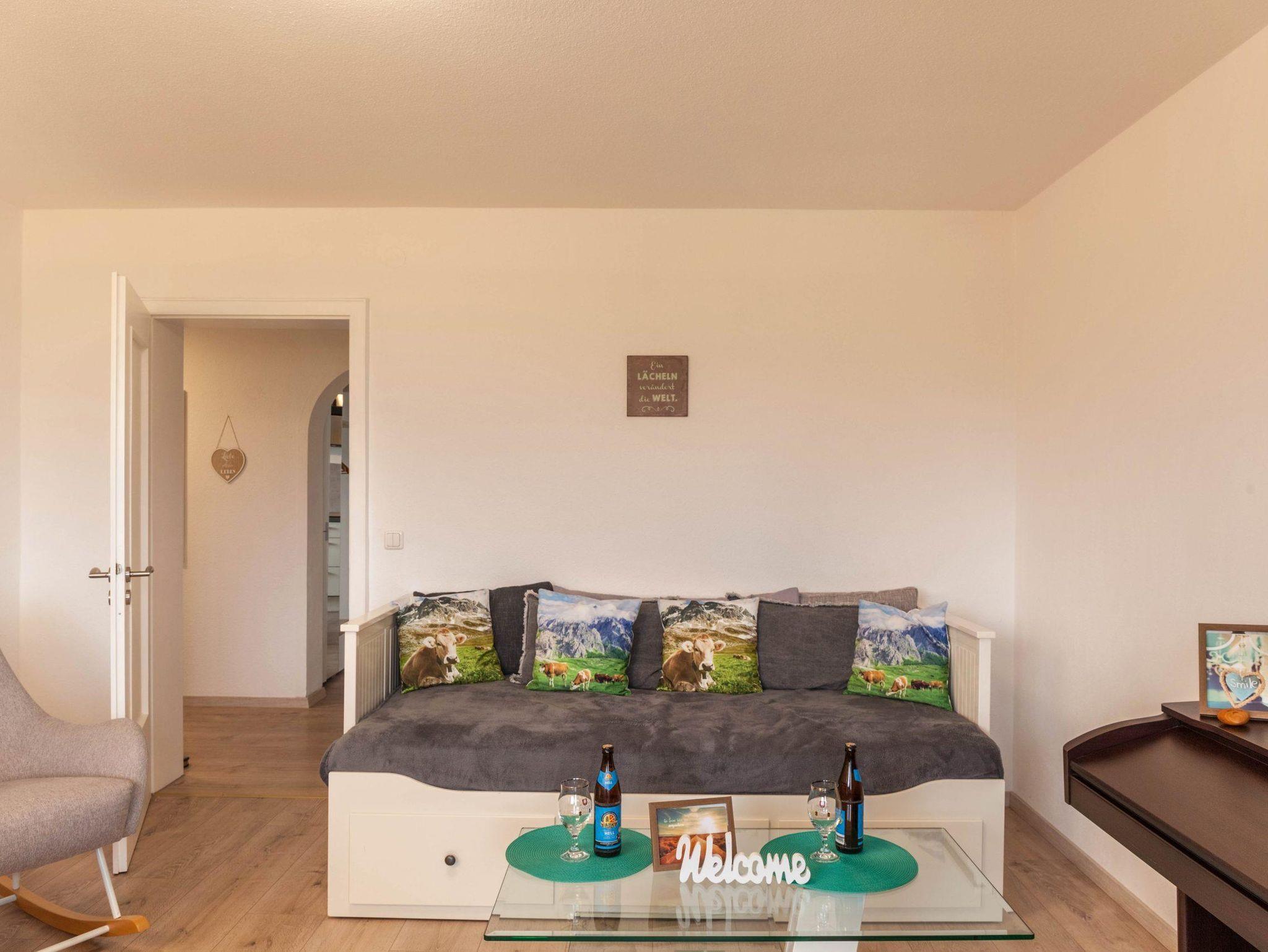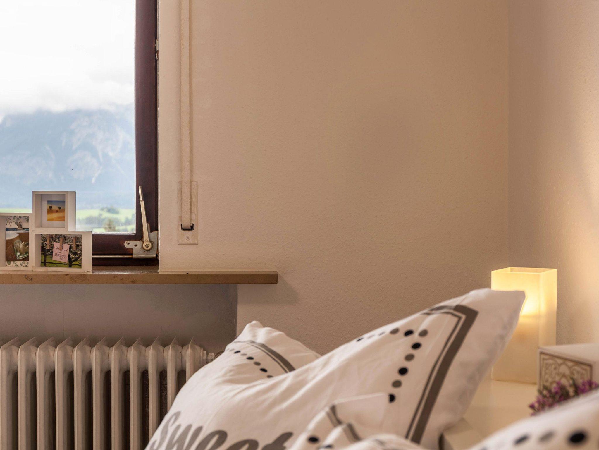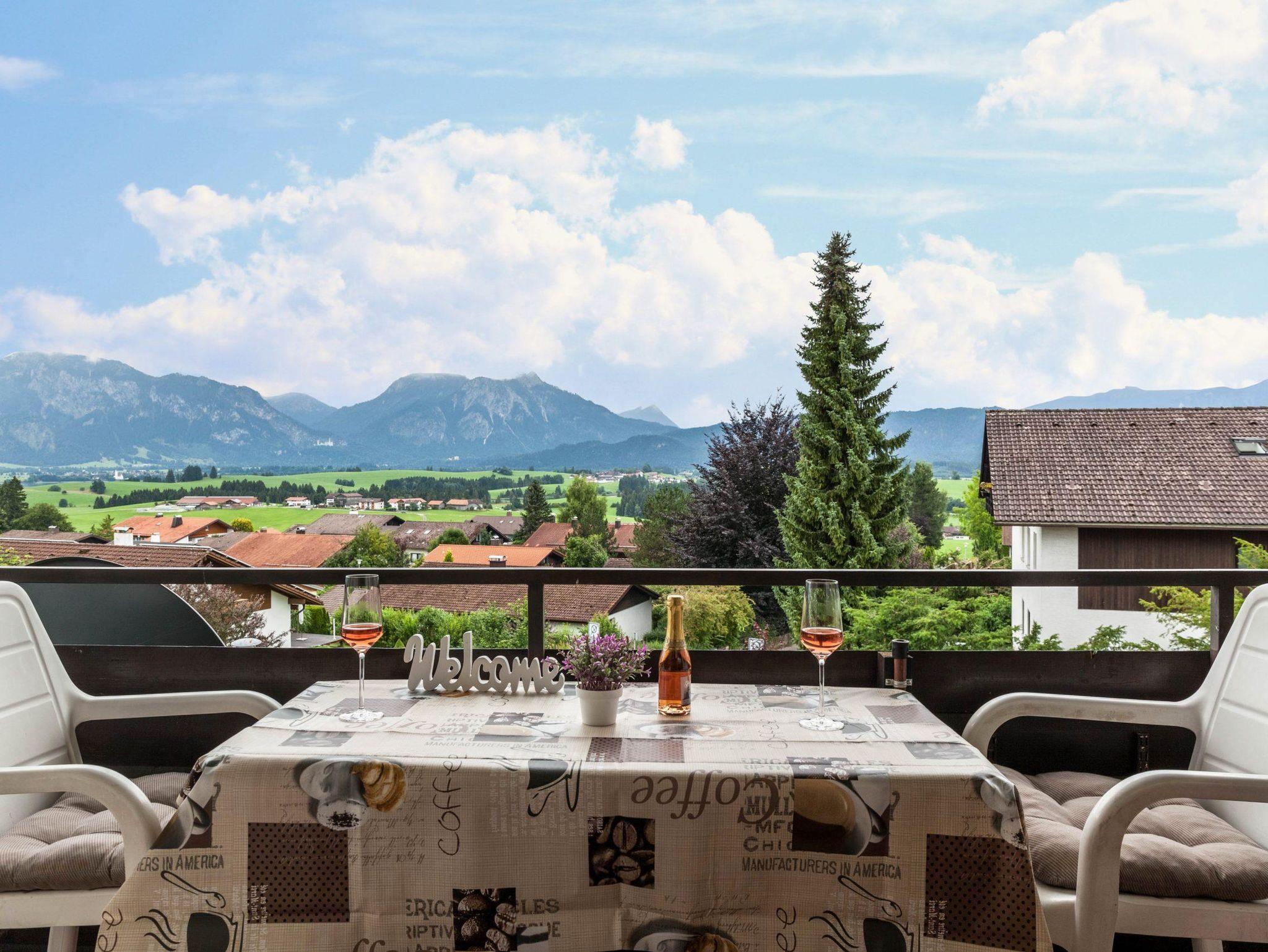 In der Wohnung werden die Gäste in einer angenehmen Atmosphäre empfangen. Es bietet komfortable Zimmer mit gigantischen Ausblick auf die Königsschlösser, Hopfen und den Forggensee sowie die Bergkette von Deutschland und Österreich
