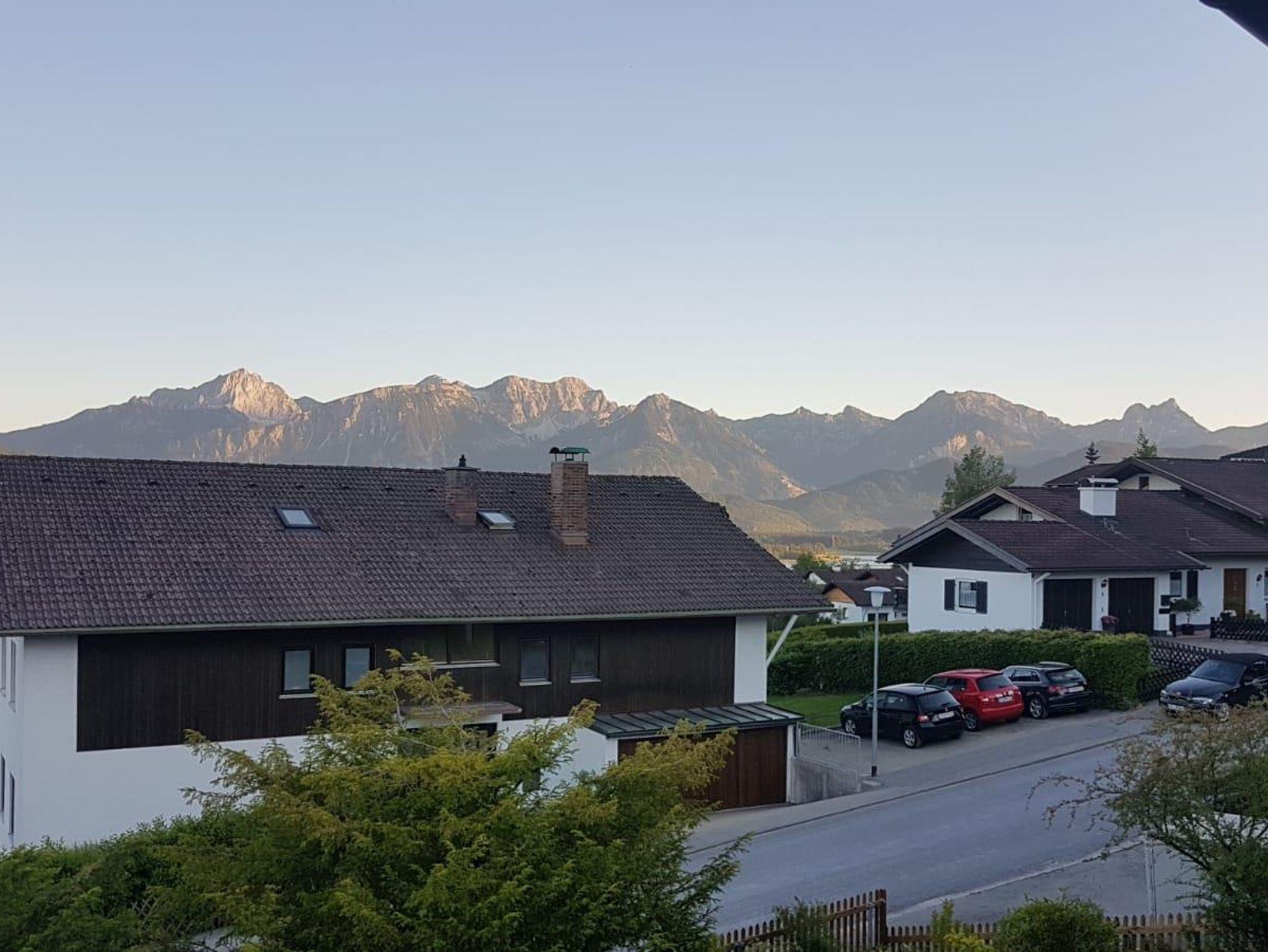Die wunderschöne gr. 3 Zimmer Wohnung liegt im ersten Stock. Direkt vom Wohnzimmer und dem Schloßblickschlafzimmer haben Sie Zugang zu dem großen Süd Balkon der ihnen einen unvergesslichen Ausblick auf die königlichen Schlösser Neuschwanstein und Hohenschwangau , Hopfensee Forggensee sowie die gesamte Bergkette bietet.