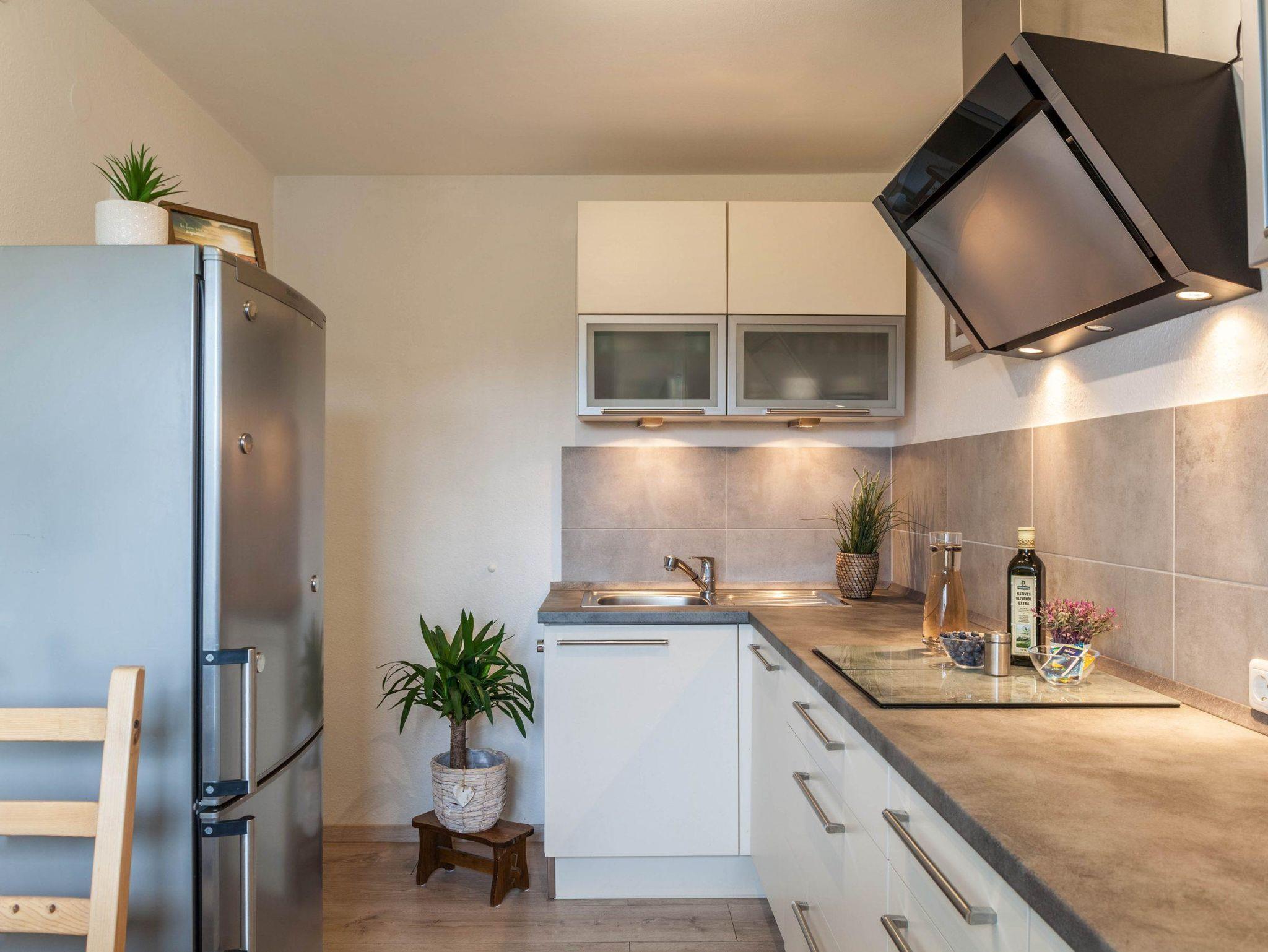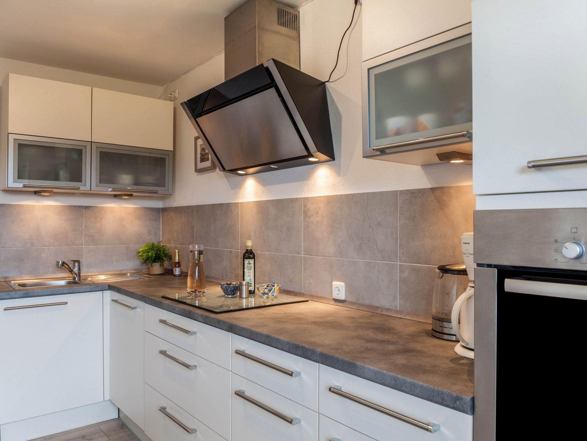 Es gibt eine voll ausgestattete Küche mit großem Cerankochfeld, großem Backofen Minibackofen ,großem Kühl-Gefrierschrank, einer gr. Spülmaschine mit Aquastop sowie eine Kaffeemaschine und einenToaster