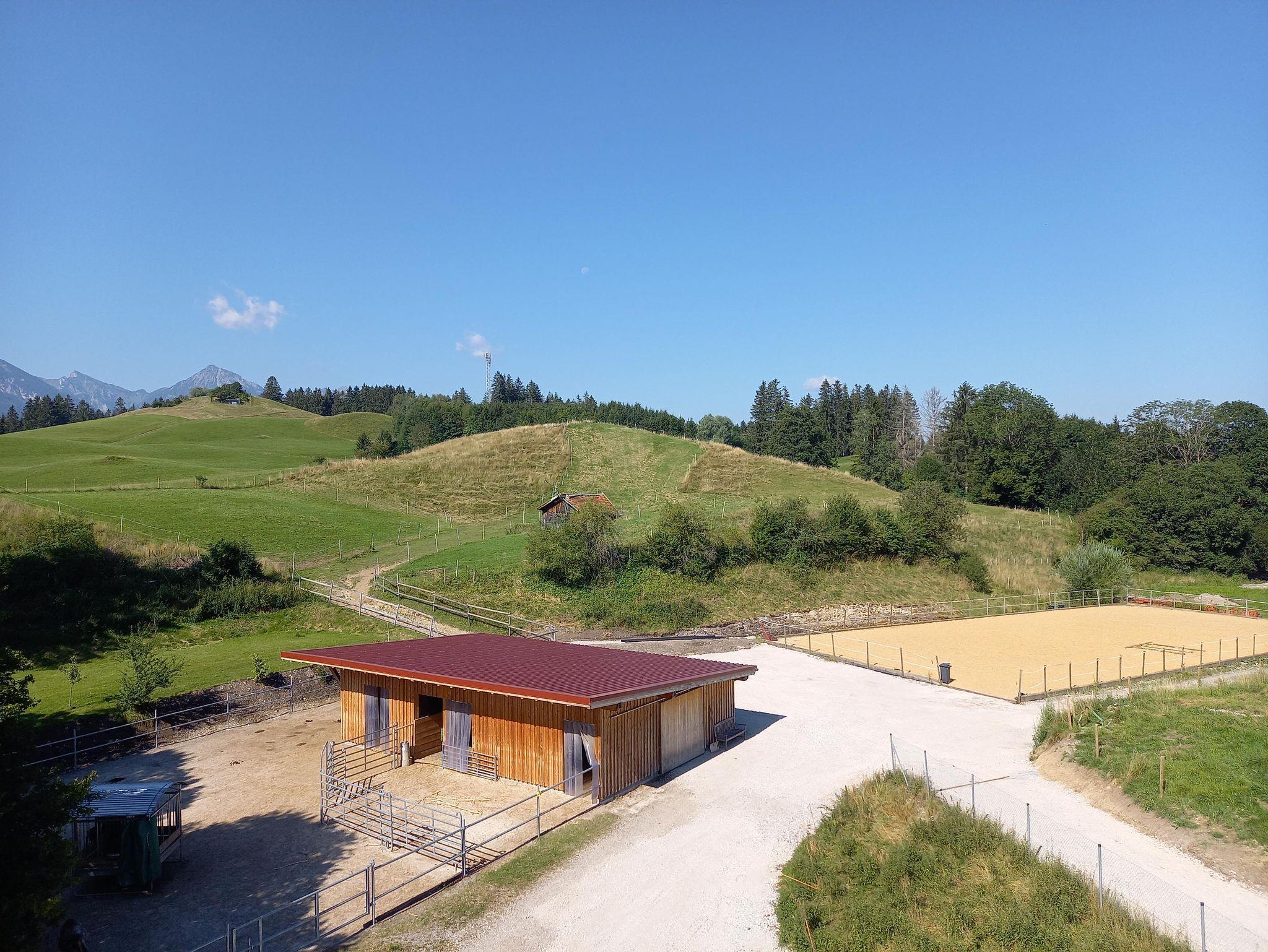Unser Ferienhof ist ein ehemaliger Bauernhof, umgeben von 3,50 Hektar grünen Wiesen. Hier befinden sich zwei Offenställe mit Pferden und Eseln. Von unseren Hausbergen, dem „Galgenbichel“ und dem Stierbichel, erwartet Sie ein herrlicher Blick auf ganz Füssen, den Forggensee, das prächtige Bergpanorama und die Schlösser von König Ludwig II.