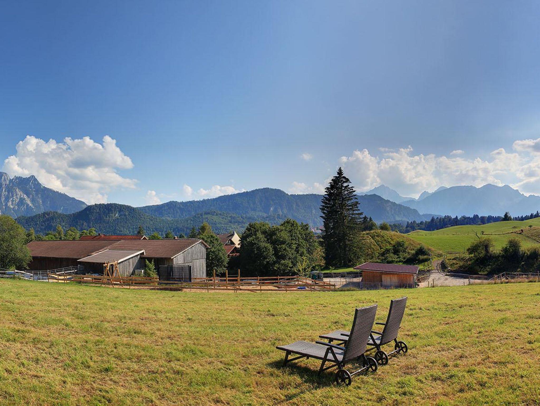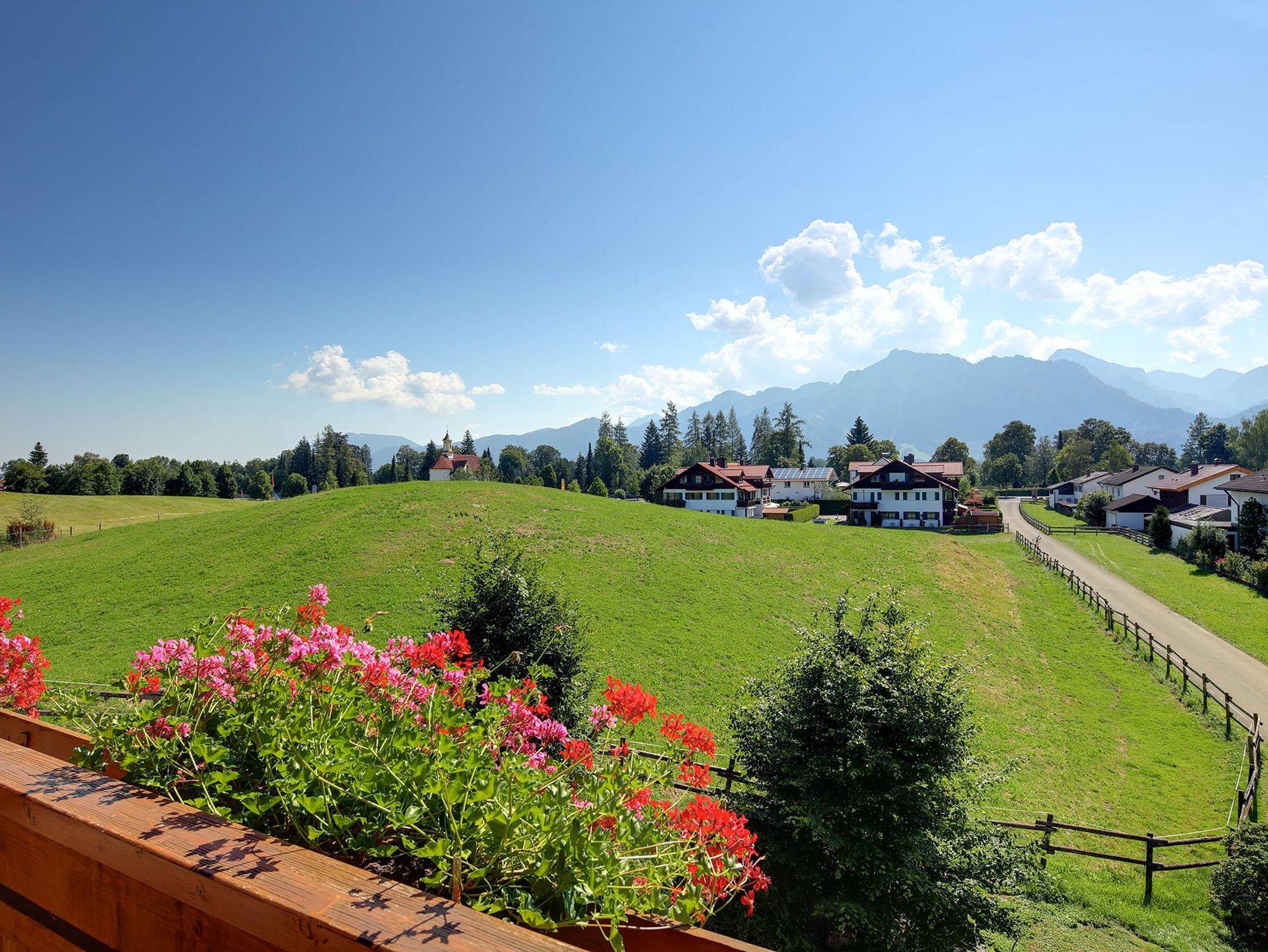 Unser Ferienhof ist ein ehemaliger Bauernhof, umgeben von 3,50 Hektar grünen Wiesen. Hier befinden sich zwei Offenställe mit Pferden und Eseln. Von unseren Hausbergen, dem „Galgenbichel“ und dem Stierbichel, erwartet Sie ein herrlicher Blick auf ganz Füssen, den Forggensee, das prächtige Bergpanorama und die Schlösser von König Ludwig II.