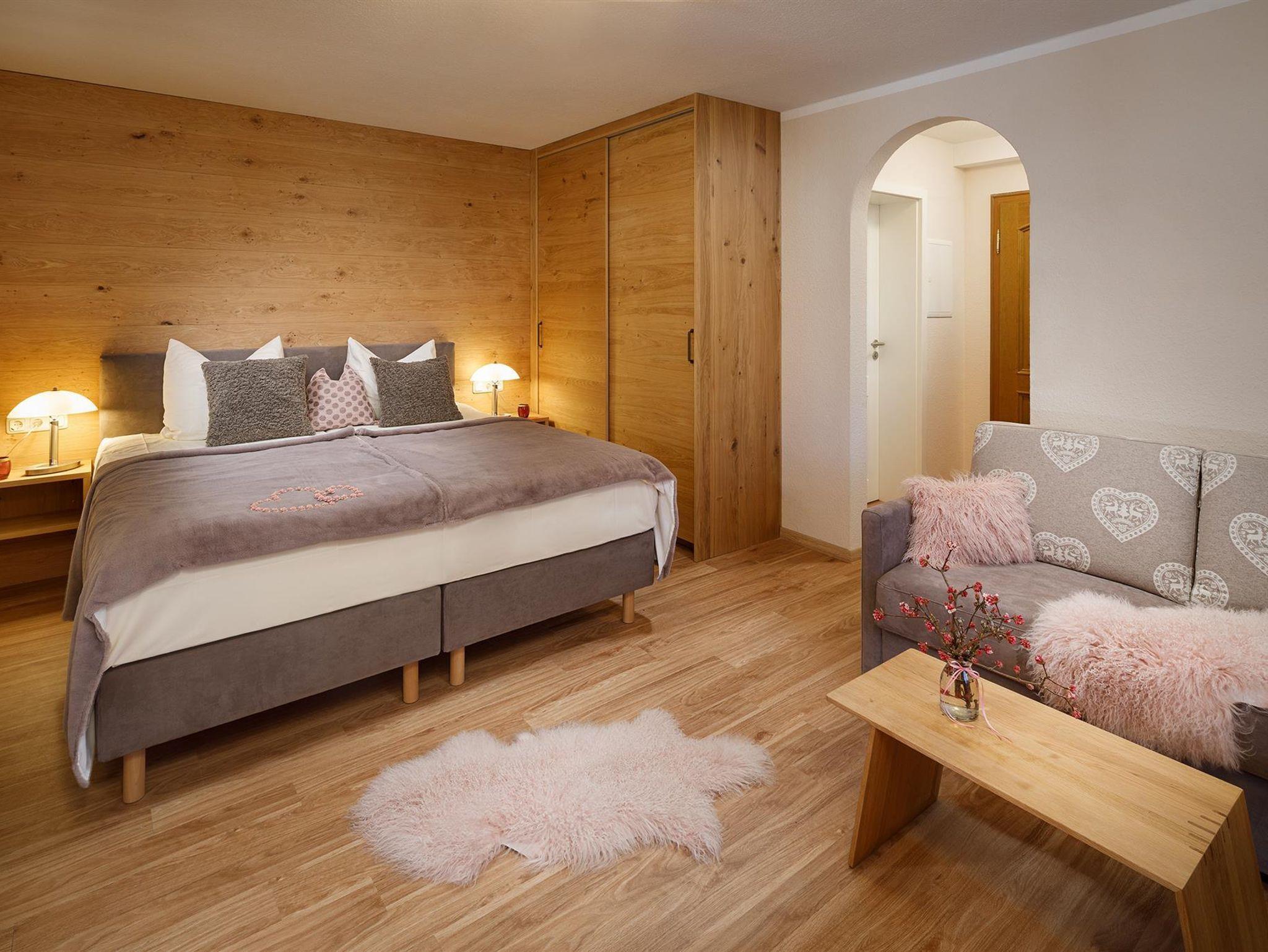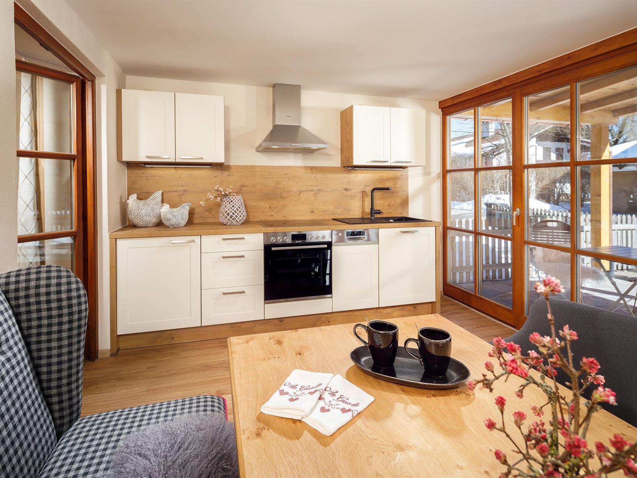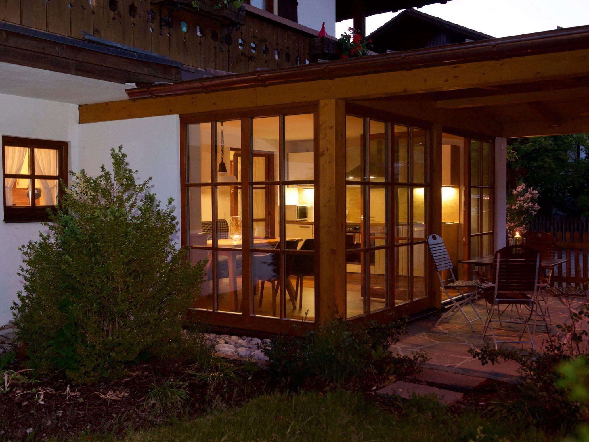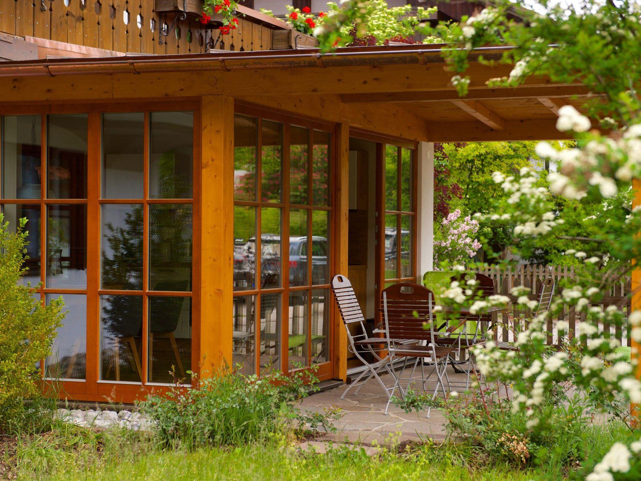 Das Zwei-Zimmer-Apartment König Ludwig befindet sich im Erdgeschoss mit überdachter Ostterrasse und Garten.