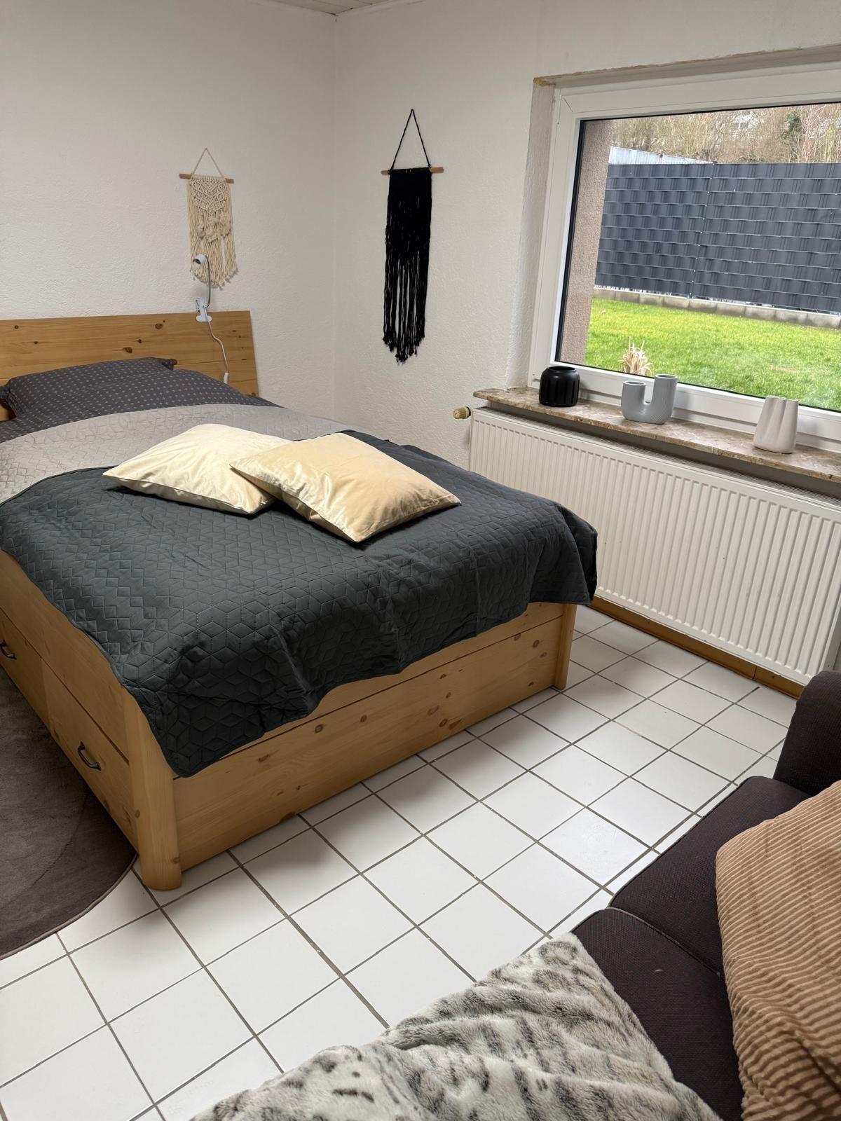 Die Wohnung hat einen eigenen Hauseingang und eines der Zimmer bietet über eine Terrassentür direkten Zugang zum Garten mit Gartenmöbeln für Sie.