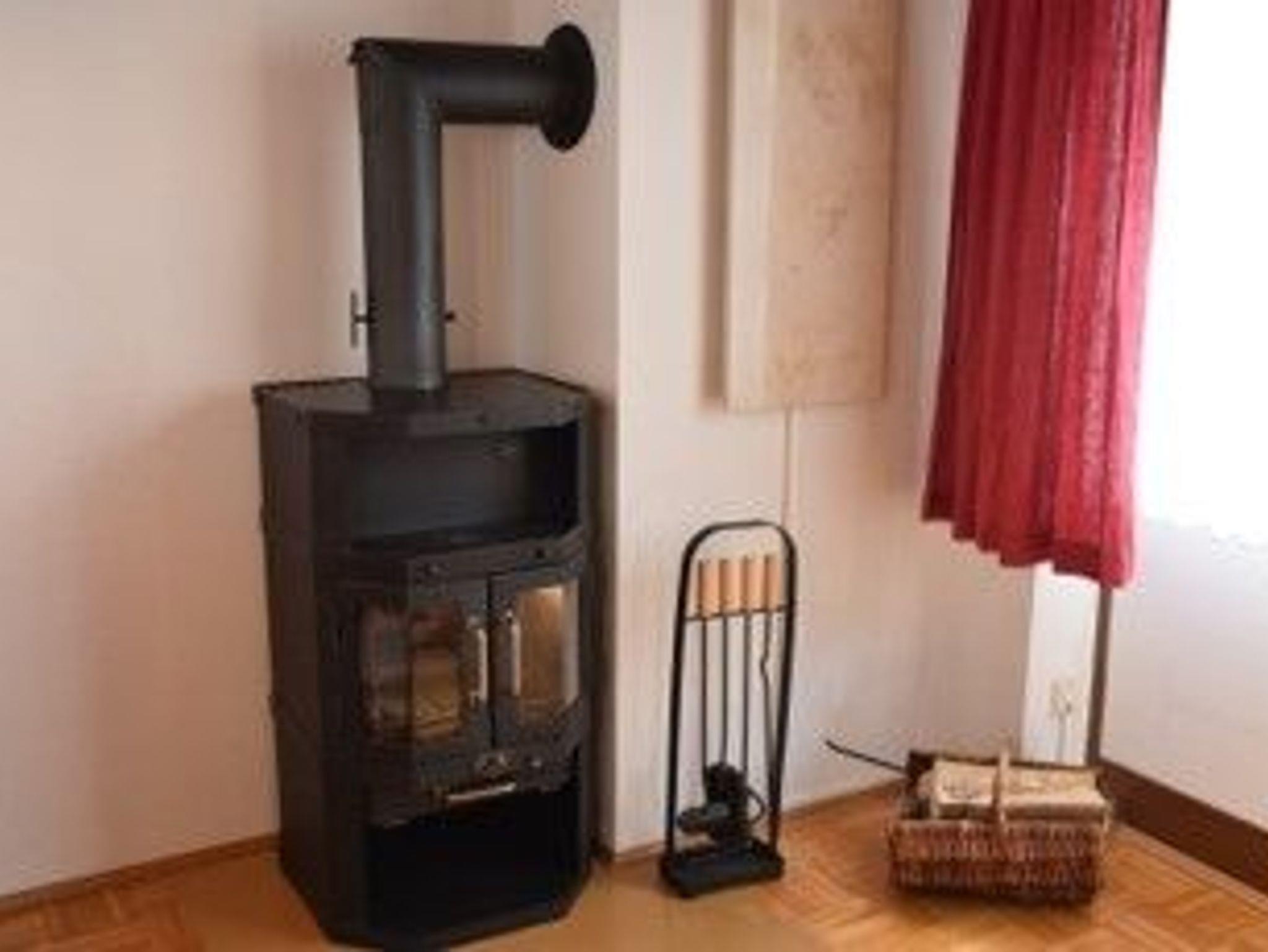 Der großzügige Wohnbereich verfügt über ein gemütliches Sofa mit Recamiere. Für die kalte Jahreszeit steht Ihnen ein Kaminofen zur Verfügung. Zur Unterhaltung können Sie zwischen Flachbildschirm mit SAT und sky, DVD Player (einige DVDs vorhanden), Bücher und Musikanlage wählen.