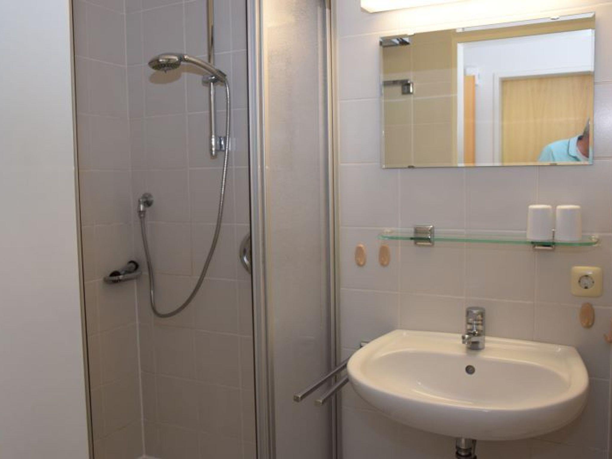Das Badezimmer ist zweckmäßig ausgestattet. Fön ist vorhanden.