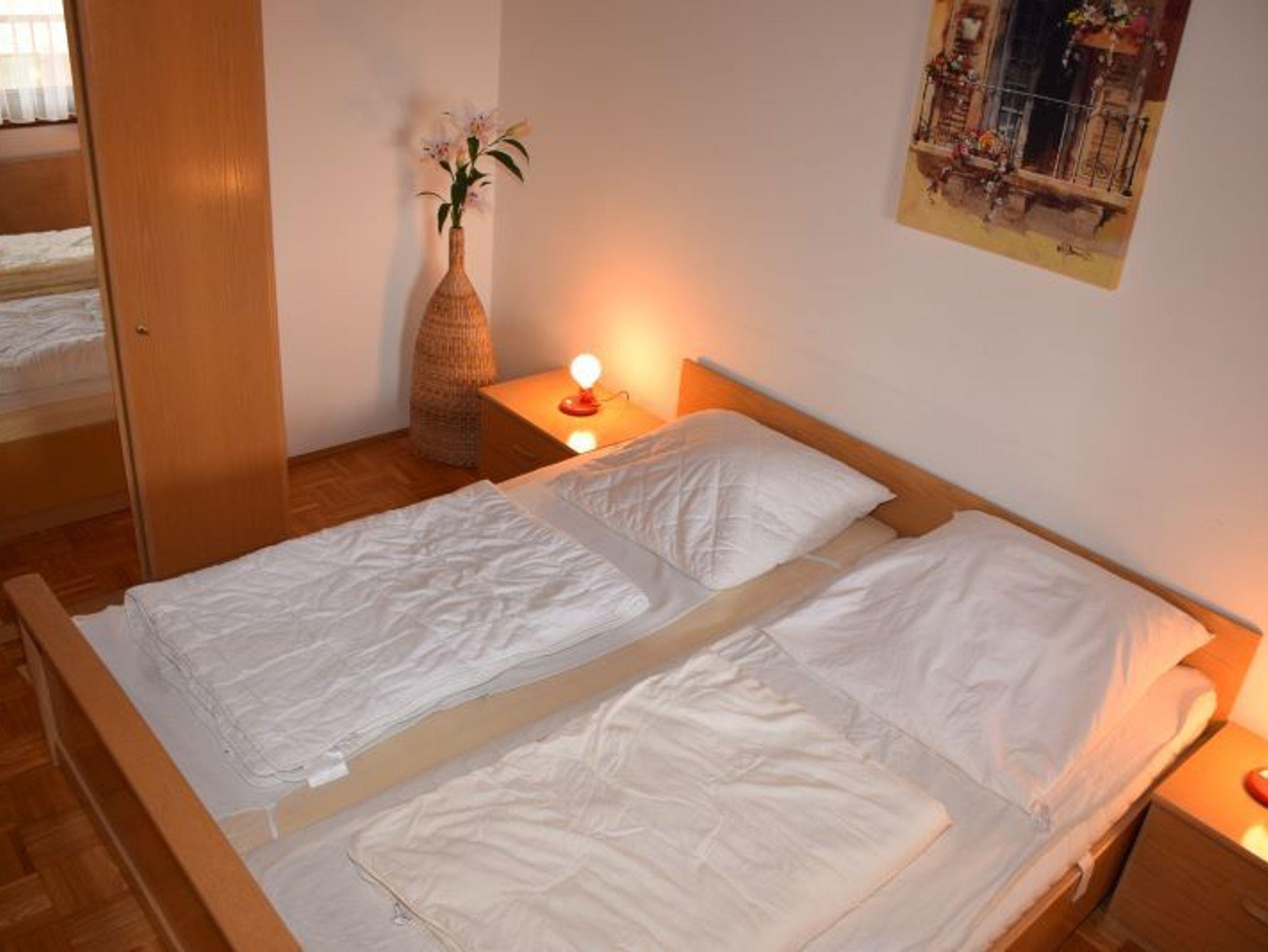 Das Schlafzimmer verfügt über ein Doppelbett, Nachtschränke und einem geräumigen Schrank. Bügeleisen , Bügelbrett und Wäscheständer sind vorhanden.