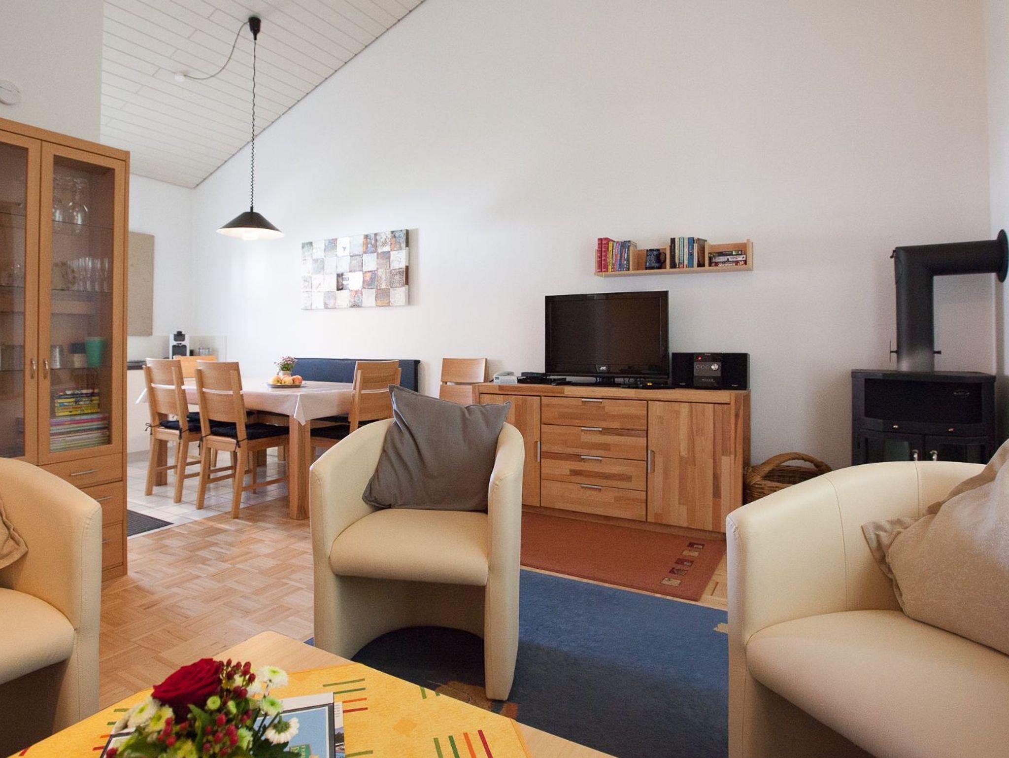 Dergroßzügige Wohnraum mit voll ausgestatteter L-Küche (einschließlich großer Spülmaschine und Backofen-Mikrowelle-Kombigerät), gemütlichem Essplatz, bequemer Polstergarnitur, LCD-TV (mit sky), Blue-Ray-Player, Stereo-Anlage, Telefon sowie eine große Auswahl an Gesellschaftsspielen,eine Playstation (mit Spielen) und Lesestoff für jedes Alter bieten Ihnen alle Annehmlichkeiten für einen angenehmen Aufenthalt. Und solltenSie sich über das Fernsehprogramm einmal nicht einigen können, so stehtim zweiten Schlafzimmer ein zusätzliches Fernsehgerät (LCD) mit DVD-Player bereit.