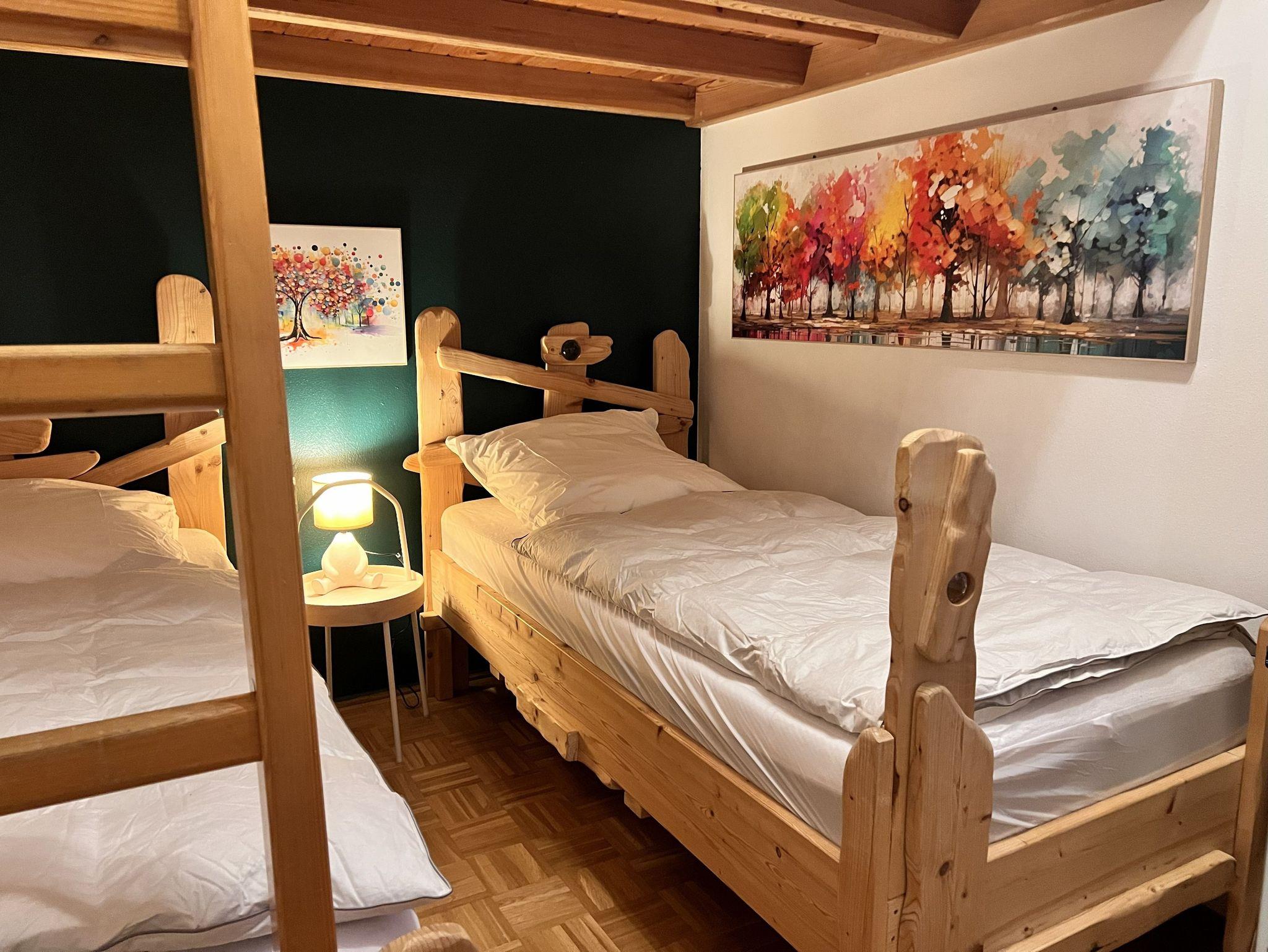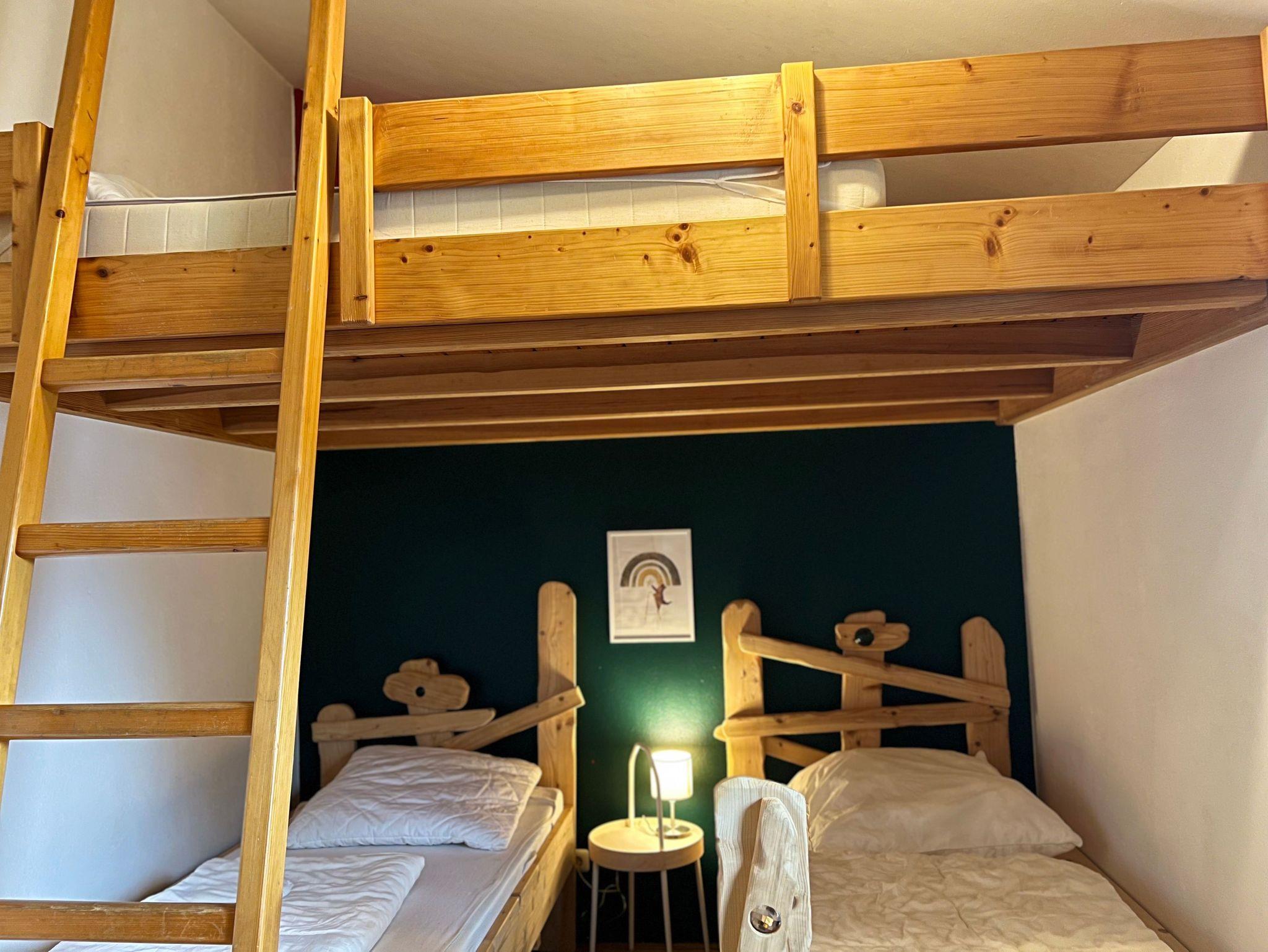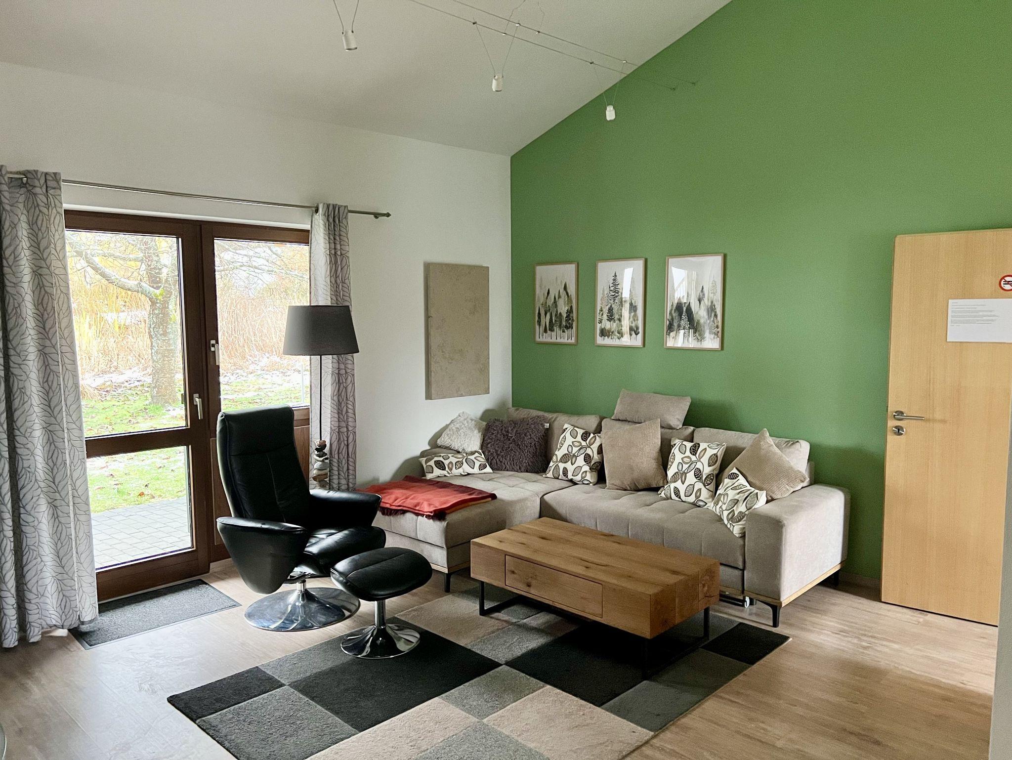 Der Name steht symbolisch für das, was euch bei uns erwartet: Erholung wie ein Bär ? ruhig und gemütlich ? oder Aktivität und Lebensfreude wie ein quirliges Eichhörnchen. Ob entspannte Auszeit oder abwechslungsreicher Familienurlaub ? hier findet ihr alles, was ihr für eine gute Zeit braucht. Der „Eichbär“ bietet Platz für bis zu 8 Personen ? ideal für Familien mit mehreren Kindern oder kleine Gruppen. Es gibt zwei Schlafzimmer ? eins mit Doppelbett, eins mit zwei Einzelbetten und einer Schlafempore sowie eine Schlafcouch im Wohnzimmer. Die Küche ist voll ausgestattet inkl. Geschirrspüler und Mikrowelle, im Wohnbereich sorgt ein Pelletofen an kalten Tagen für gemütliche Wärme. Damit das Auto nicht allzu vollgepackt werden muss, ist für die Kleinsten schon alles da wie Reisebett, Hochstuhl, Bettgitter, Tritthocker, Toilettensitz oder Kindergeschirr. Die sonnige Terrasse mit schönem Wiesenstück lädt zum Entspannen und Spielen ein, ein Grill gehört ebenso zum Inventar wie ein großer Sonnenschirm. Ein 55-Zoll-Smart-TV mit Streaming-Funktionen und eine Xbox One mit verschiedenen Spielen und zwei Controllern sorgen für abwechslungsreiche Unterhaltung ? ideal für entspannte Abende oder Regentage. Aber wir haben auch an eine Auswahl an Büchern und Gesellschaftsspielen gedacht.