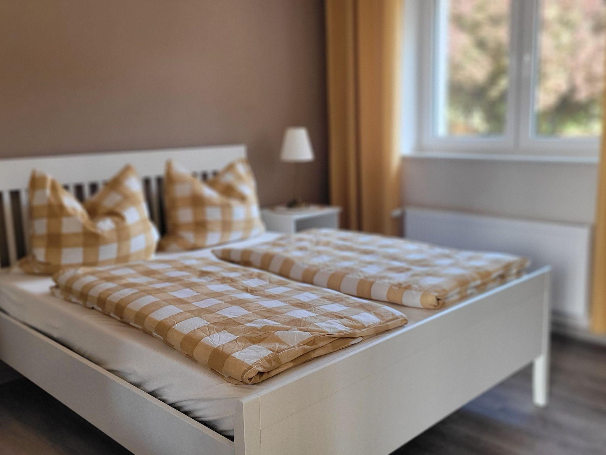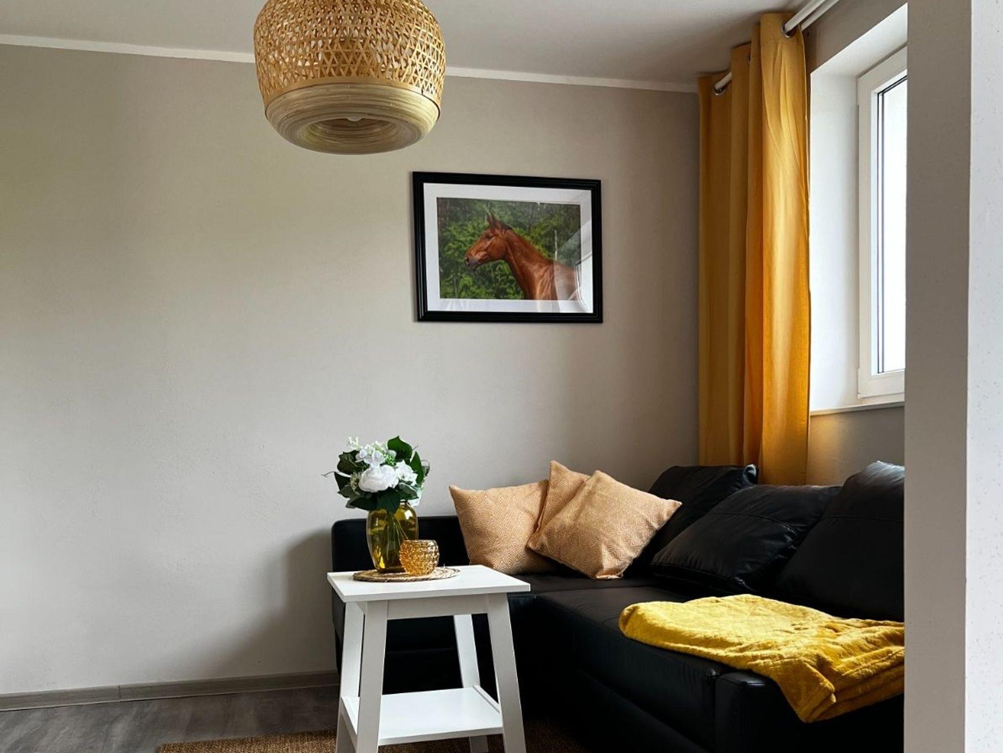 Die frisch renovierte Ferienwohnung Fürst verfügt über eine modern eingerichtete Küche, ein Schlafzimmer, ein Wohnzimmer mit Flachbildfernseher und ein Bad. In dem ruhig gelegenen Schlafzimmer verbringen bis zu zwei Personen eine ausgeruhte Nacht in einem großen Doppelbett. Für eine dritte Person bieten wir als Aufbettung eine Schlafcouch in dem offenen Wohnbereich. In der Küche befindet sich alles, was Sie für ein leckeres Frühstück, Mittagessen oder Barbecue am Abend benötigen. Zur Ausstattung gehören eine Geschirrspülmaschine, ein Toaster, eine Kaffeemaschine, ein Backofen, ein 4-Platten-Herd und eine großzügige Ausstattung mit Ess- und Kochgeschirr. Der offene Wohn- und Essbereich lädt zum Verweilen ein. Außerdem gibt es einen direkten Zugang zu einer eigenen Holzterrasse mit kleinem Garten. Hier lassen Sie den Alltag hinter sich und die Seele baumeln. Gönnen Sie sich eine Tasse Tee oder Kaffee auf unseren modernen Gartenmöbeln im Outdoorbereich. Ihr Fahrzeug können Sie direkt an der Ferienwohnung parken - es steht sicher auf unserem Gelände. Wir freuen uns nun, Sie auf dem Falkenhof in Meisdorf begrüßen zu dürfen und wünschen Ihnen eine gute Zeit.