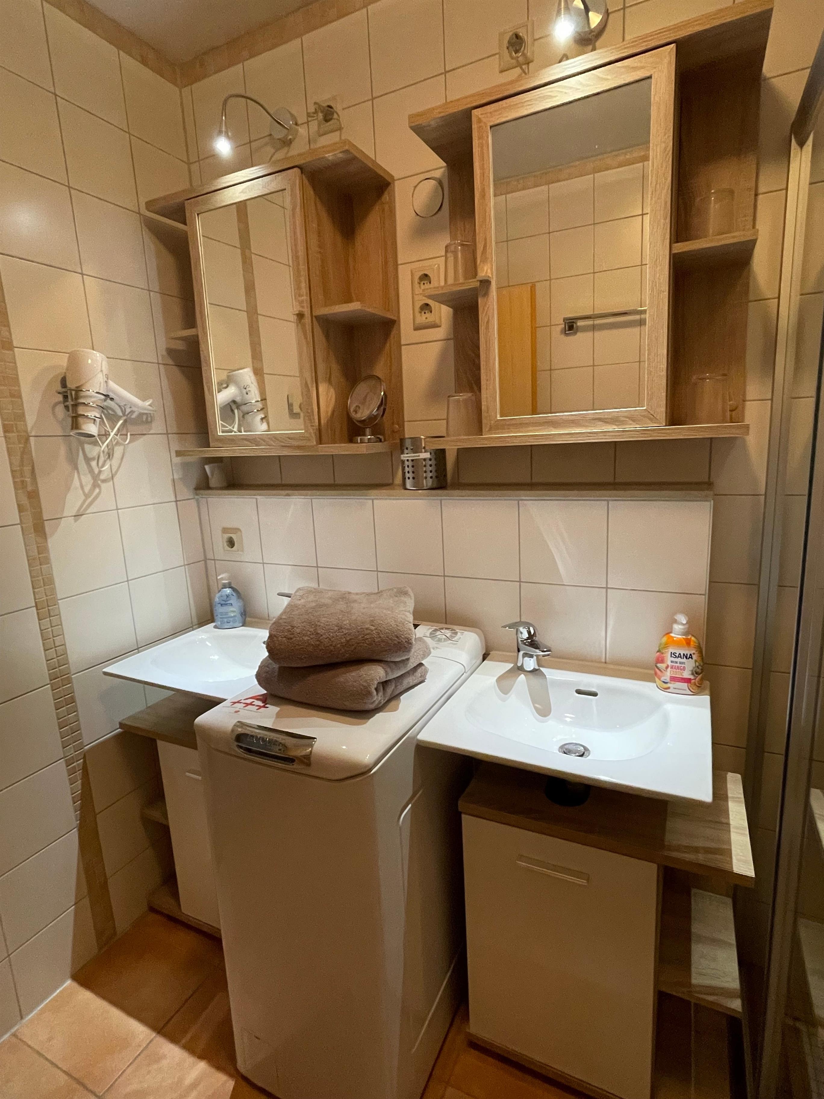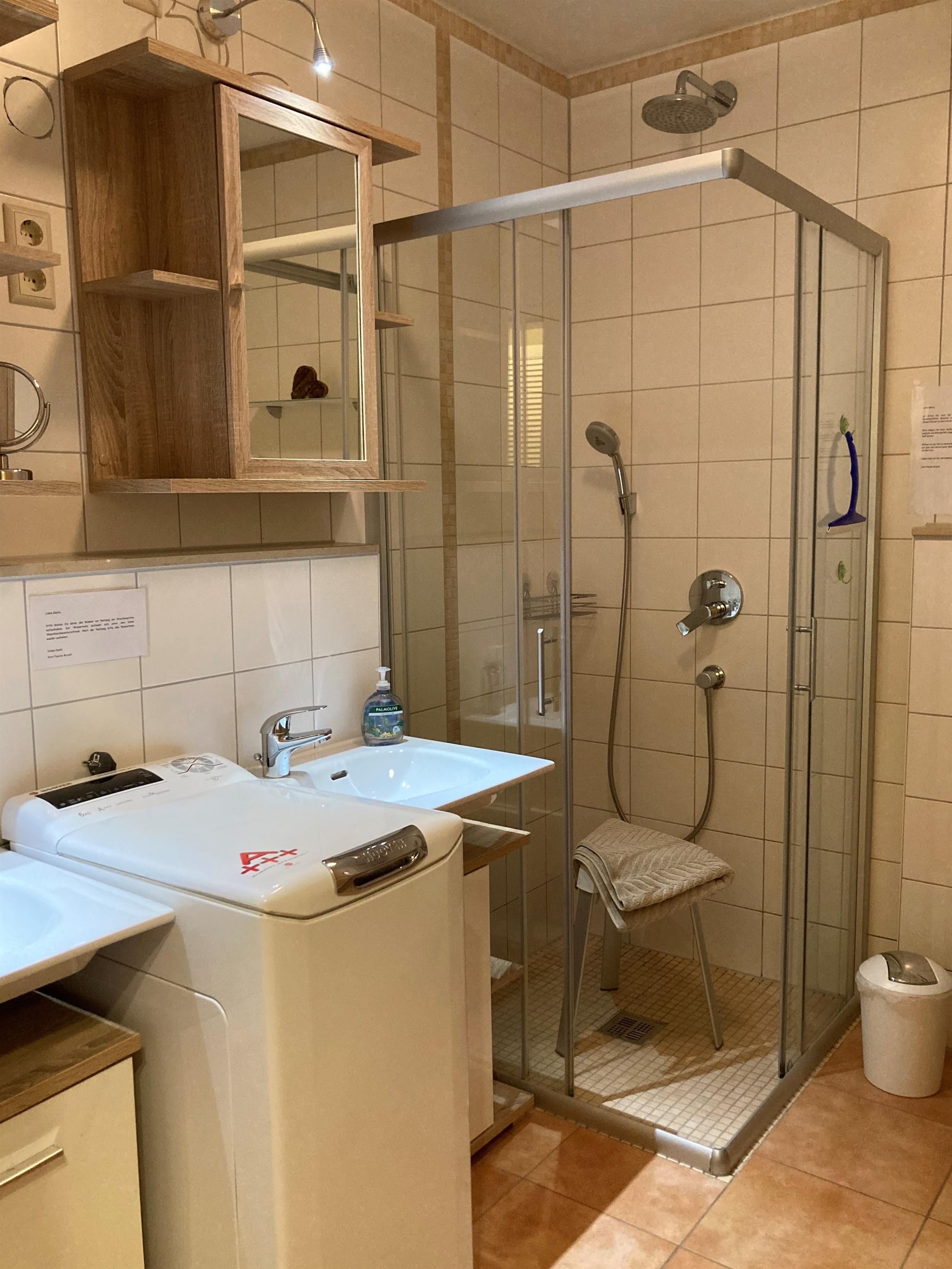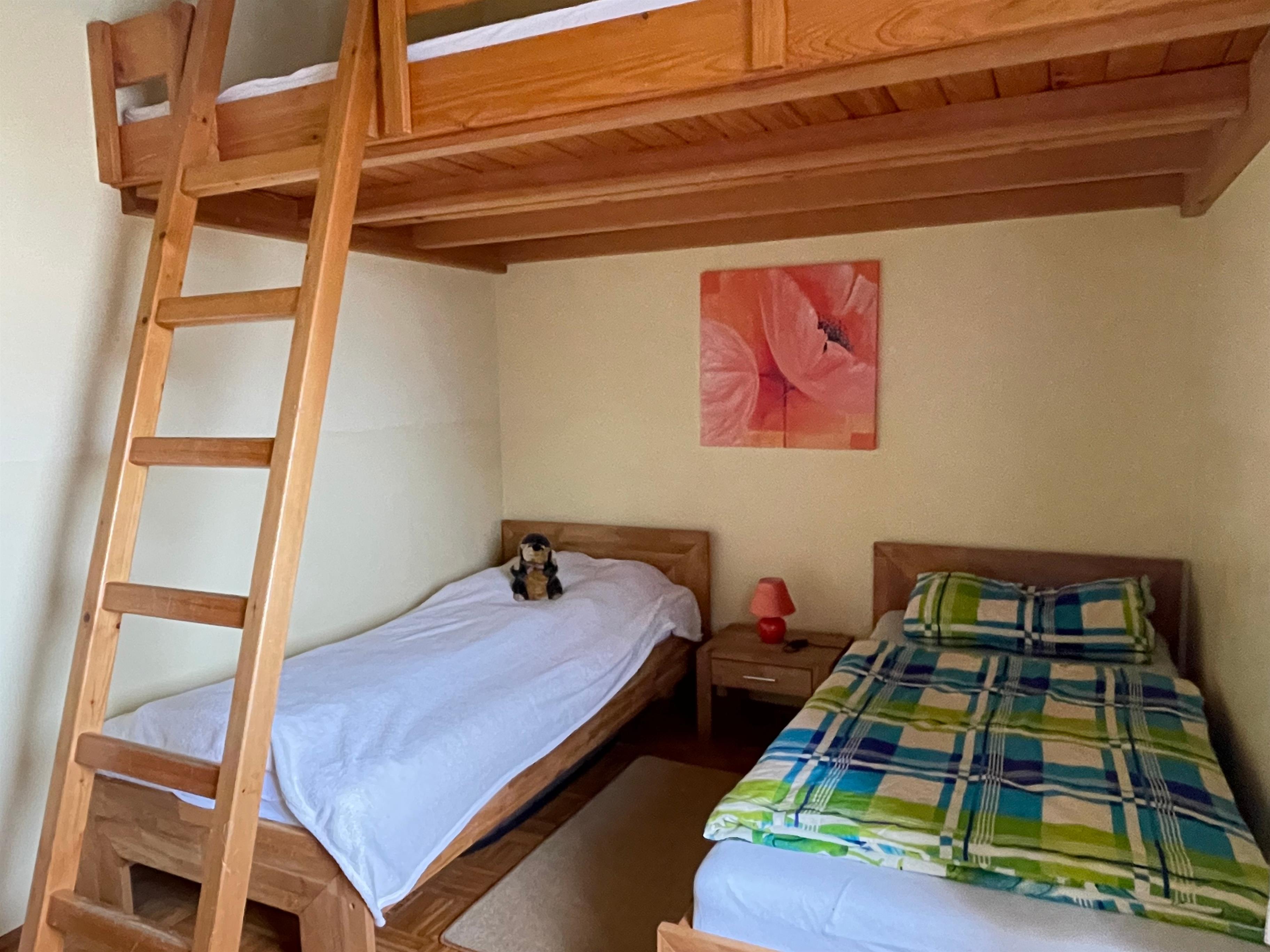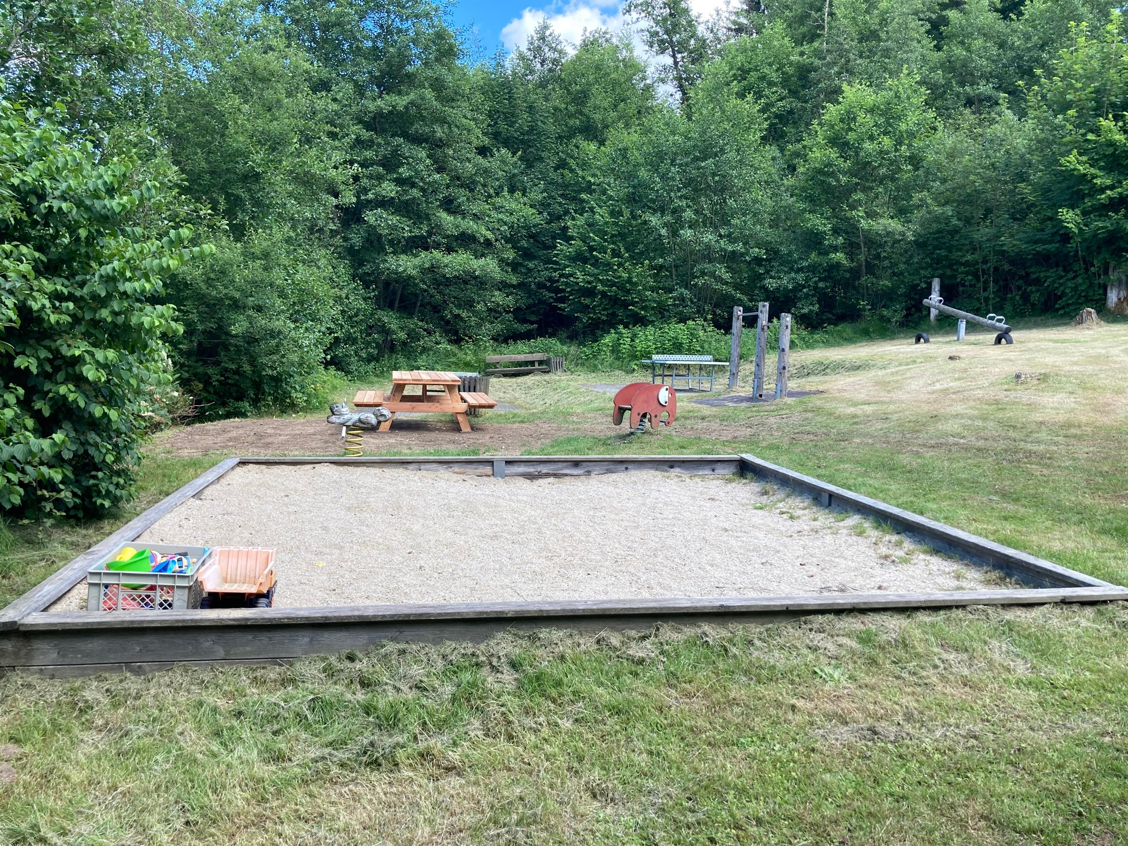 Sie wohnen in einem großzügig eingerichteten Ferienhaus mit ca. 74 m² Wohnfläche. Es sind zwei Schlafzimmer vorhanden, eins mit Doppelbett (bei Bedarf inkl. Babyreisebett), eins mit zwei Einzelbetten und einer zusätzlichen Schlafgalerie für Kinder. Ein offener Wohn-/Essbereich mit voll ausgestatteter Küche steht zur Verfügung. Ein Kaminofen im Wohnzimmer sorgt an kalten Tagen für angenehme Wärme. Im Wohnzimmer steht ein Fernsehgerät (mit Sky-TV) inkl. Spielekonsole für Sie bereit. Im Kinderzimmer finden Sie neben einem Fernseher auch Gesellschaftsspiele und Puzzle für alle Altersgruppen. Im Badezimmer befindet sich eine ebenerdige Dusche sowie zwei Waschbecken, eine Toilette und eine Waschmaschine. Des weiteren gibt es ein separates WC mit Waschbecken. Die Terrasse mit angrenzendem Rasenstück lädt bei schönem Wetter zum Verweilen ein. Gartenmöbel und Grillgerät stehen bereit, eine Markise spendet bei Bedarf Schatten. Hunde sind bei uns willkommen. Näpfe sind vorhanden. Auf dem Gelände befindet sich ein Spielplatz mit Tischtennisplatten.