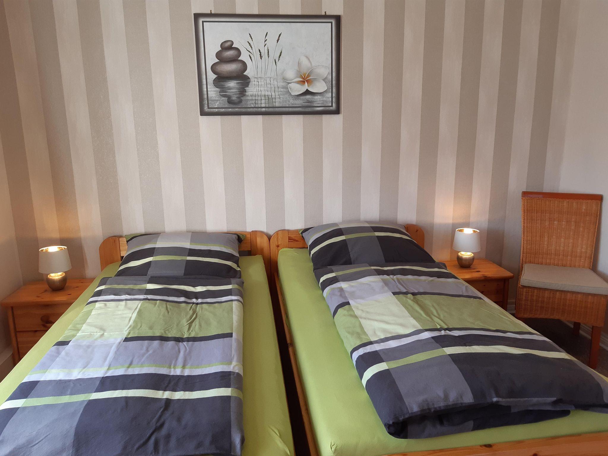 Die Ferienwohnung, 90 m², für zwei bis sechs Personen, verfügt über zwei bzw. drei separate Schlafzimmer, Wohnzimmer mit SAT-TV, eine komplett eingerichtete Küche mit Geschirrspüler, Bad mit Dusche/WC und Waschmaschine sowie einem Gäste-WC. Bettwäsche und Handtücher sind inklusive.