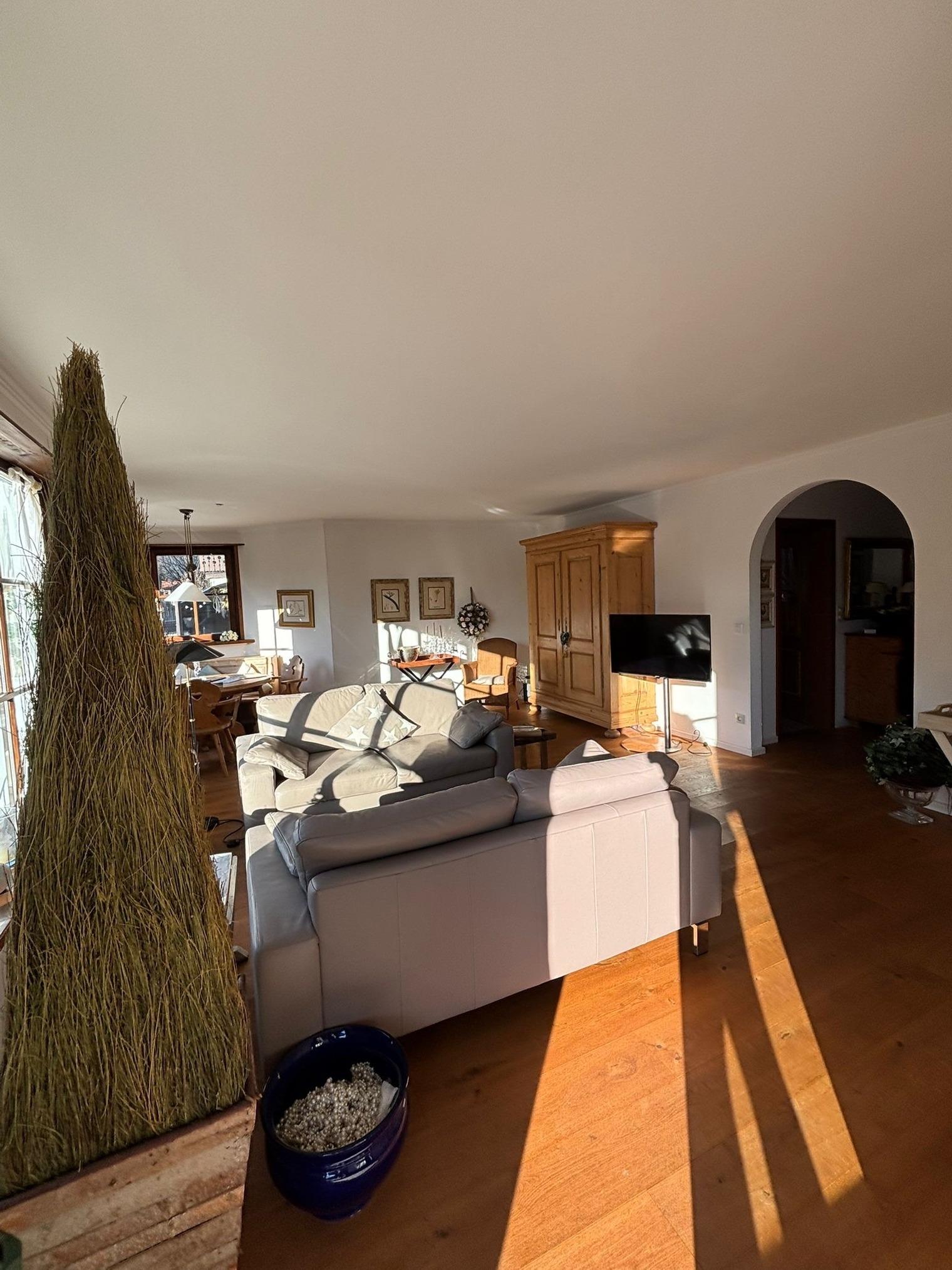 Großzügige 125 m² Ferienwohnung auf zwei Ebenen mit zwei Schlafzimmern, zwei modernen Bädern, voll ausgestatteter Küche und hellem Wohnbereich. Highlight ist die über 70 m² große Terrasse mit Gartenblick. Ruhige Lage in Farchant, nahe GAP, Wanderwegen und Alpen-Highlights.