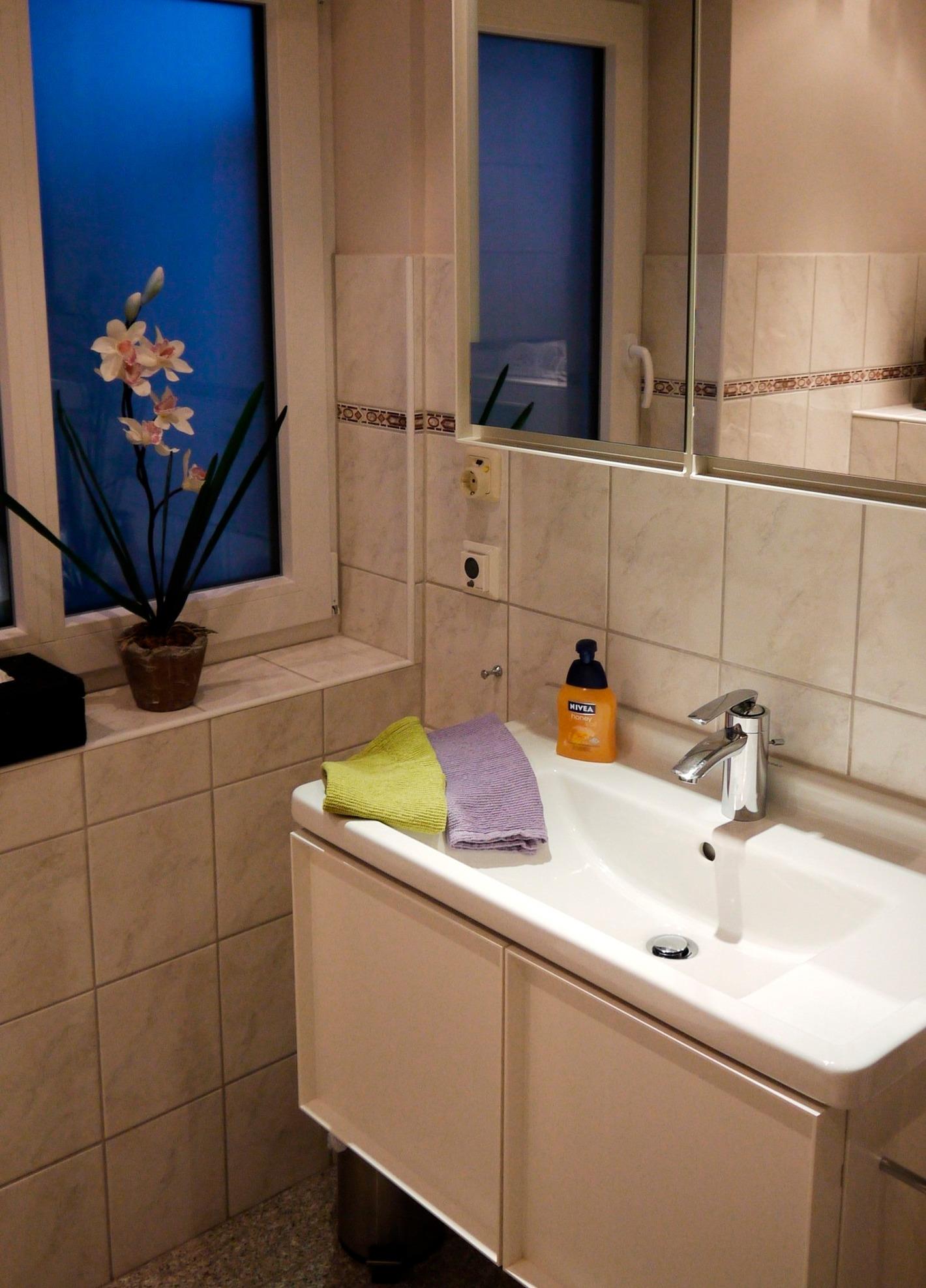 Neues (2025) großzügiges Duschbad, Fußbodenheizung, Handtuchwärmer, Fön