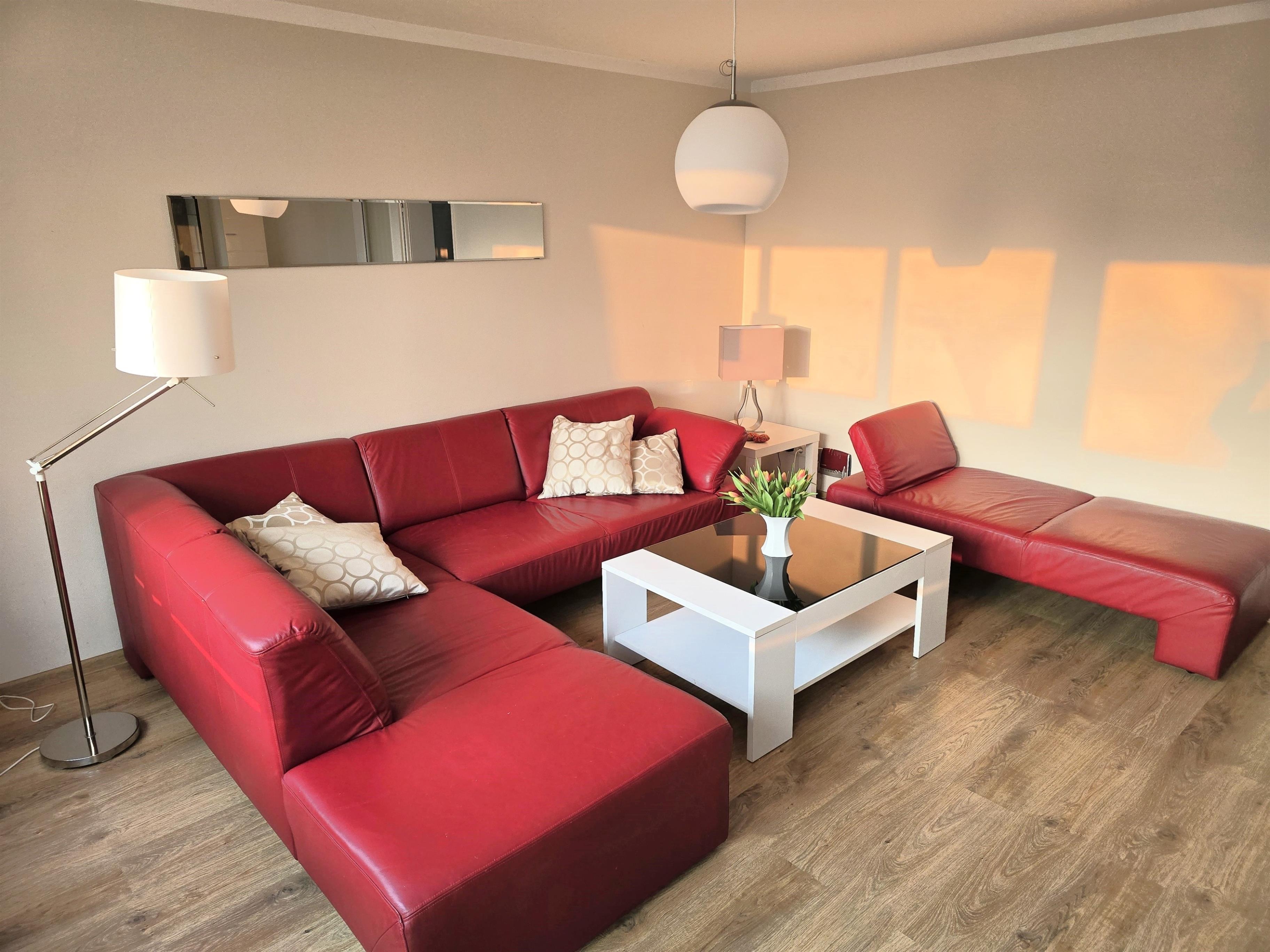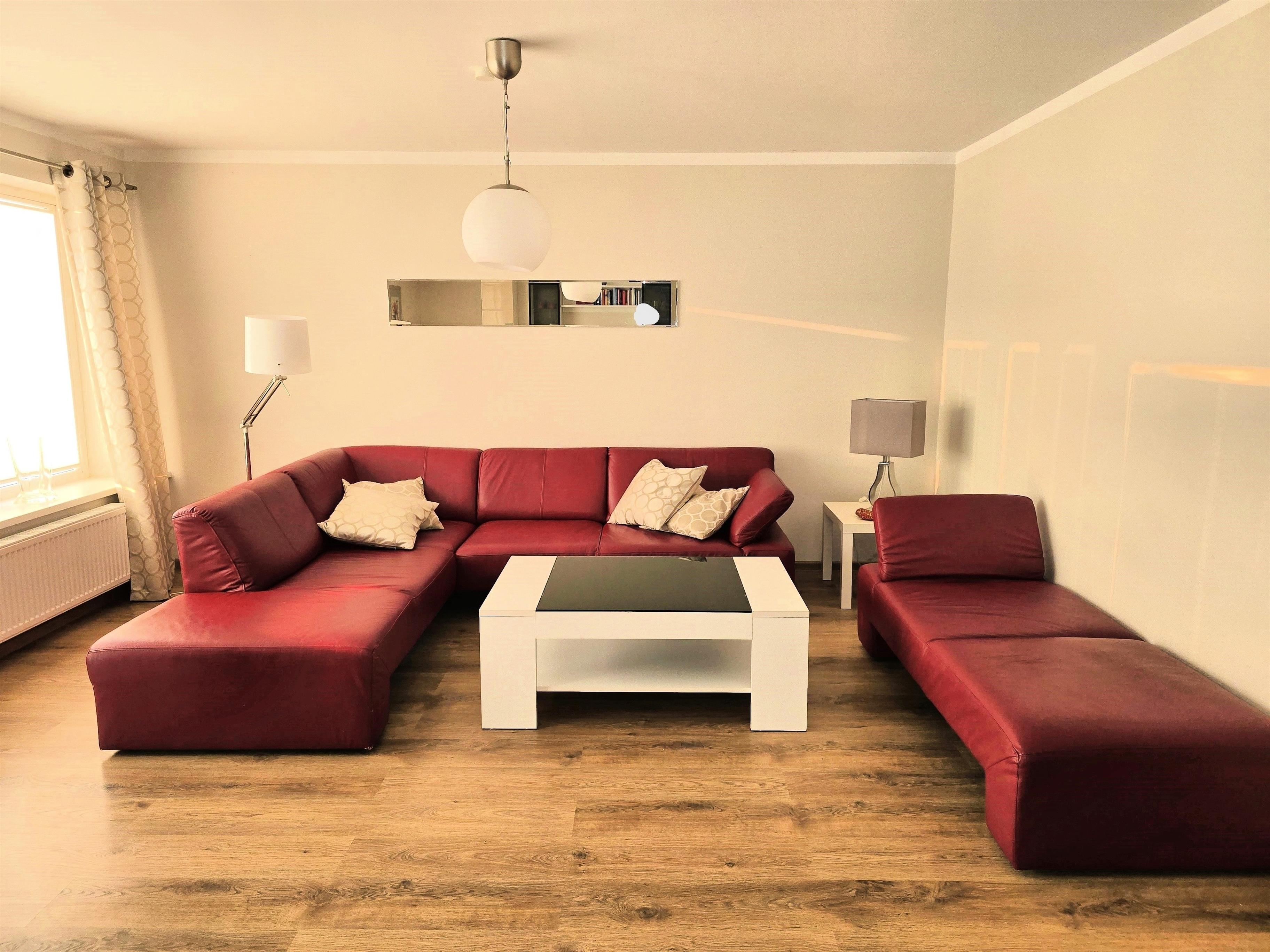 Die ca. 90 m²große Wohnung befindet sich im Erdgeschoss und verfügt über ein großes Wohnzimmer mit direktem Zugang zur Terrasse und dem eingezäunten Garten (Gemeinschaftsgarten).