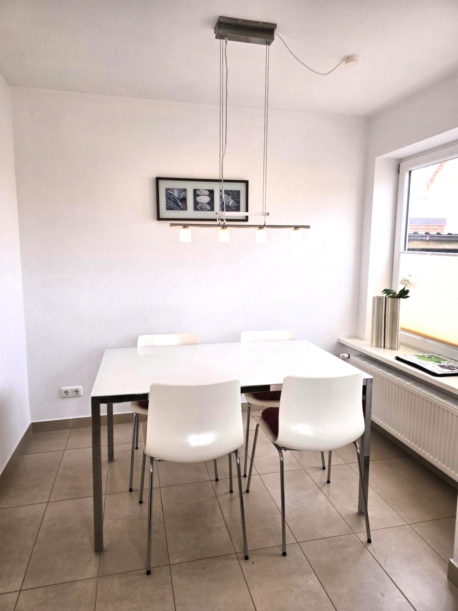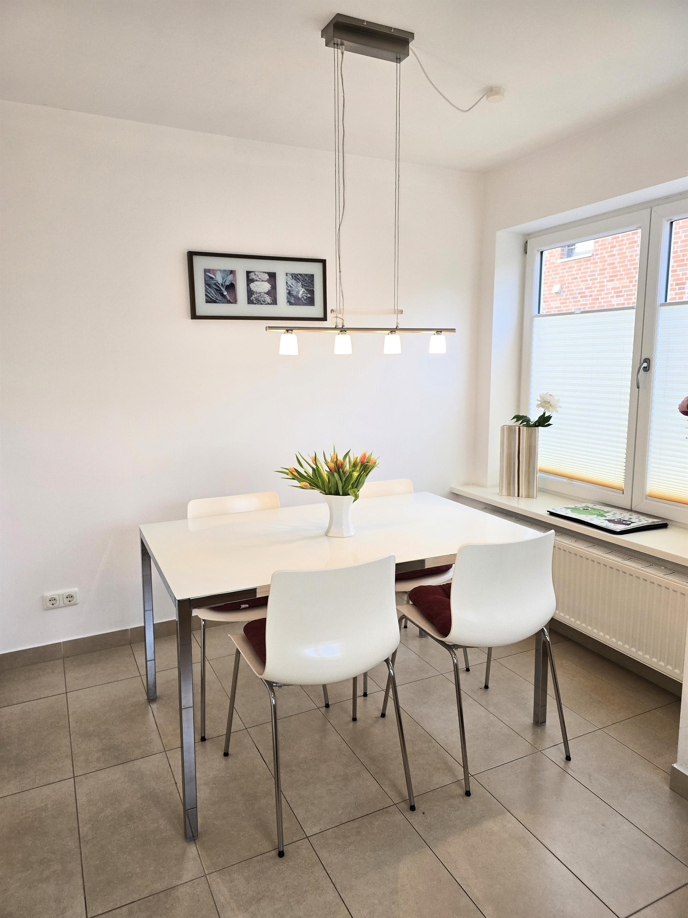 Die separate Küche ist ausgestattet mit einem Ceran-Kochfeld, Backofen, Mikrowelle, Kühlschrank mit Gefrierfach und einem Geschirrspüler. Hier befindet sich auch der Essplatz mit 4 Stühlen.