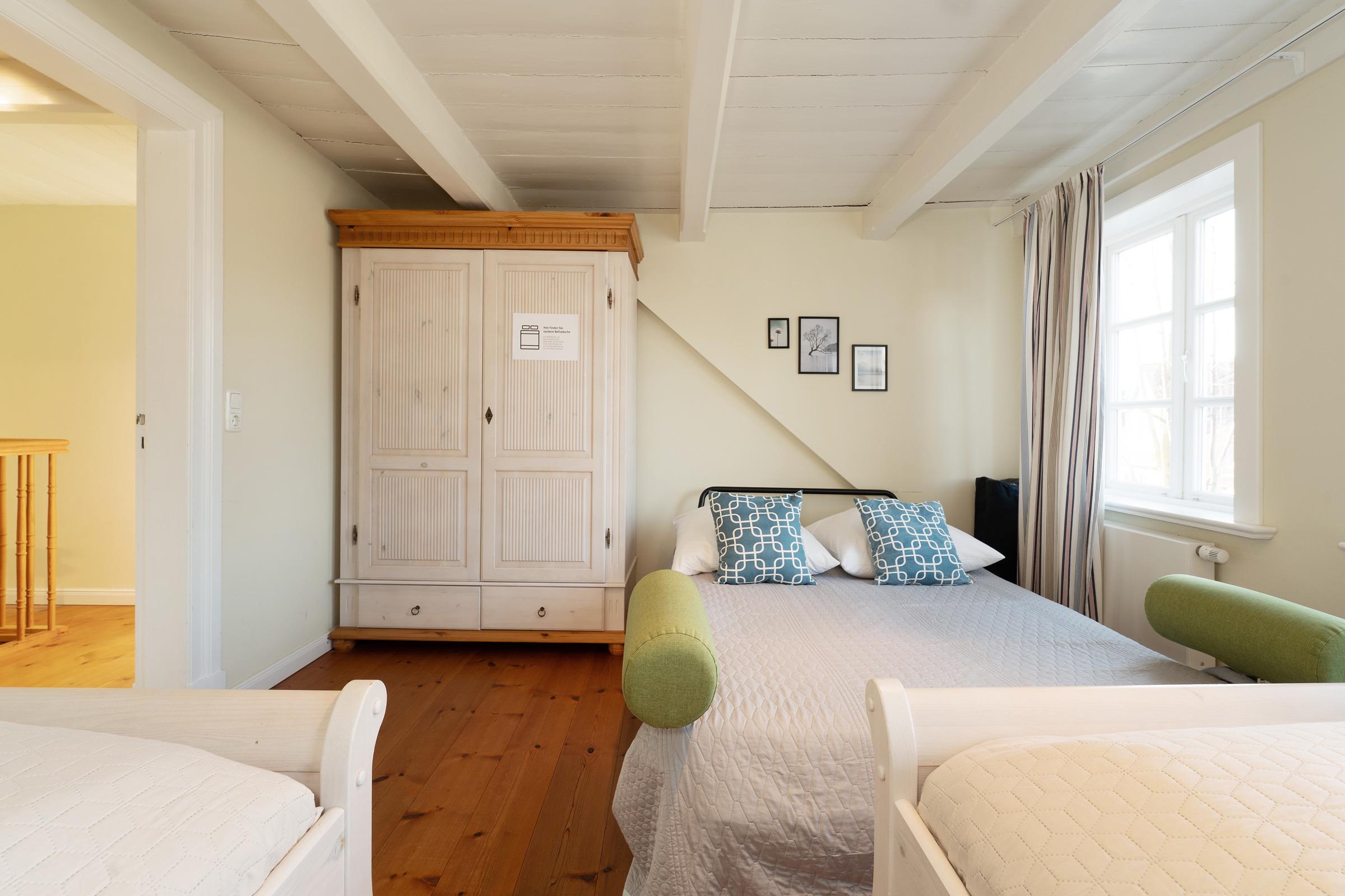 Schlafzimmer 1: 2x Einzelbett (80 x 200 cm), 1x Schlafsofa (140 x 200 cm), Kleiderschrank, Verdunkelung: Vorhänge, Platz für ein Babybett vorhanden