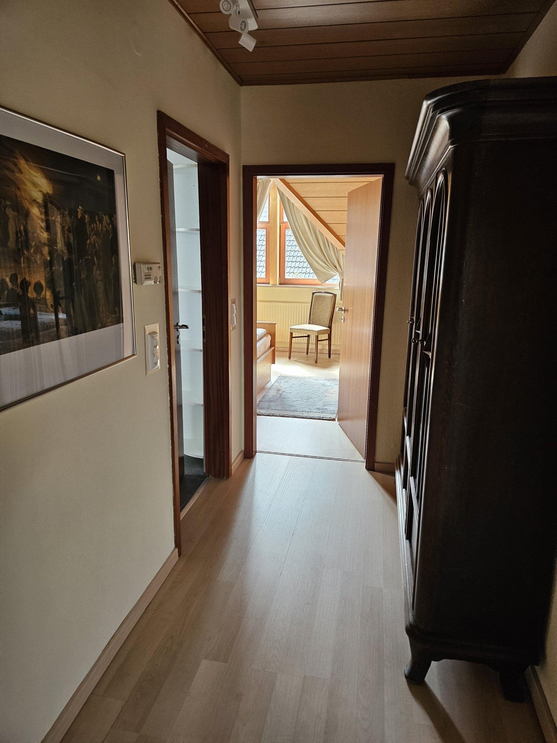 Die Ferienwohnung befindet sich im Obergeschoss eines repräsentativen Zweifamilienhauses, der Gastgeber bewohnt selbst die Wohnung im Erdgeschoß.