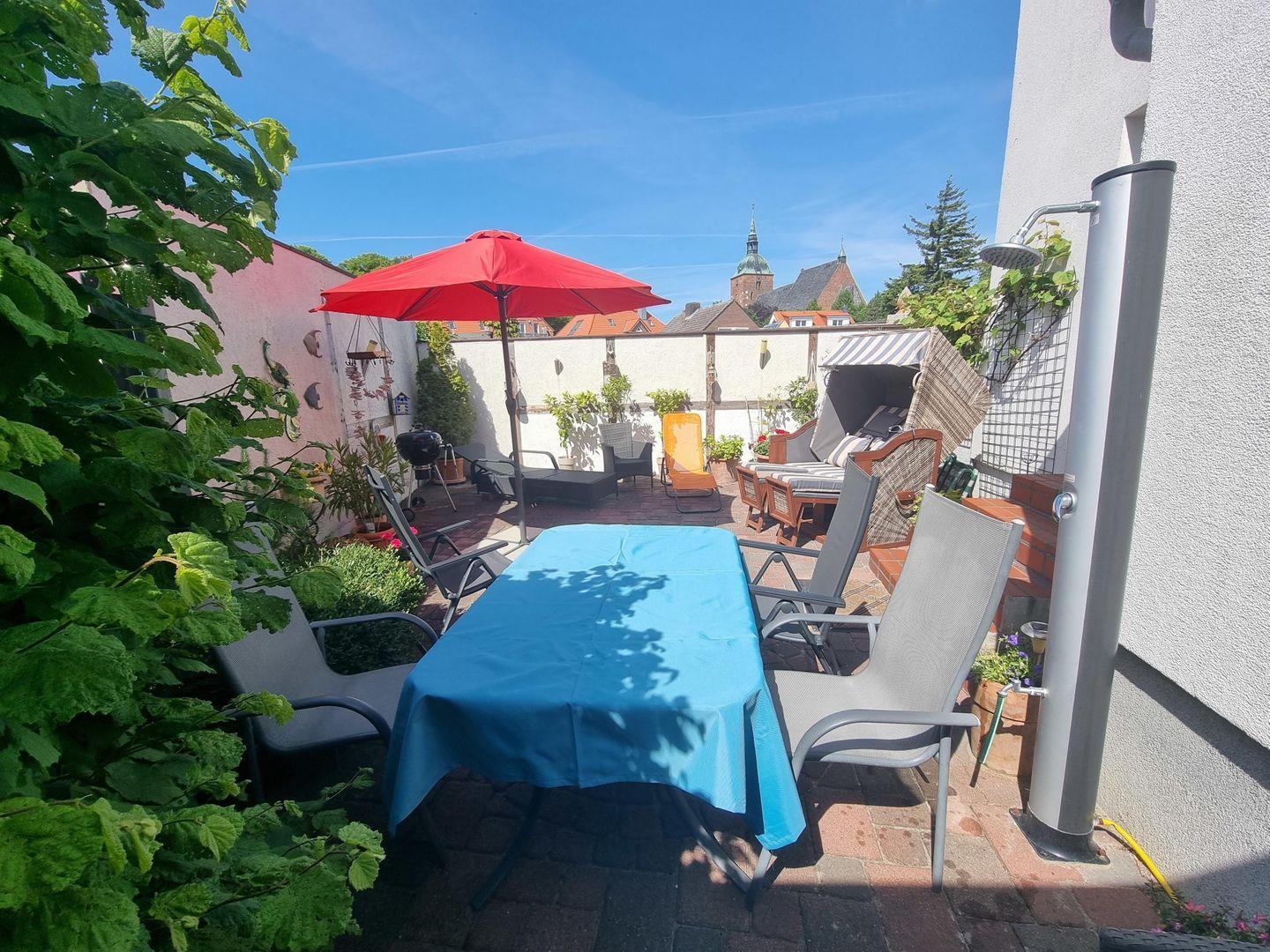 Das ca. 400 m² große Grundstück mit Frühstücksterrasse und einer weiteren möblierten Terrasse und gepflegtem Garten mit einer Sauna (gegen Gebühr 10,-€ für 2 Stunden) in Süd-West-Ausrichtung steht Ihnen für die alleinige Nutzung zur Verfügung und lädt zu Sonnenbaden, Spielen mit den Kindern und Verweilen im Strandkorb ein. Am Hinterhaus befinden sich zwei kostenfreie PKW-Stellplätze. Ihre Fahrräder können Sie in der Garage abstellen. Im offen gestalteten Wohnbereich mit großer Relax-Couch, Kaminofen, schwenkbarem Flat-TV und Blick in die offene Küche und den Garten ist Entspannung und Wohlfühlen garantiert.