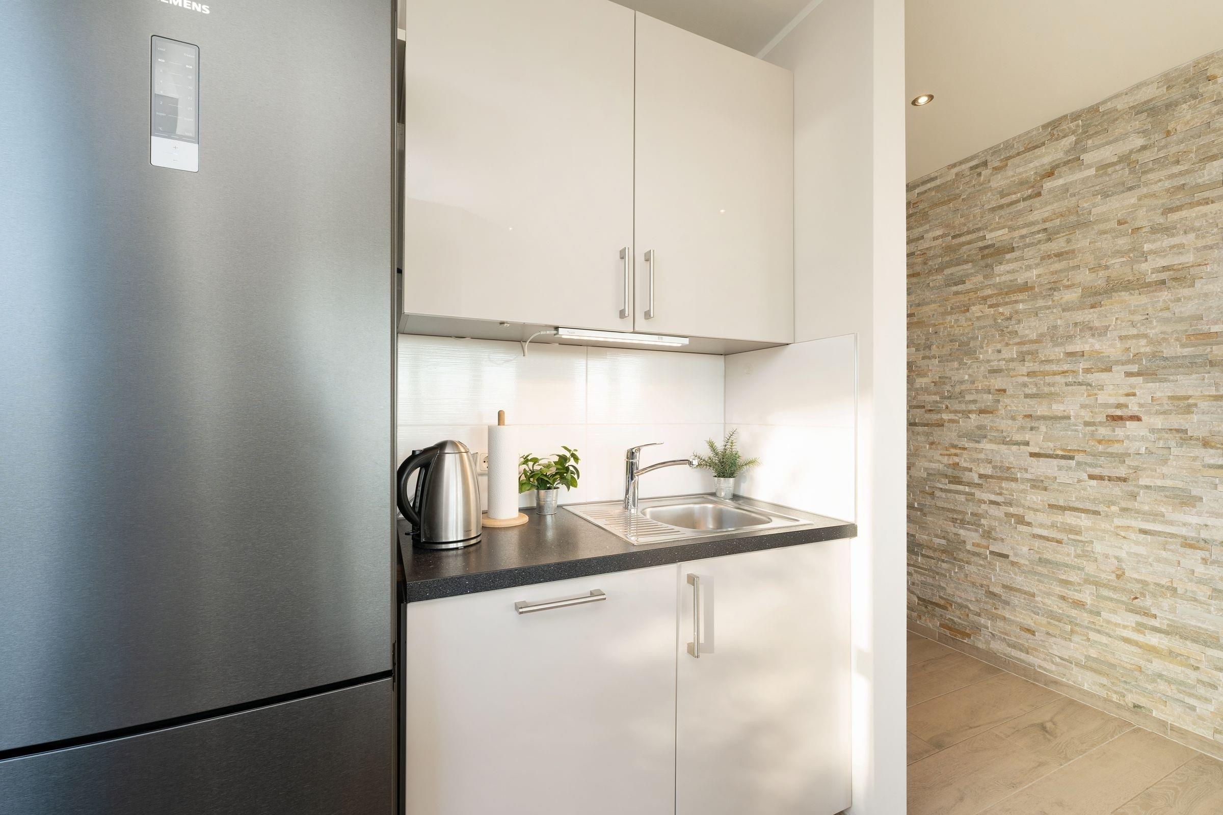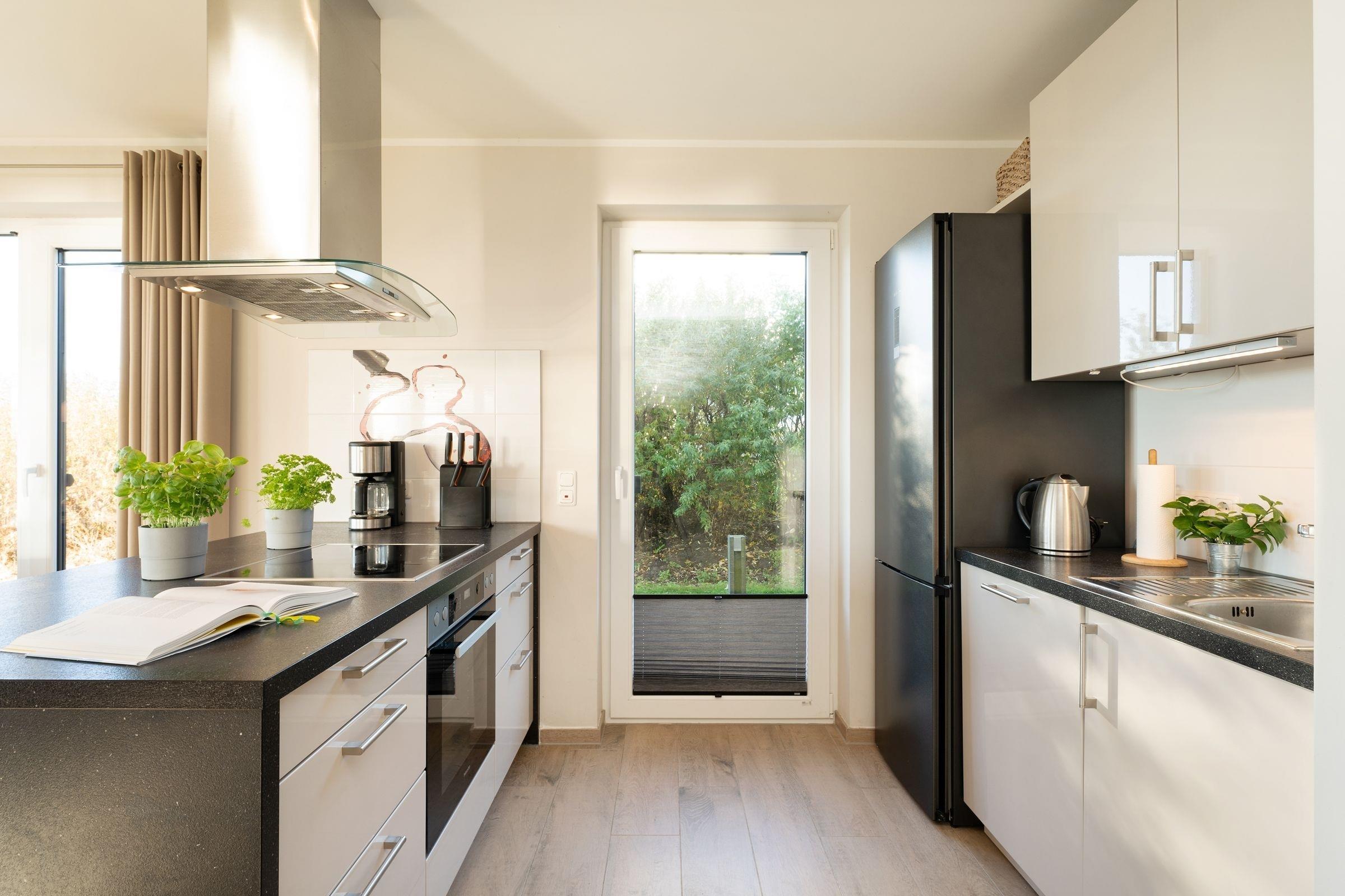 Die gehobene Ausstattung des Objekts wird Sie sofort begeistern. Der helle Wohnbereich bietet einen tollen Blick auf die Ostsee. Gemütliche Ledermöbel laden hier zum Verweilen ein. Das Highlight ist sicher die große teilweise überdachte Terrasse. Auch von hier haben Sie einen tollen Blick auf die Ostsee und das Wahrzeichen der Insel Fehmarn: die Fehmarnsundbrücke. Hier können Sie perfekt bei einem guten Frühstück in den Tag starten, die Mittagsstunden auf der Sonnenliege verbringen oder abends den Sonnenuntergang bewundern. Die zum Wohnbereich hin offene Küche mit angrenzendem Essbereich lässt durch ihre sehr gute Ausstattung beim Kochen keine Wünsche offen. Die beiden modern eingerichteten Schlafzimmer, eins mit einem Doppelbett und TV-Gerät, das andere mit zwei Einzelbetten, bieten den entsprechenden Wohlfühlfaktor zum Erholen nach ereignisreichen Urlaubstagen. Das großzügige Bad ist mit einer bodengleichen Dusche ausgestattet. Ein großes Fenster sorgt für Tageslicht und damit einen sonnigen Start in den Tag. Eine kleine Sauna steht Ihnen ebenfalls in der Unterkunft zur Verfügung. Die Wohnung ist mit Fußbodenheizung ausgestattet und komplett gefliest.