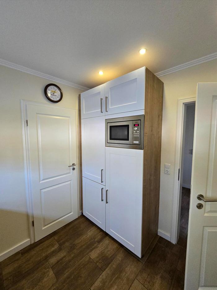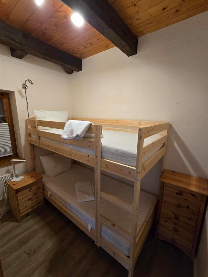 Im Erdgeschoß befindet sich ein Gäste-WC mit Waschmaschine und Trockner, ein Kinderzimmer mit Etagenbett, die vollwertig ausgestattete Küche und im großen Wohn-Esszimmer befindet sich der Kamin für gemütliche Abende, sowie der Ausgang zur Terrasse und in den Garten.