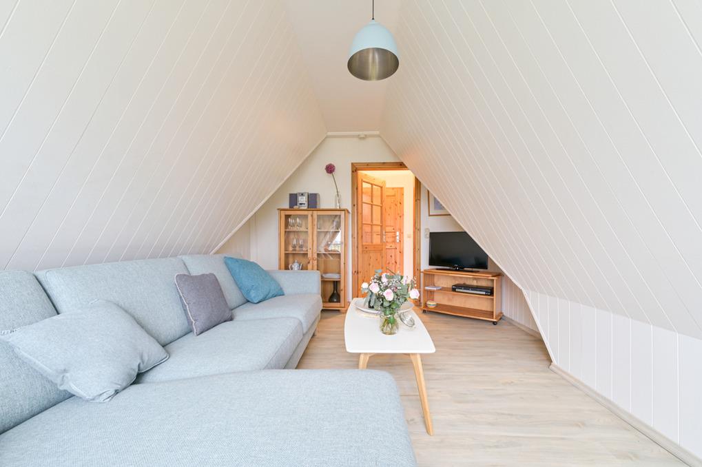 Diese Ferienwohnung liegt im Obergeschoss des Ferienhauses Nr. 3 und hat eine Grösse von 60 qm.