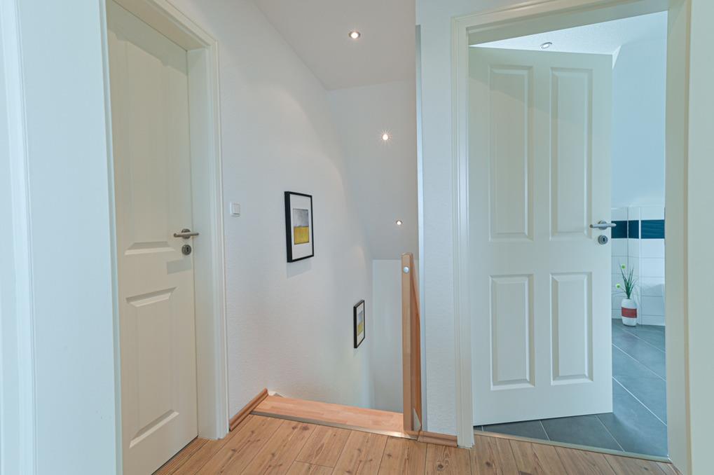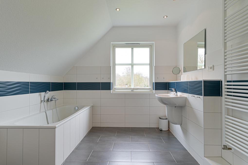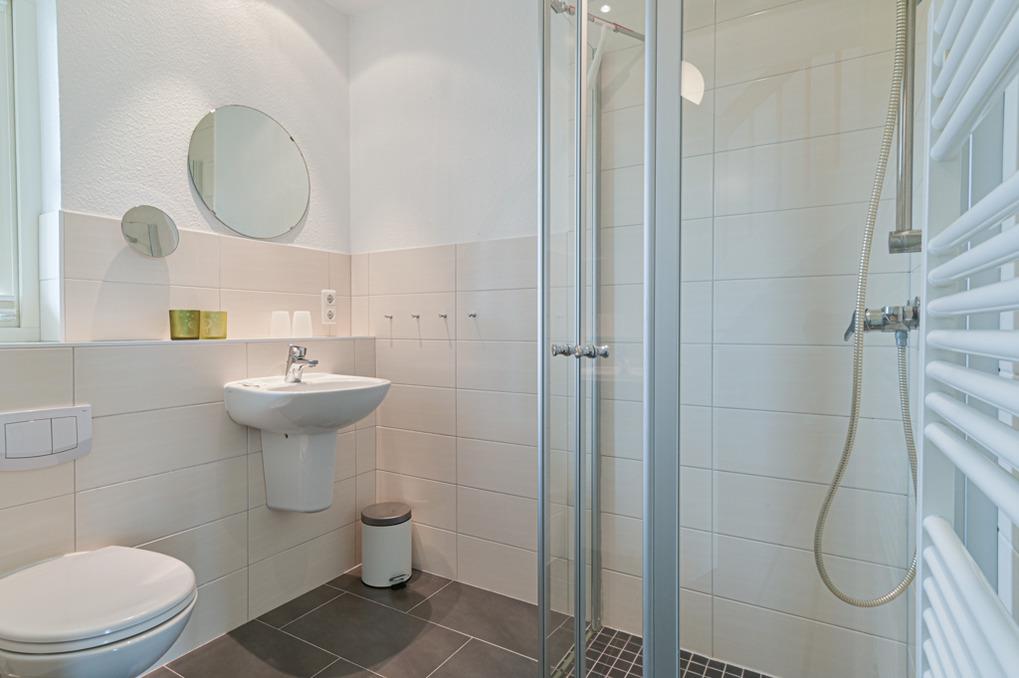 Ein großes Vollbad mit Badewanne und Dusche befindet sich ebenfalls im Obergeschoss nahe der Schlafräume und ein Duschbad im Erdgeschoss.