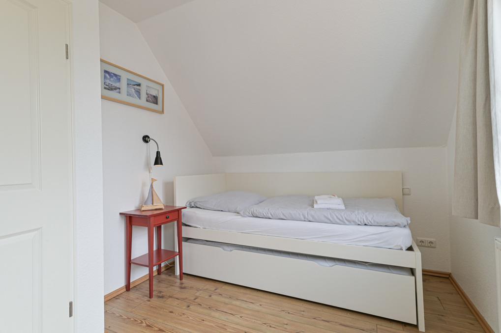 Es sind drei Schlafräume mit 6 Betten vorhanden, aber auch ein Bett für eine weitere Person findet noch Platz.