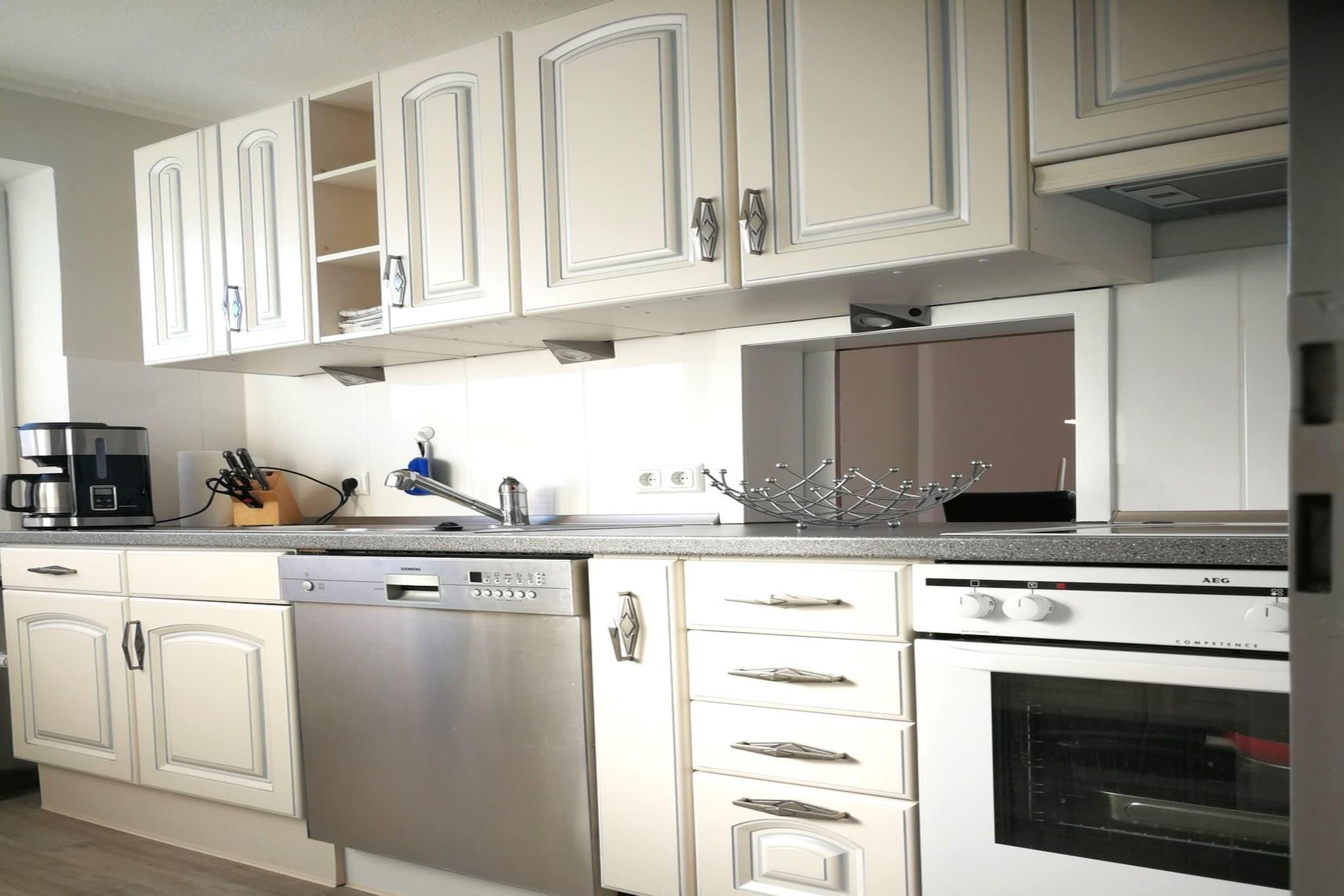 Denne koselige leiligheten i 1. etasje i Landkirchen ligger kun 5 km fra havet og stranden, og tilbyr en praktisk og fredelig base for familier eller små grupper. Stuen/spisestuen har TV, sittegruppe og spisebord, mens det fullt utstyrte kjøkkenet har kaffemaskin, stekeovn, mikrobølgeovn, oppvaskmaskin og kjøleskap – perfekt for enkel selvhusholdning. Soveopplegg inkluderer et dobbeltrom og et tomannsrom, supplert med et moderne bad med dusj, toalett og hårføner, pluss et ekstra gjestetoalett for ekstra bekvemmelighet. En barneseng og barnestol er tilgjengelig, noe som gjør den ideell for unge familier. Utenfor kan du nyte terrassen, hagen med møbler og BBQ-oppsett, sammen med parkering på stedet. Med restauranter og generelle forsyninger bare 1 km unna, og attraksjoner som Fehmarn Aquarium (10 km), fyret (11 km) og fergehavnen (7,4 km) innen rekkevidde, blander denne beliggenheten landlig ro med kysttilgang.