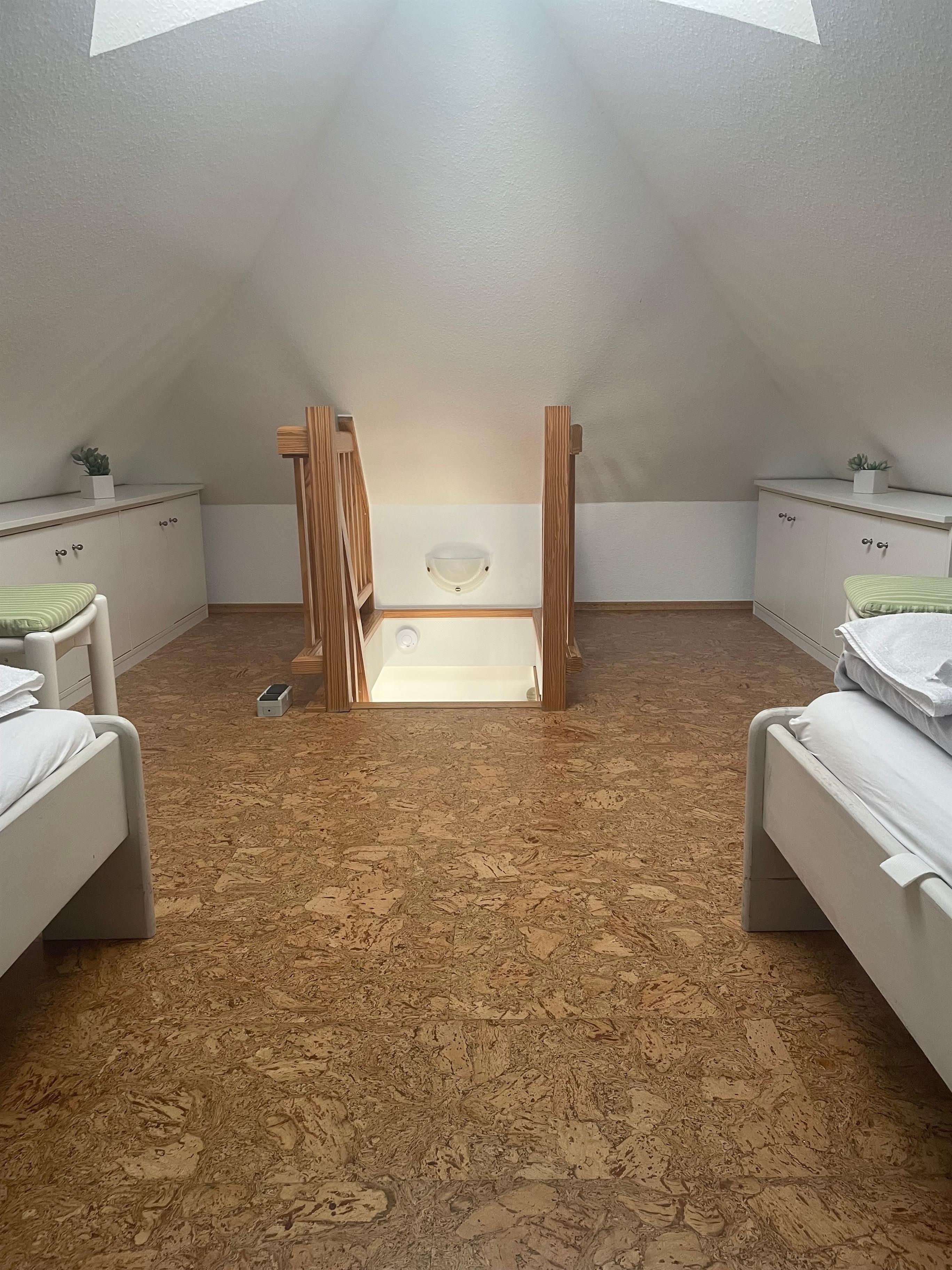 für bis zu 4 Personen. Neben dem Balkon mit Aussicht auf den idyllischen Garten besticht es durch das "Turmschlafzimmer".