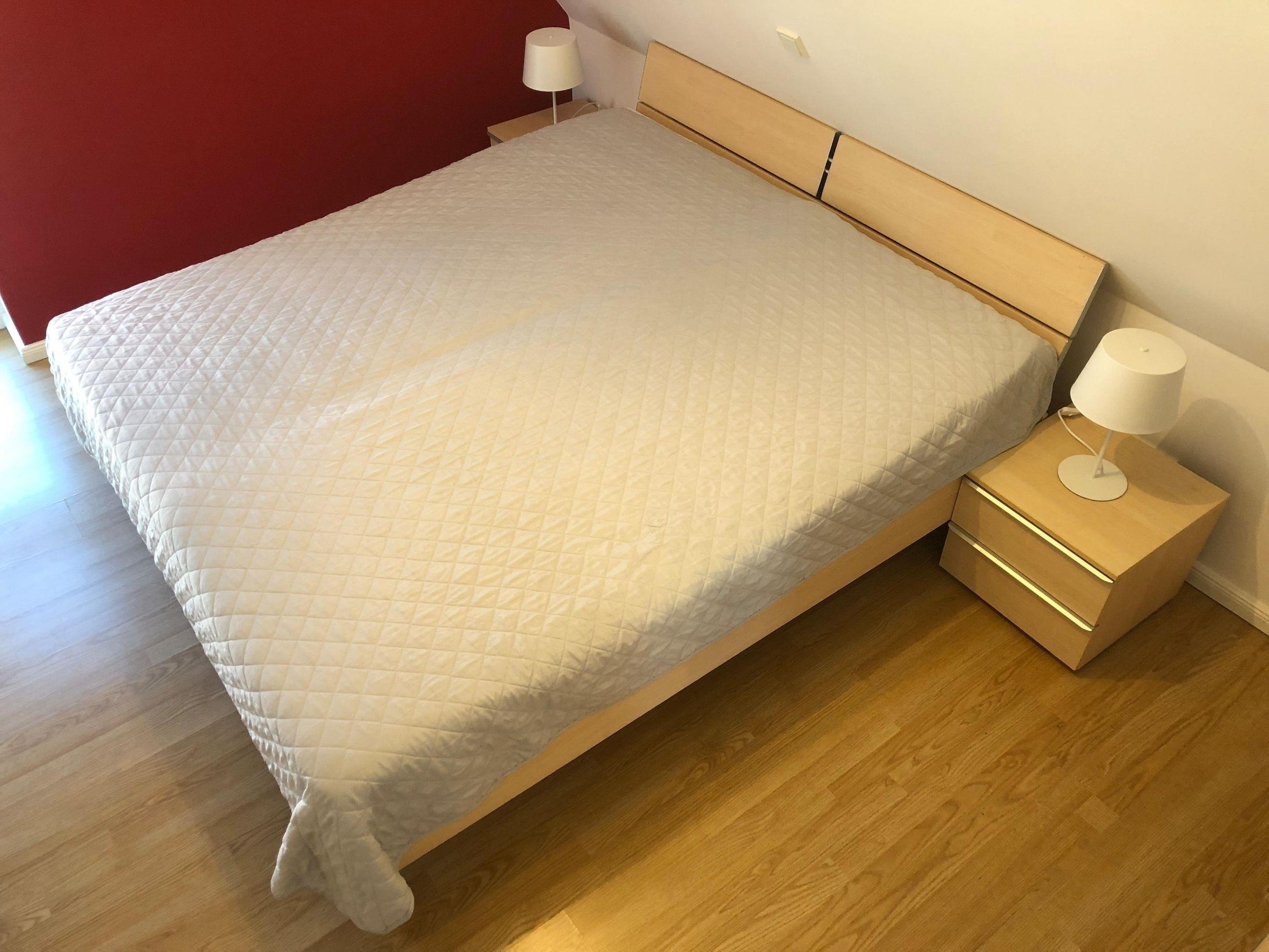 Schlafzimmer 1: 1 Doppelbett, Verdunkelung: Plissee, Kleiderschrank, kein Platz für ein Babybett vorhanden