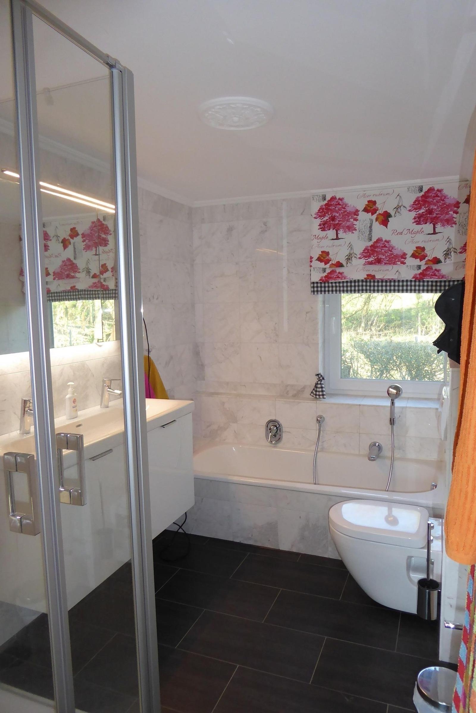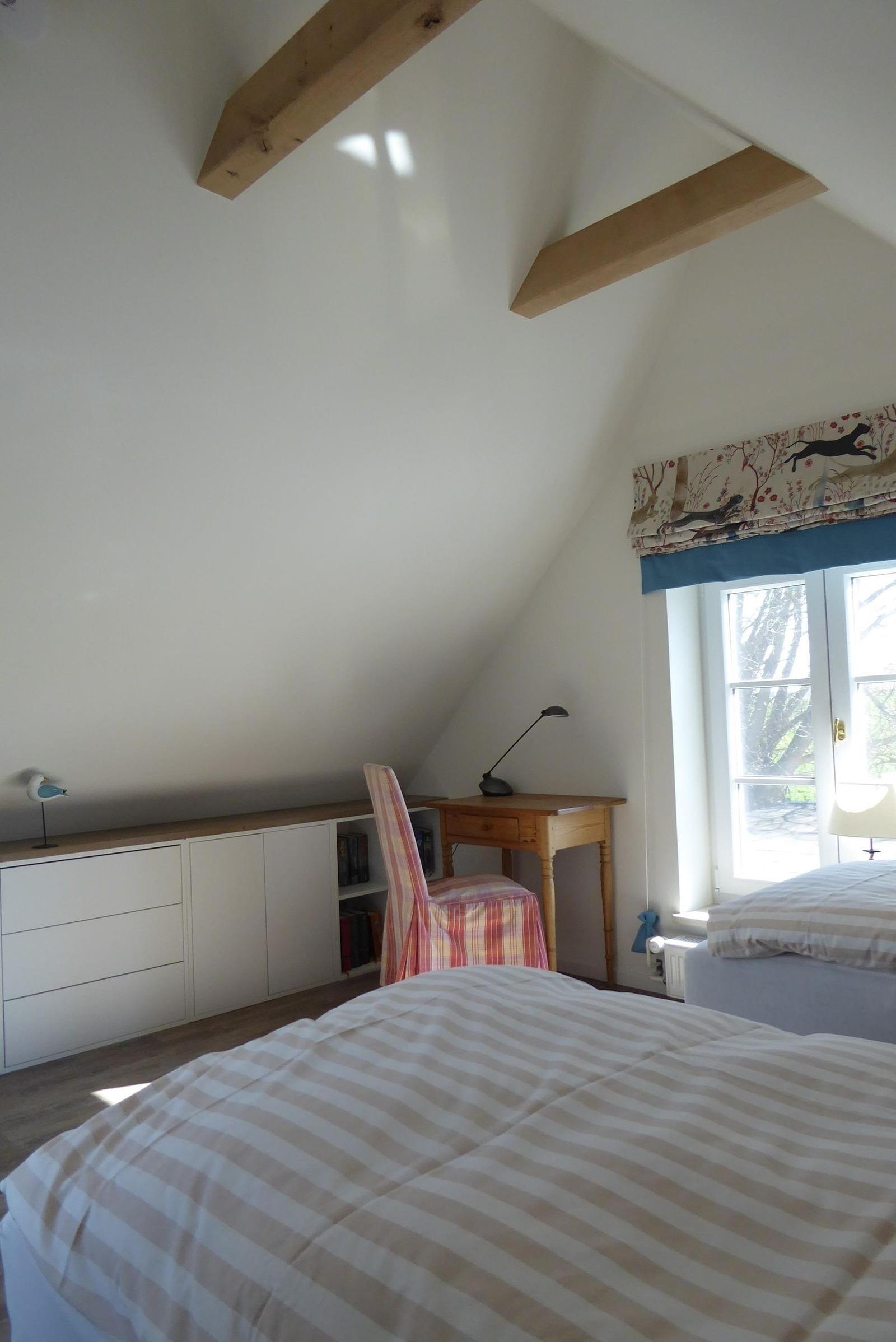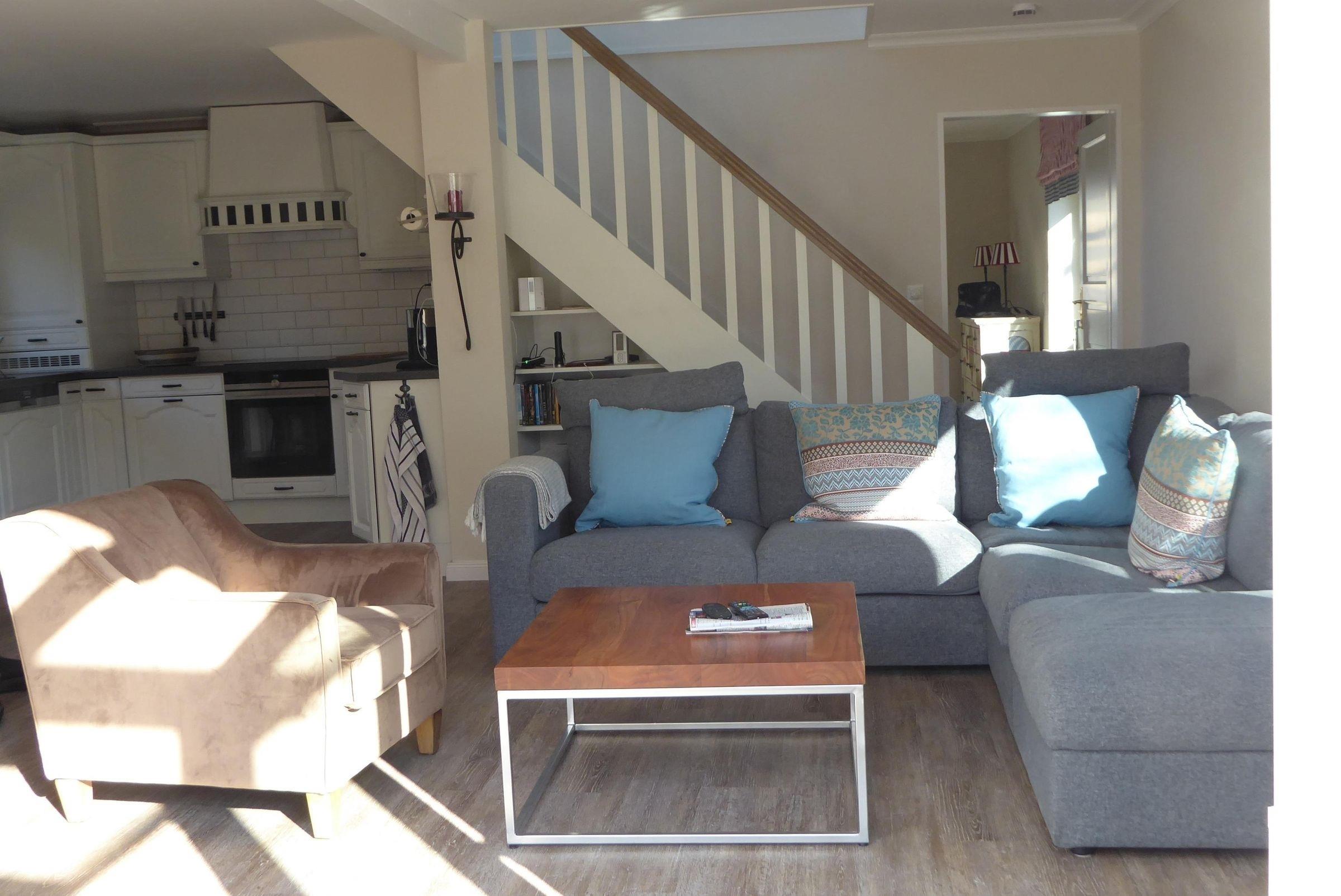 Das großzügige Wohn- und Esszimmer präsentiert sich mit einer gemütlichen Sitzgruppe, Flachbildschirm, DVD, HiFi-Anlage und einem Ausgang nach draußen: Die wind- und sichtgeschützte möblierte Terrasse in Südlage lädt zur Erholung ein. Hier finden Sie eine Feuerschale für kühle Abende sowie einen Grill. Im riesigen eingezäunten Garten stehen gemütliche Sonnenliegen sowie diverses Spielzeug für alle Altersklassen. Die offene Landhausküche ist für Hobbyköche perfekt ausgestattet: Vom Induktionsherd bis zum Raclette- und Fonduegerät finden Sie diverse Extras. Das Duschbad ist modern. Im hellen Dachgeschoss kommen Sie in zwei Schlafzimmern zur Ruhe: Das eine ist ausgestattet mit einem Boxspring-Doppelbett (180x200 cm), das andere mit zwei Boxspring-Einzelbetten (je 90x200 cm). Oben befindet sich ein weiteres Badezimmer. Das Highlight im Obergeschoss ist das Panoramafenster, das per Fernbedienung beschattet werden kann. Alle Fenster sind mit Insektenschutz versehen und es gibt Fußbodenheizung und elektrische Außenrollläden im Erdgeschoss.