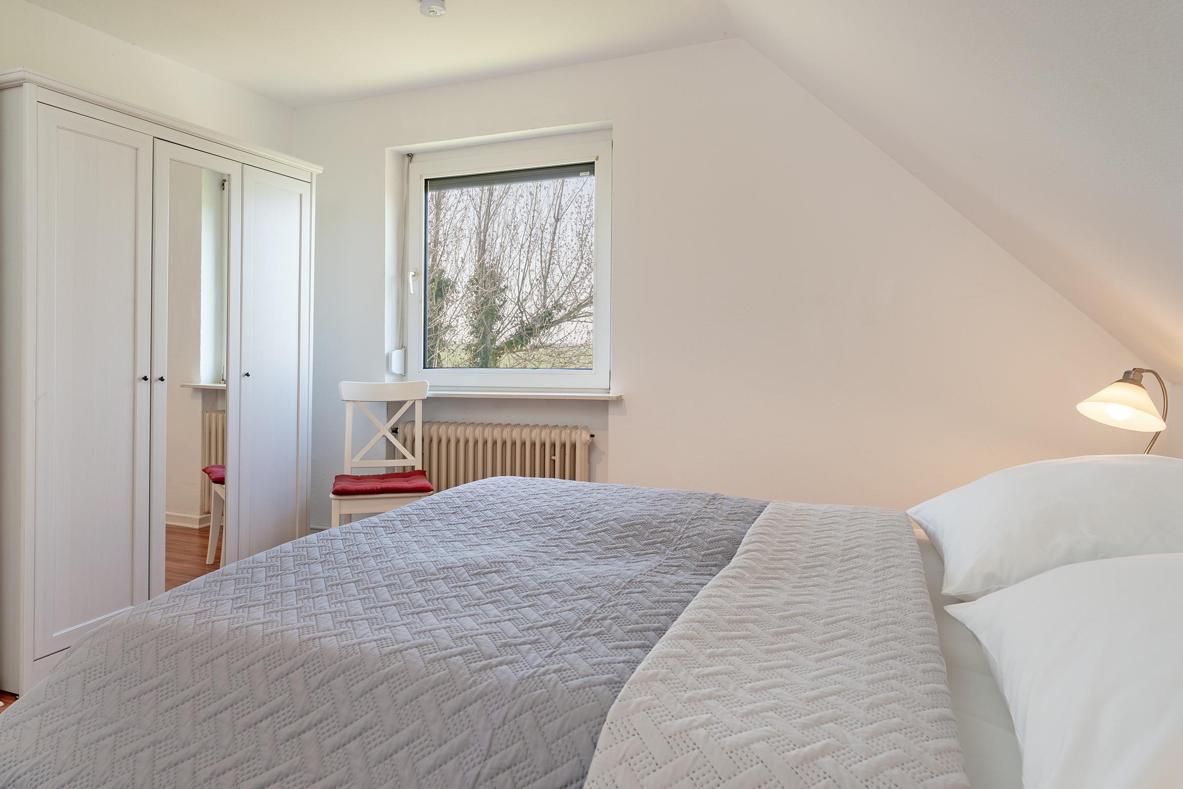 Schlafzimmer: 1 Doppelbett, Kleiderschrank, Verdunkelungsmöglichkeit: Jalousie