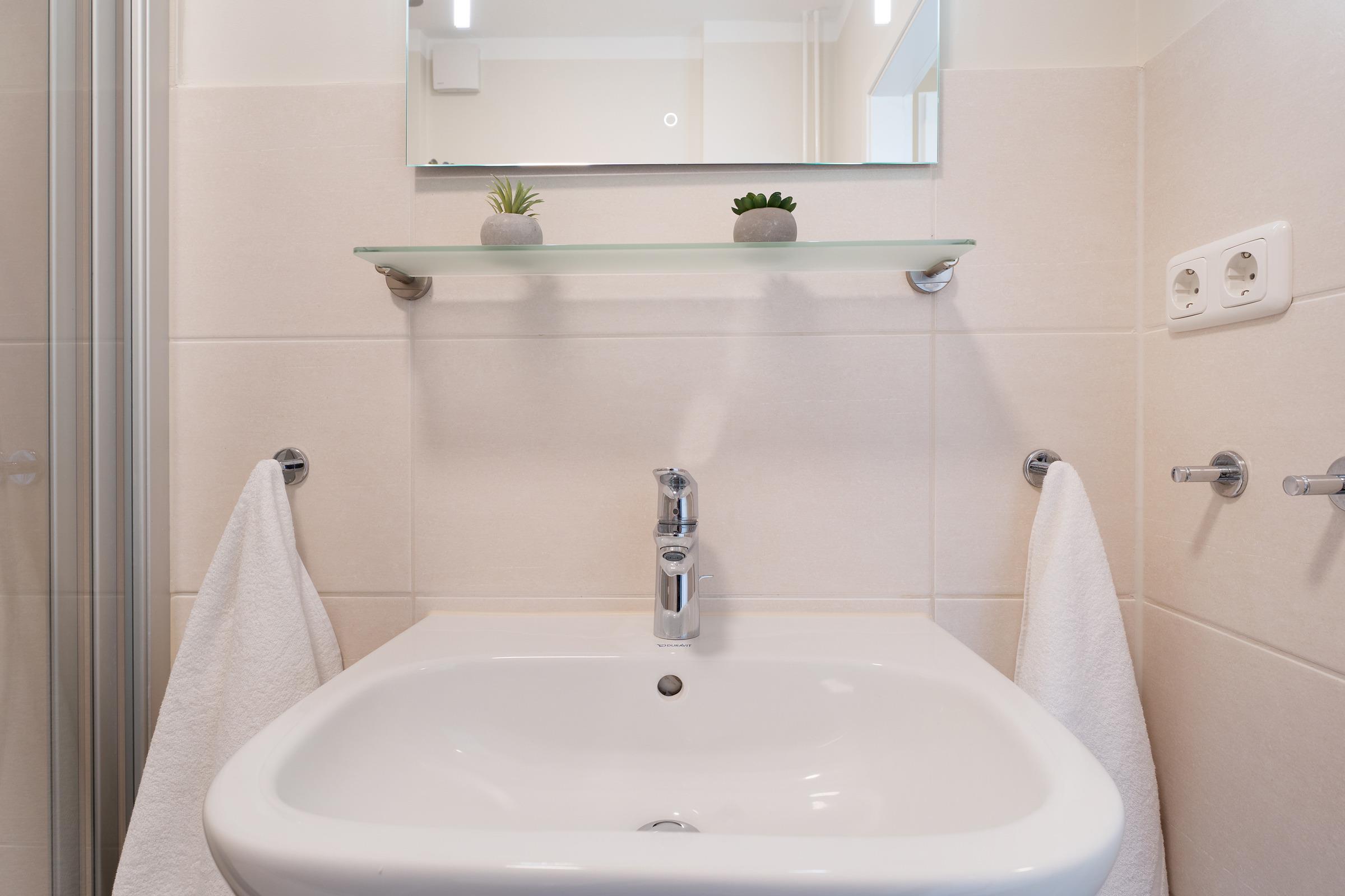 Ein PKW-Stellplatz ist für Sie reserviert. Mitgebrachte Fahrräder können an zahlreichen Fahrradständern vor dem Haus abgestellt werden. Eine Waschmaschine zur gemeinschaftlichen Nutzung befindet sich im Keller.