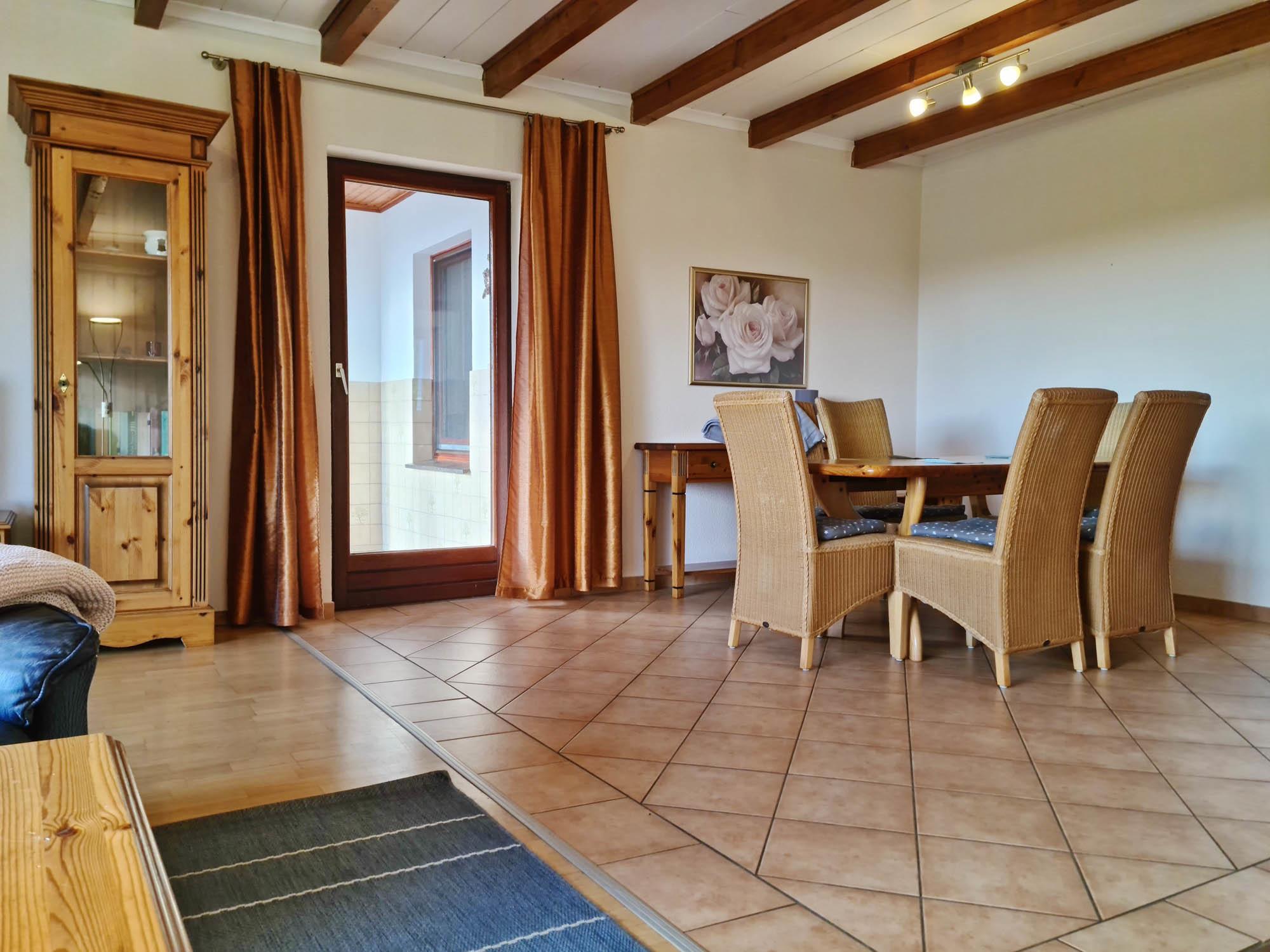 Die Mahlzeiten lassen sich am großen Tisch einnehmen.