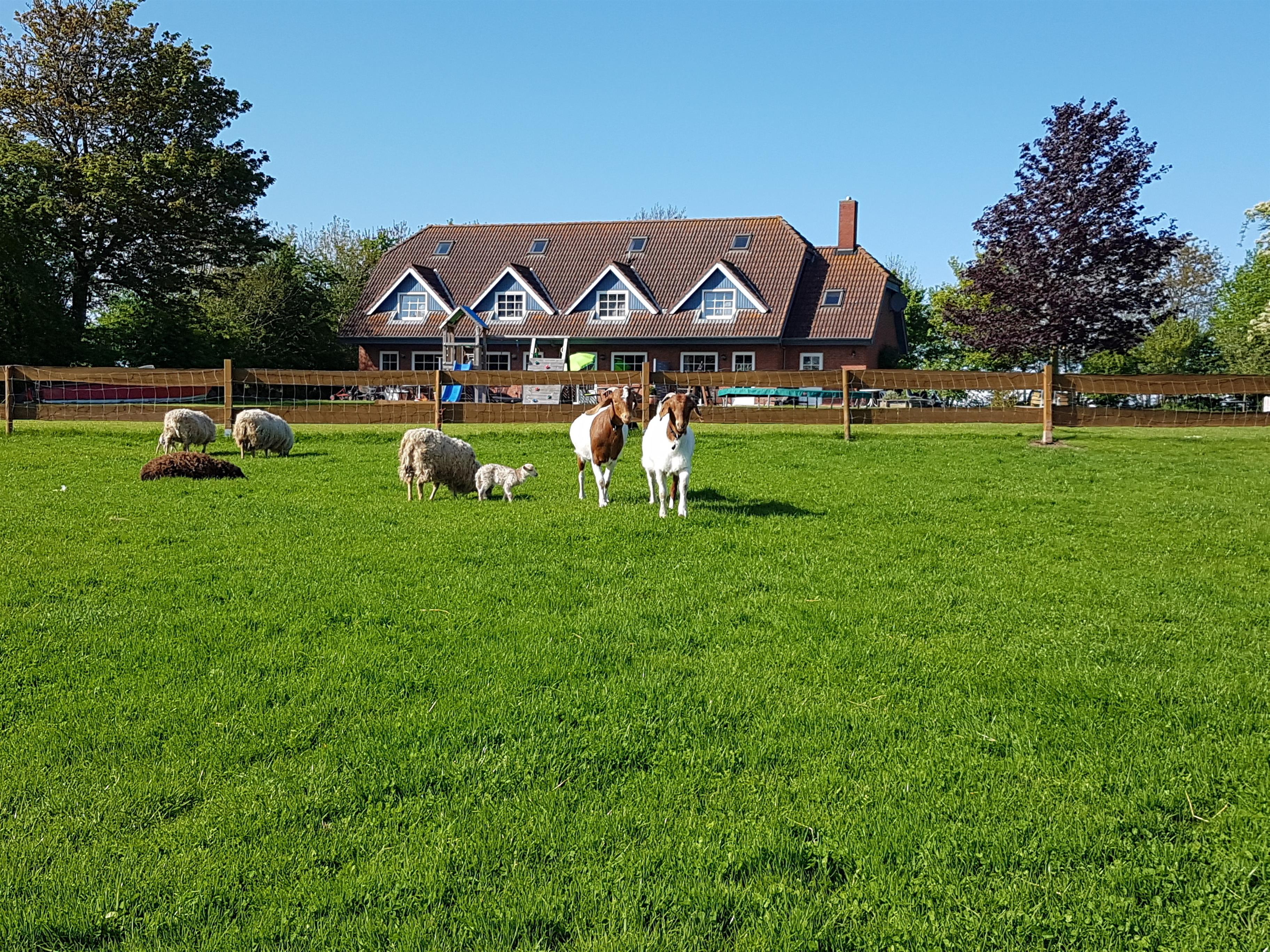 Unser Hof ist sehr ruhig gelegen und umgeben von großen grünen Wiesen. In dieser idyllischen Umgebung fühlen sich ein Pferd, Ponys, Ziegen, Schafe, Meerschweinchen und Kaninchen sehr wohl.