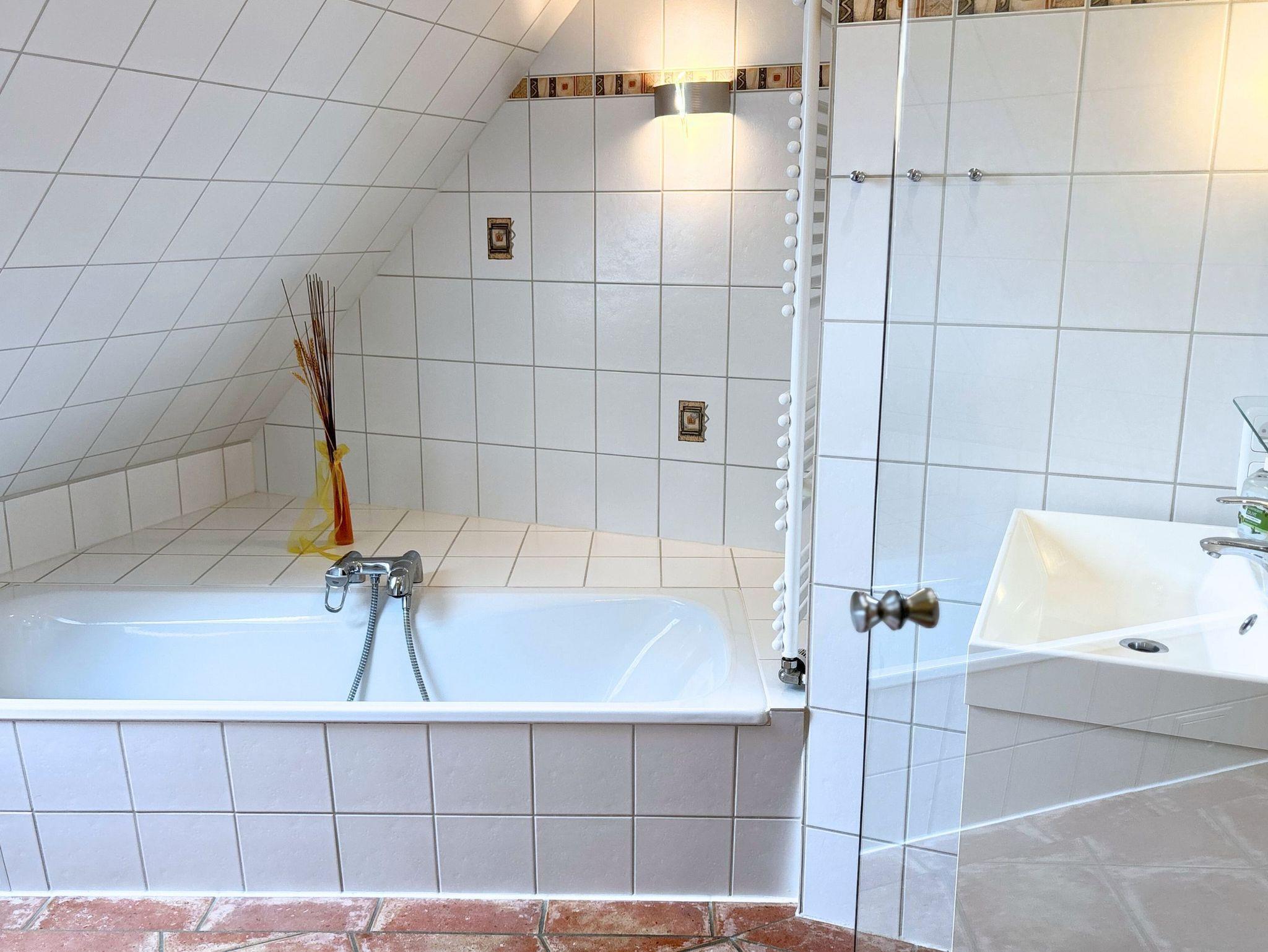 Das Loft ? unsere Luise von der Wiese befindet sich im Obergeschoss der Hofscheune. Die Ferienwohnung ist für bis zu 3 Personen ausgelegt. Besonders einladend ist hier die großzügige Wohnküche ? ein heller Raum mit Sofalandschaft. Es gibt ein Schlafzimmer (Einzelbett und Doppelbett), das über eine kleine Treppe erreichbar sind. Das Badezimmer mit Dusche und Badewanne hat ein Fenster zur Nordseite.