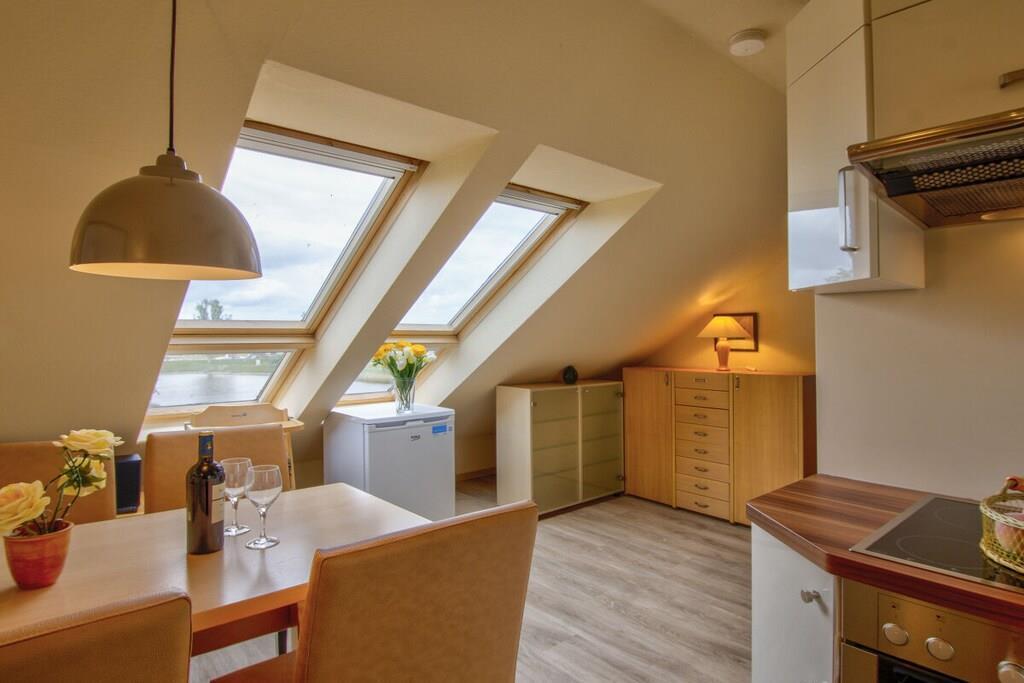 The 50 m² apartment at the swimming pool can accommodate up to 4 people and has a fantastic panoramic sea view of the Burger Binnensee and the Baltic Sea.