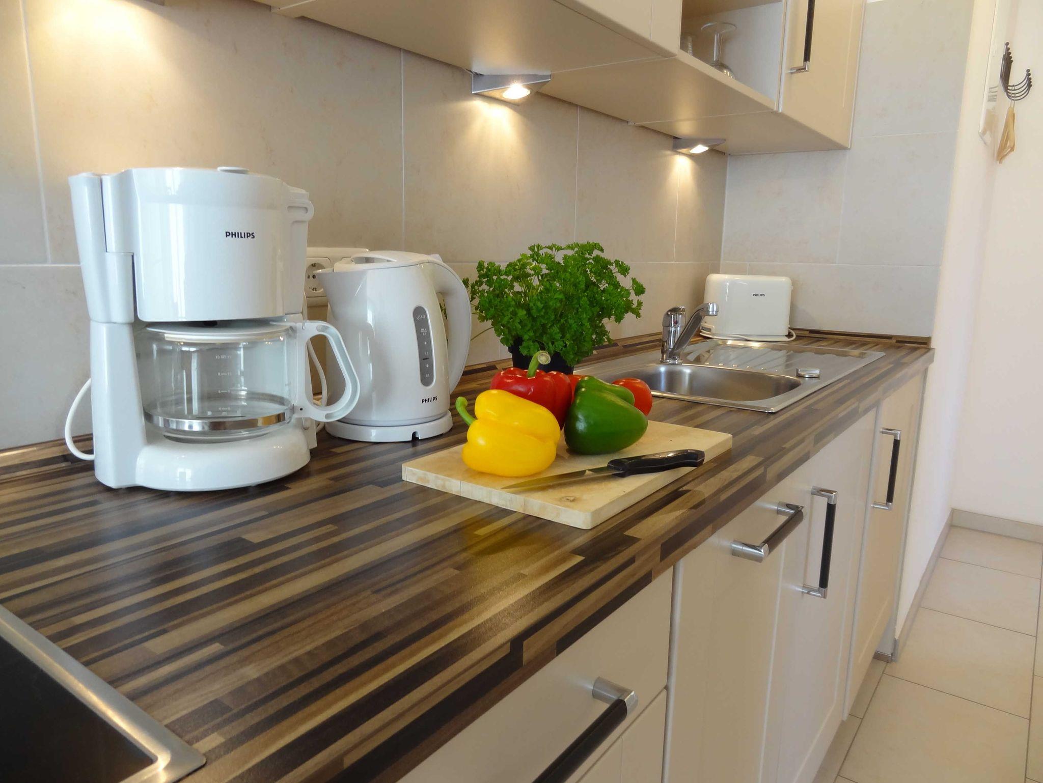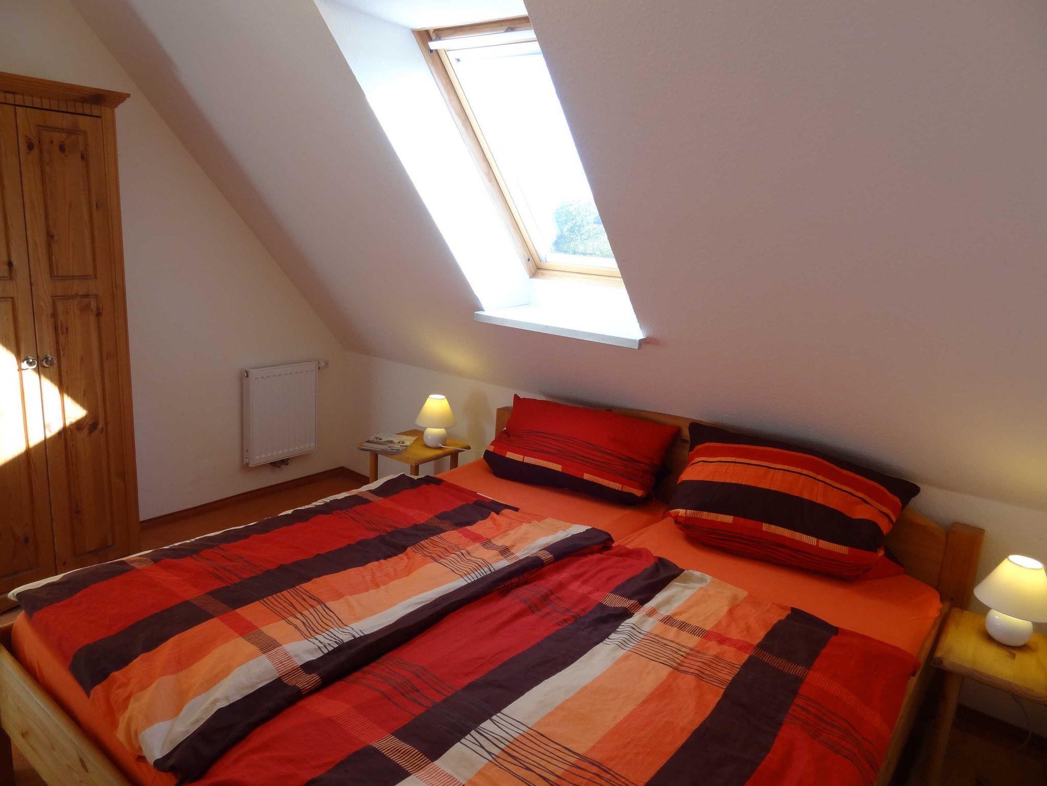 Die Ferienwohnung im Obergeschoss ist mit ca. 44 qm für bis zu 3 Personen ausgelegt und verfügt über einen Wohnraum mit Küchenzeile incl. Spülmaschine, ein Bad mit Dusche und zwei Schlafzimmer. Der große Balkon ist zum Westen ausgerichtet. Sie können von mittags bis abends die Sonne genießen. Weitere Ausstattungsmerkmale: Sat-TV, Telefon kostenlos ( deutsches Festnetz außer Sondernummern ), PC-Anschluss DSL kostenlos, PKW-Stellplatz, Fahrradstellplatz, Waschmaschinennutzung.