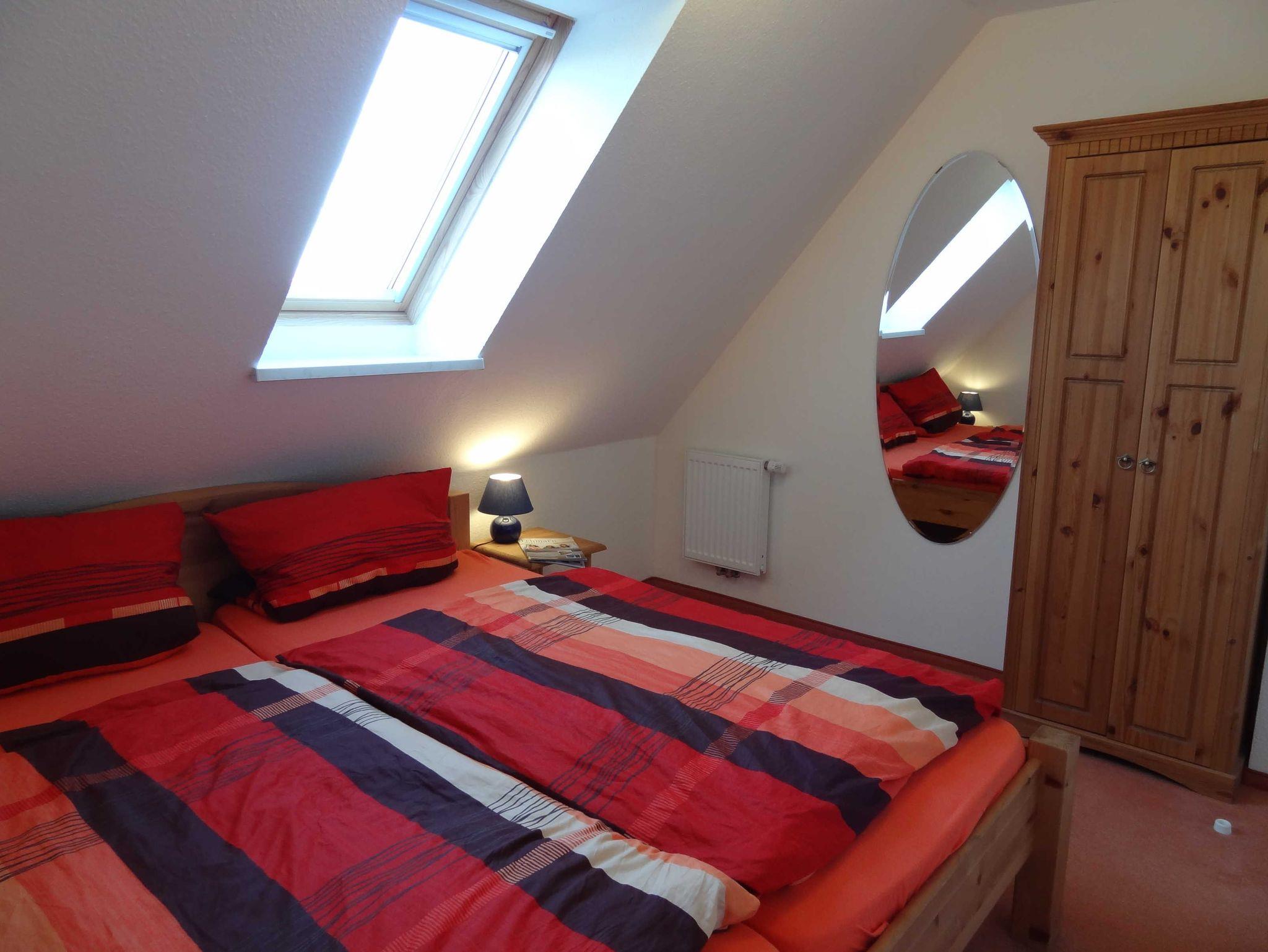 Die Ferienwohnung im Obergeschoss ist mit ca. 45 qm für bis zu 3 Personen ausgelegt und verfügt über einen Wohnraum mit Küchenzeile incl. Spülmaschine, ein Bad mit Dusche und zwei Schlafzimmer. Der große Balkon ist zum Westen ausgerichtet. Sie können von mittags bis abends die Sonne genießen. Weitere Ausstattungsmerkmale: Sat-TV, Telefon kostenlos ( deutsches Festnetz außer Sondernummern ), PC-Anschluss DSL kostenlos, PKW-Stellplatz, Fahrradstellplatz, Waschmaschinennutzung.