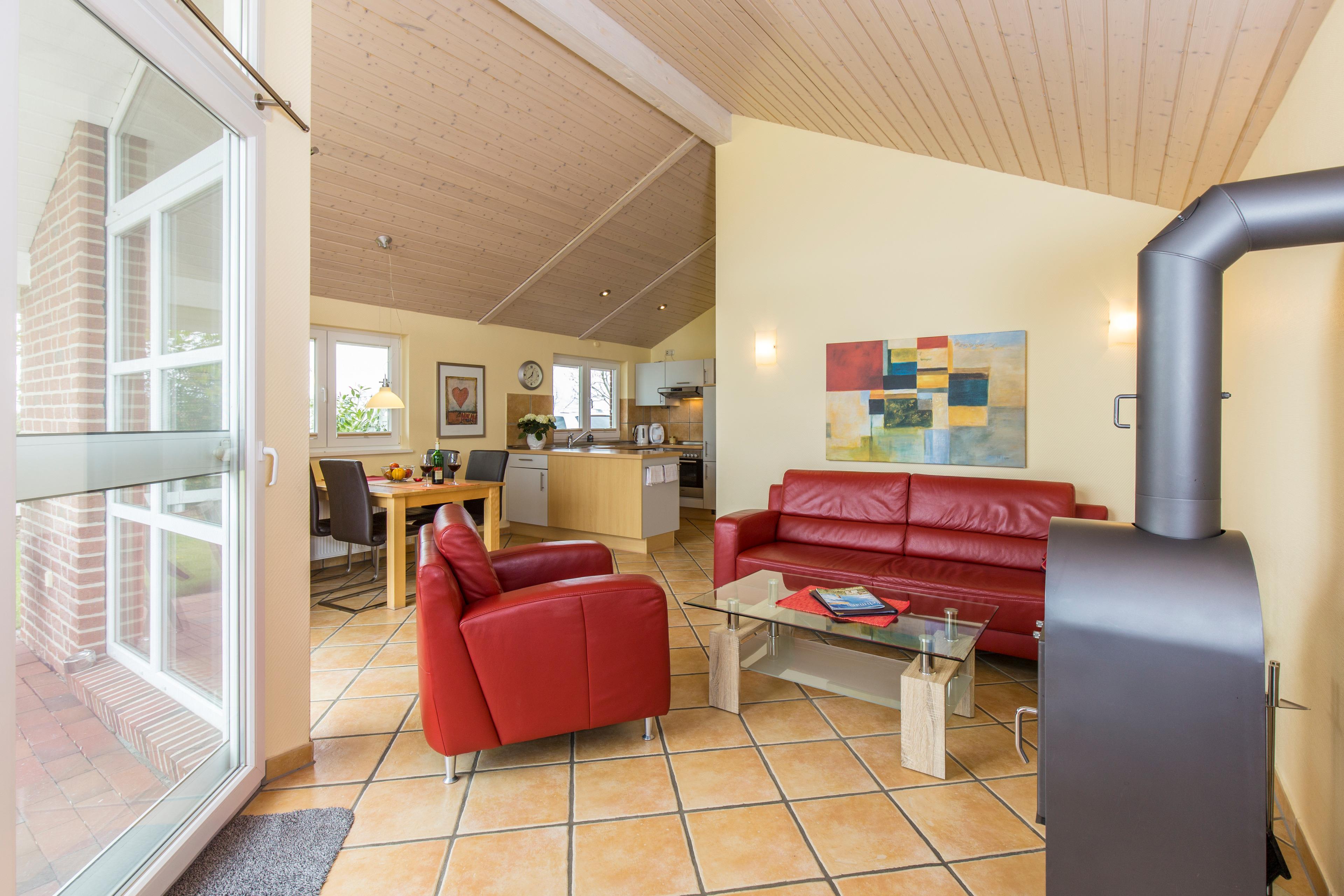 Auf der überdachten Terrasse genießen Sie windgeschützt die gesunde Ostseeluft. Das Rauschen der Ostsee, die nur 600 Meter entfernt liegt, ist Balsam für die Seele. Ein Kamin oder der kuschelige Alkoven versprechen Entspannung pur nach langen Strandspaziergängen oder Ausflügen. Unsere Ferienhäuser im Apfelgarten. Das Zuhause für Ihren Urlaub auf Fehmarn.