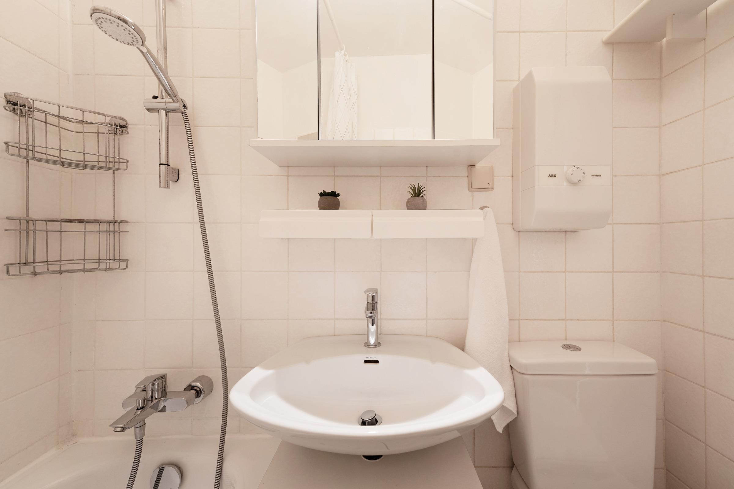 Der helle Wohnbereich empfängt Sie mit einer gemütlichen Sofalandschaft, einem modernen Flachbild-TV mit DVD-Player und einem Radio – perfekt für entspannte Abende. Der wunderbare Blick auf den Hafen sorgt für Urlaubsfeeling pur. Die offene Küche ist gut ausgestattet mit Kühlschrank, 2-Platten-Kochfeld, Mikrowelle, Wasserkocher, Toaster sowie einer French Press Kaffeemaschine. Eine Tassimo Espressomaschine rundet das Angebot ab. Hier können Sie Ihre Lieblingsgerichte zubereiten und am Esstisch genießen. Das Schlafzimmer ist mit zwei komfortablen Einzelbetten eingerichtet und sorgt für erholsame Nächte. Das Badezimmer verfügt über eine Badewanne mit Duschfunktion, WC und Haartrockner – ideal, um sich nach einem Strandtag frisch zu machen.